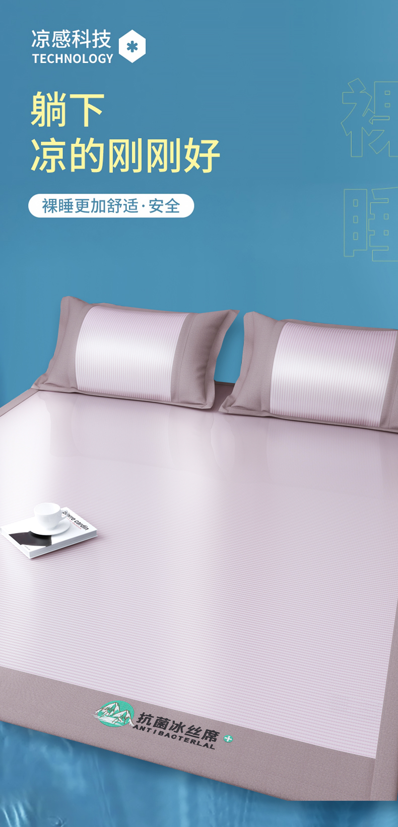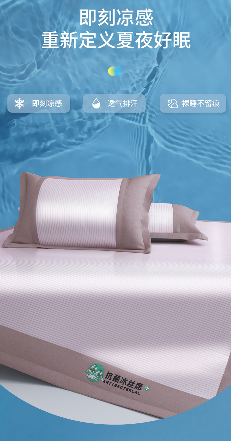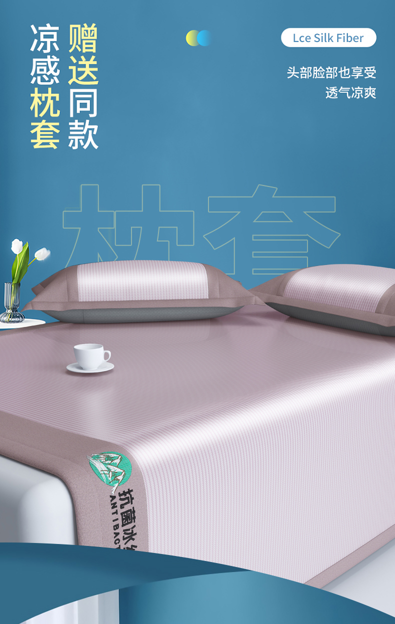 商品名称:yyds 2024新款高端冰丝凉席三件套床笠款软藤席冰丝席空调软席子 床席绑定款雪山-粉