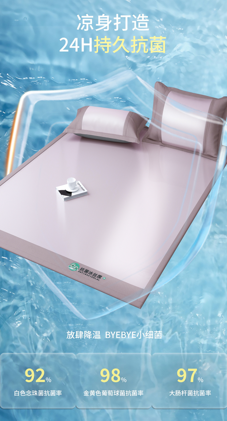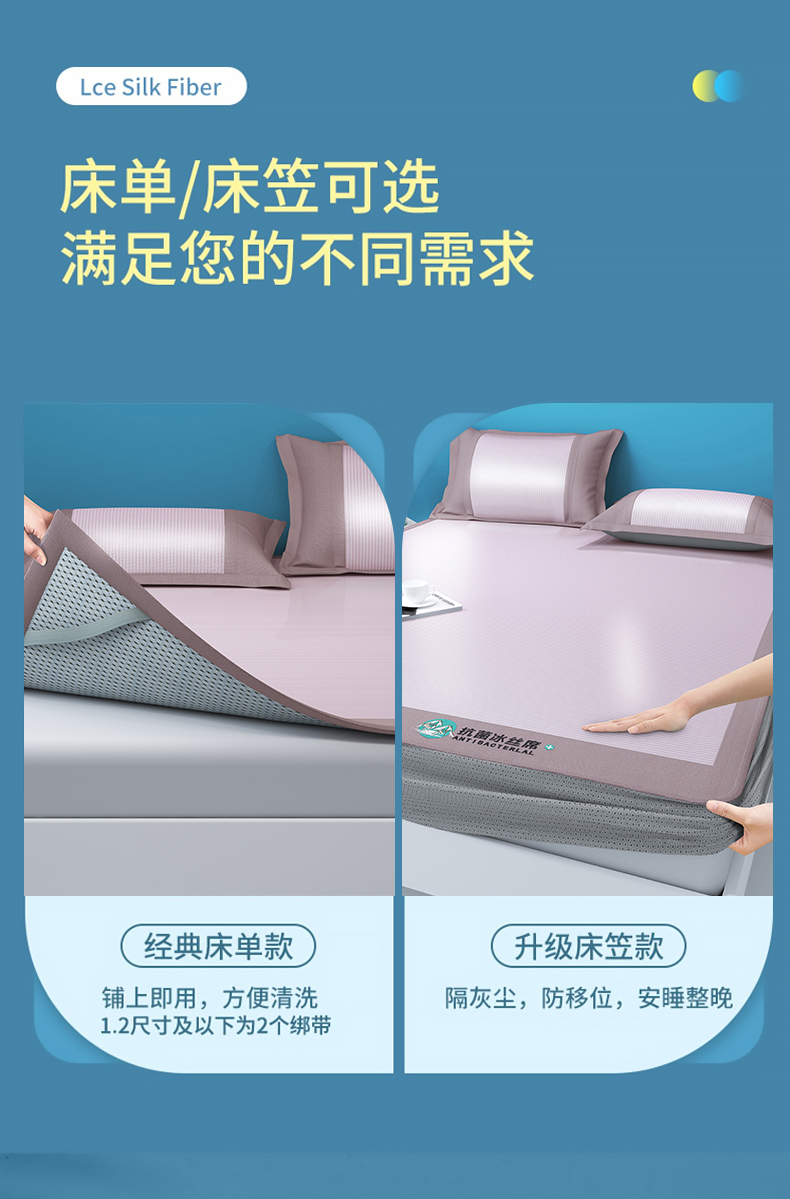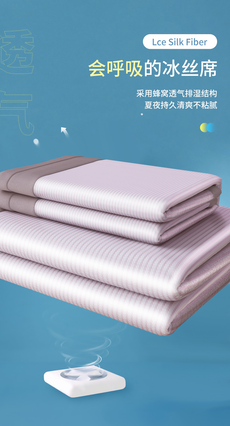 商品名称:yyds 2024新款高端冰丝凉席三件套床笠款软藤席冰丝席空调软席子 床席绑定款雪山-粉