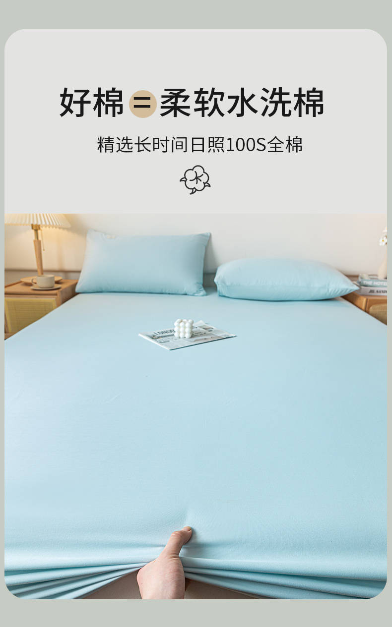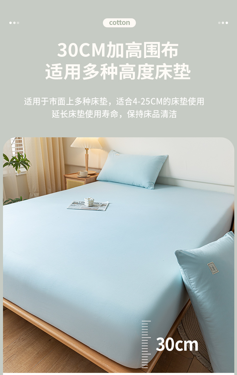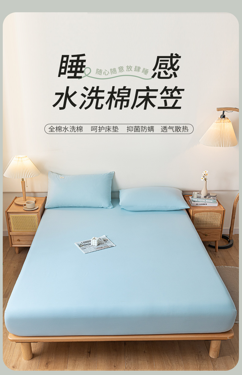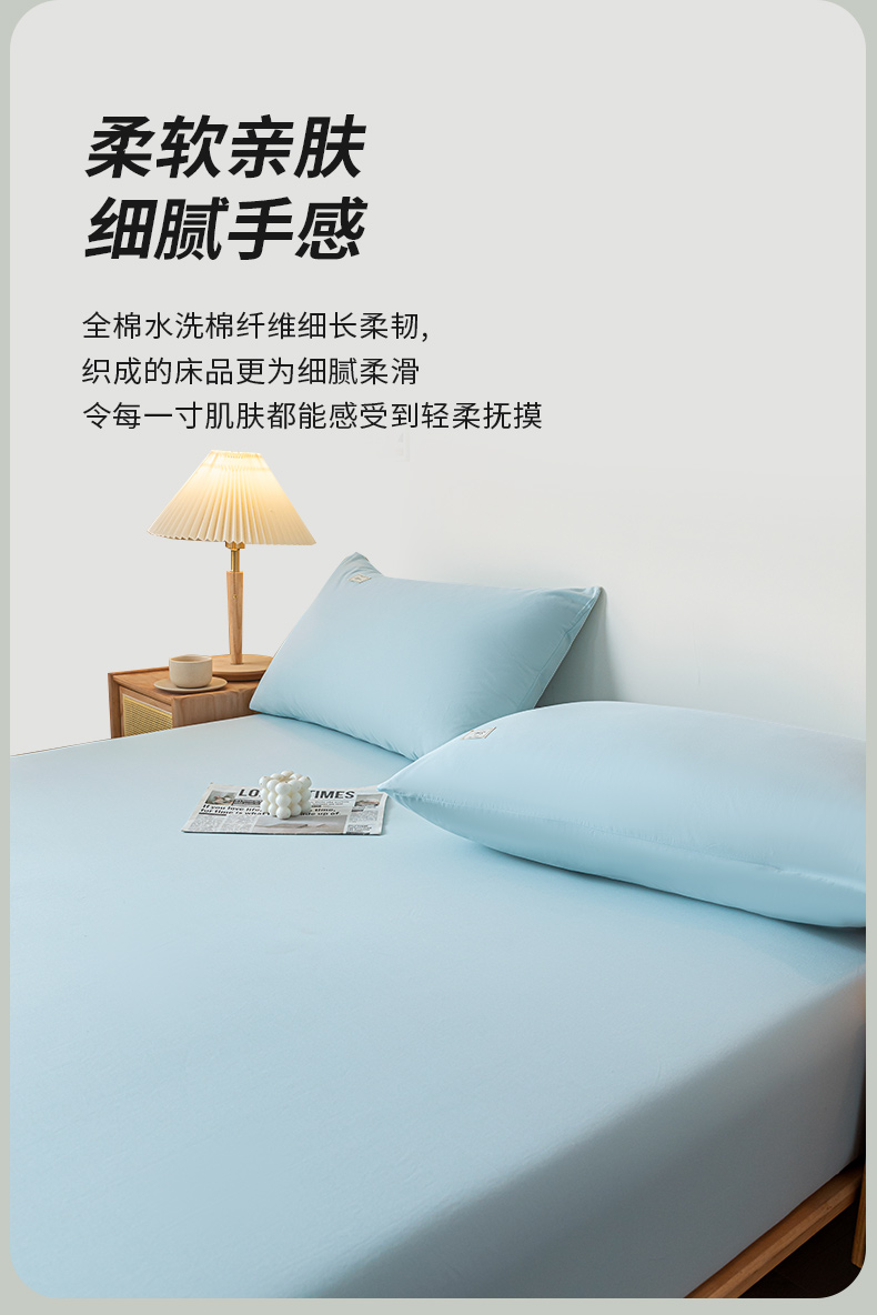 商品名称:ab家纺 2024新款A类40支水洗全棉床笠三件套 天空蓝