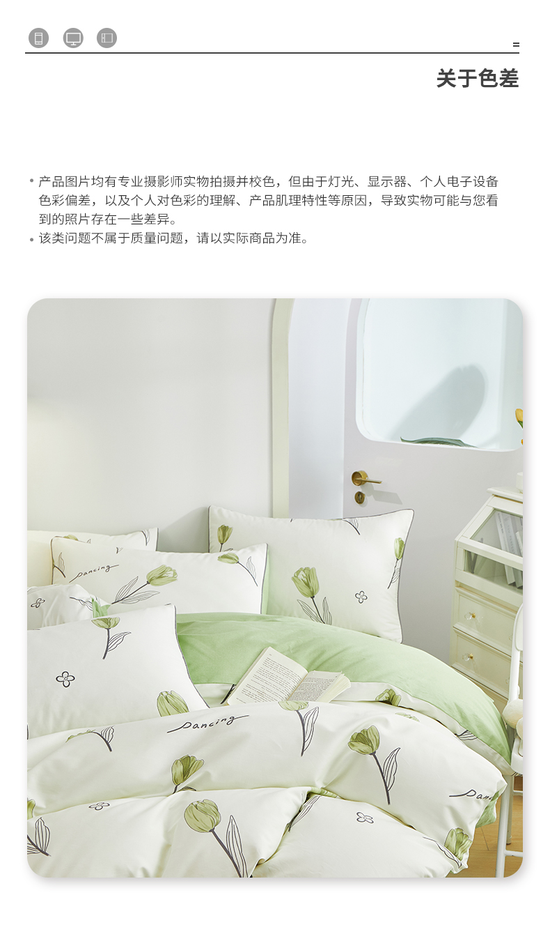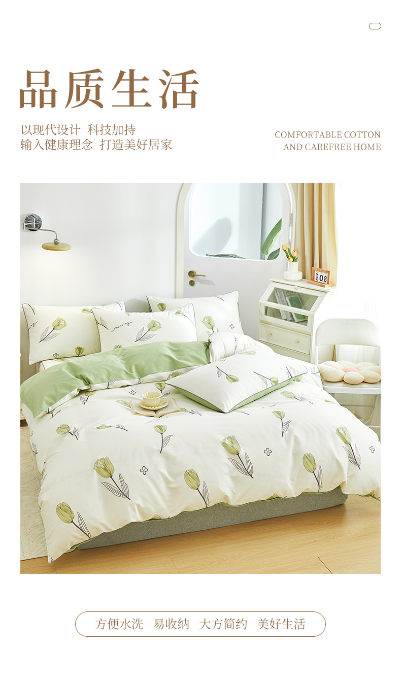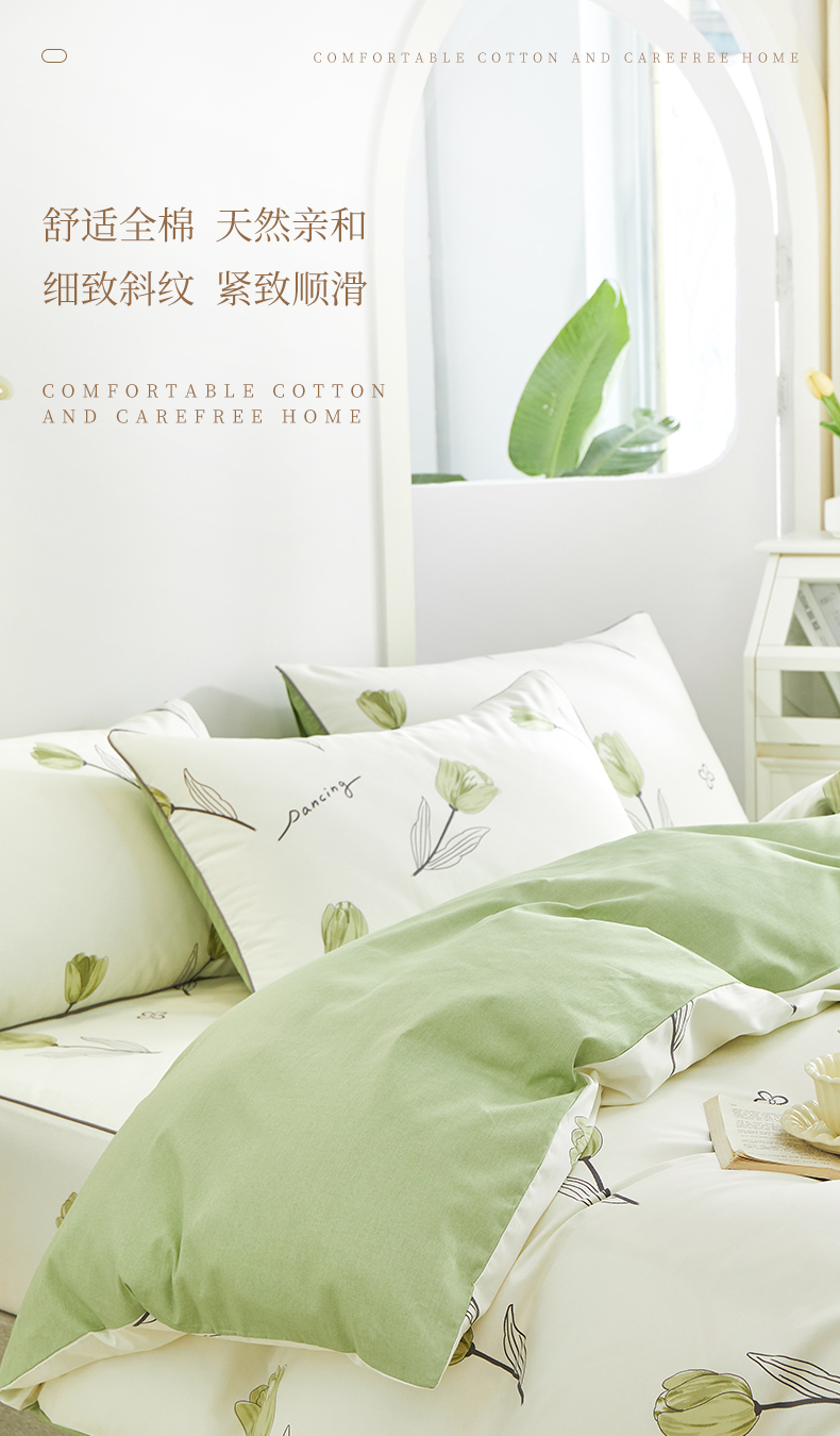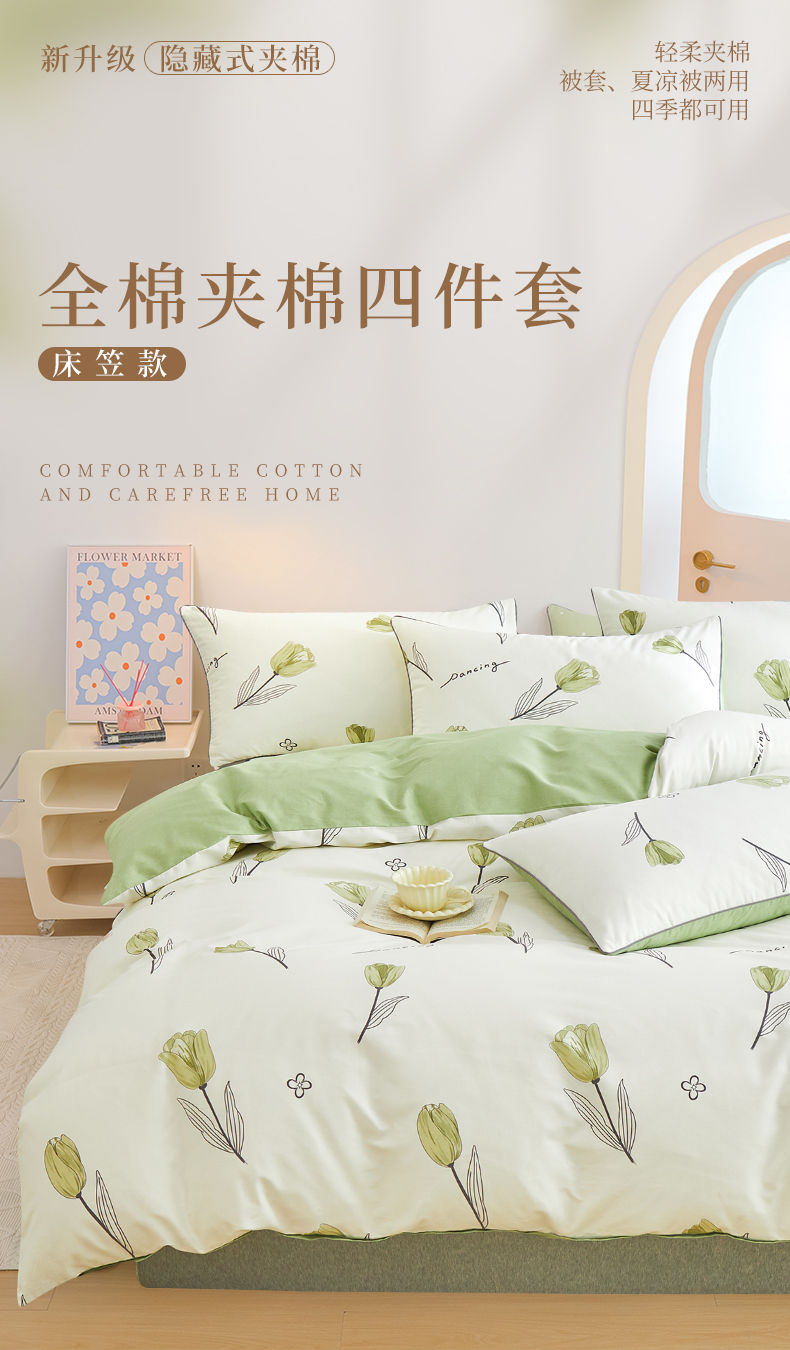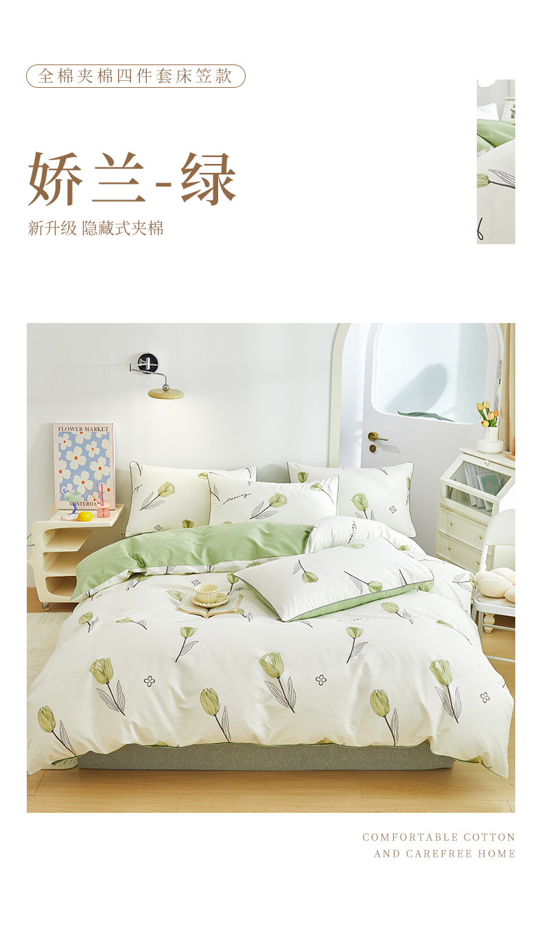 当前位置: 91家纺网 > 商品网购 > 床品套件 > 四件套 > 全棉普通四件套 > 元元被业 2024新款小清新隐藏式全棉夹棉四件套床笠款 娇兰-绿