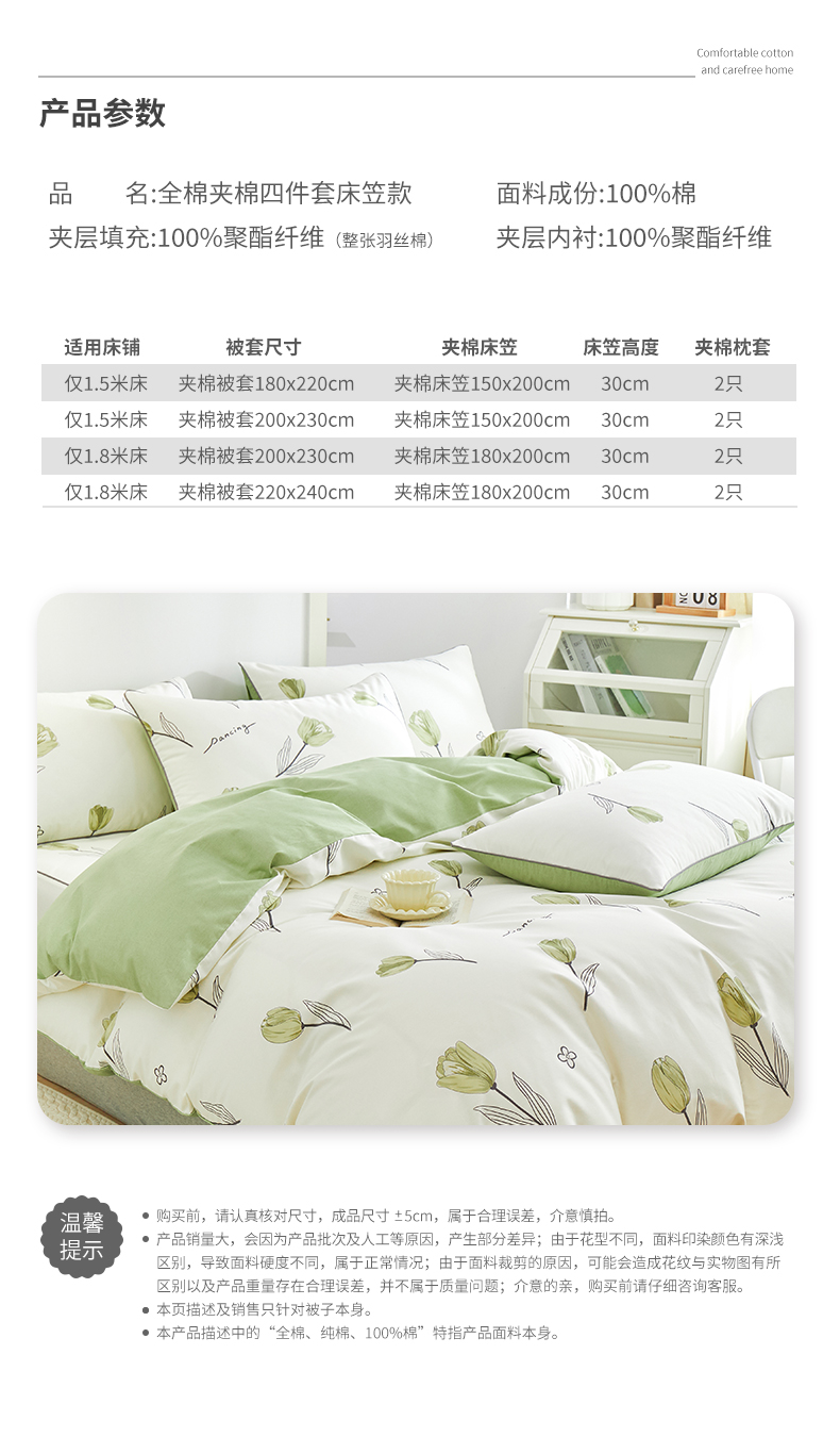 夹棉被套2.0夹棉床笠1.5枕套四件 | ¥195.00 |