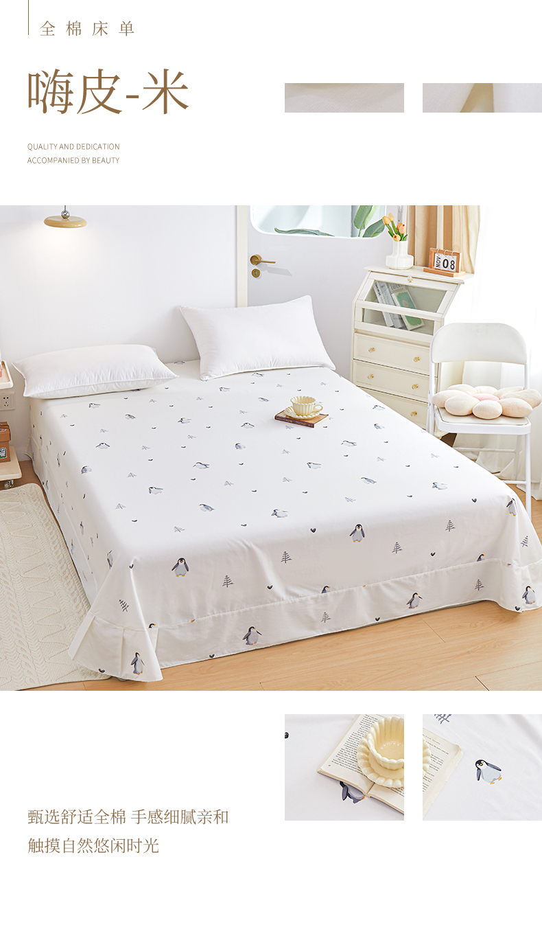 商品名称:元元被芯 2024新款小清新全棉套件单品-单床单 嗨皮-米