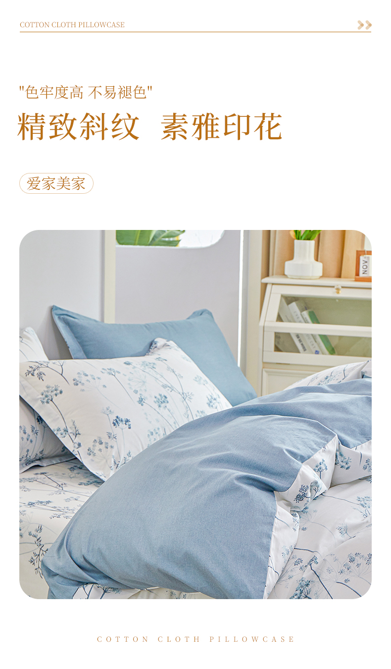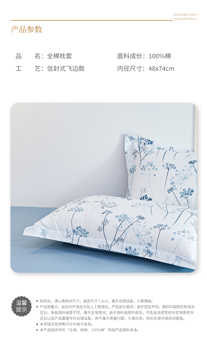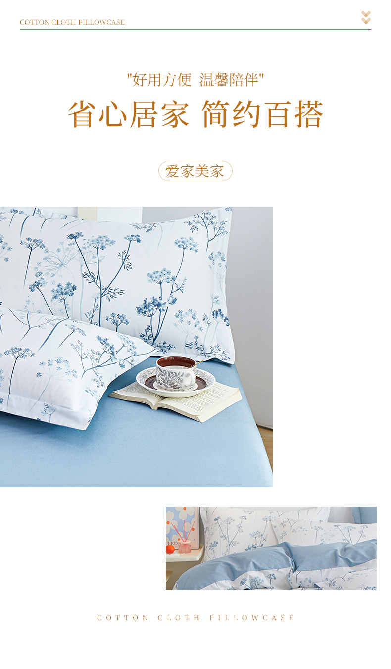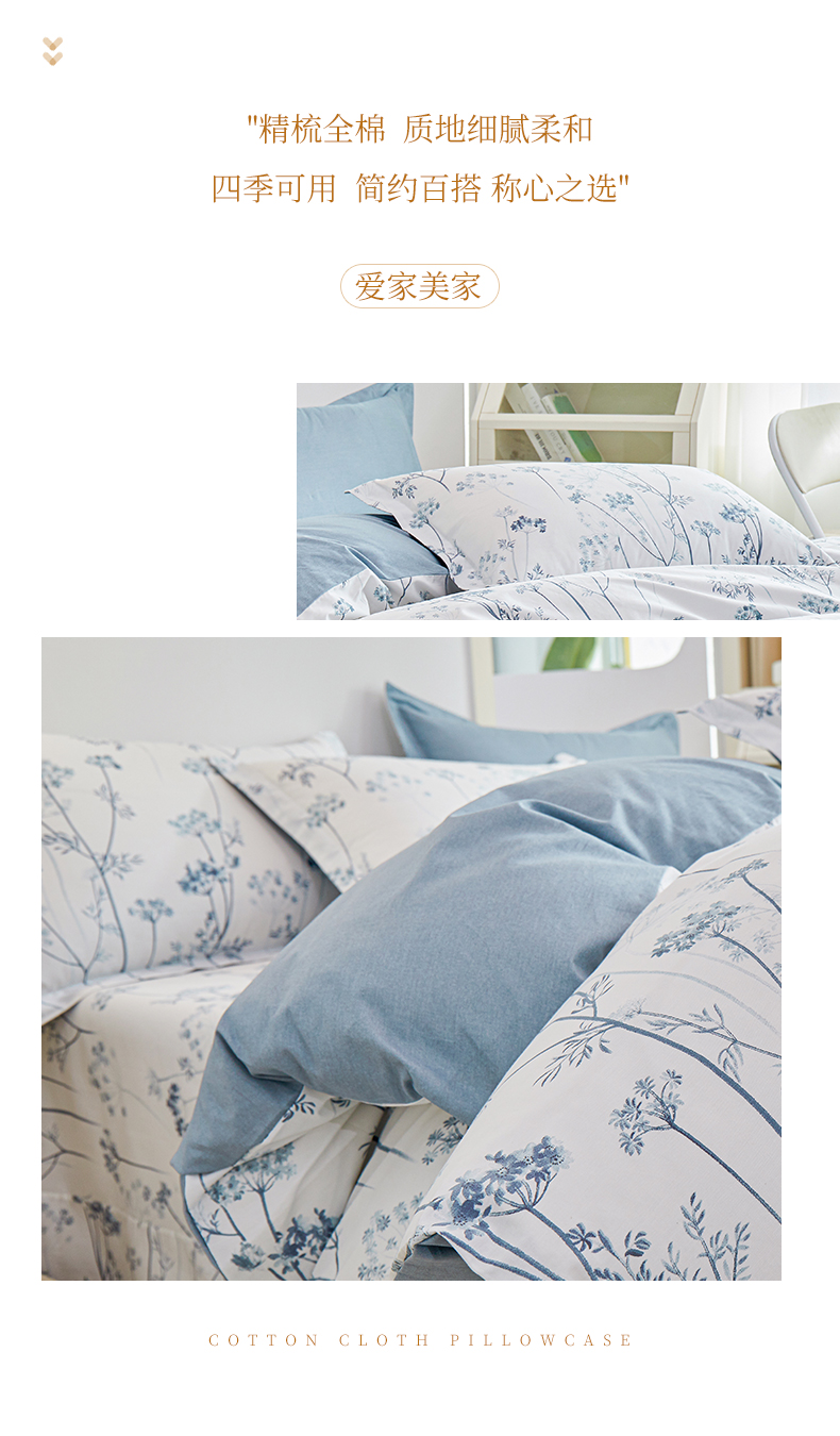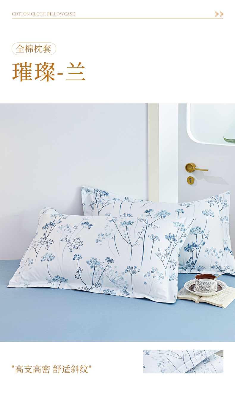 商品名称:元元被芯 2024新款小清新全棉套件单品-单枕套 璀璨-兰