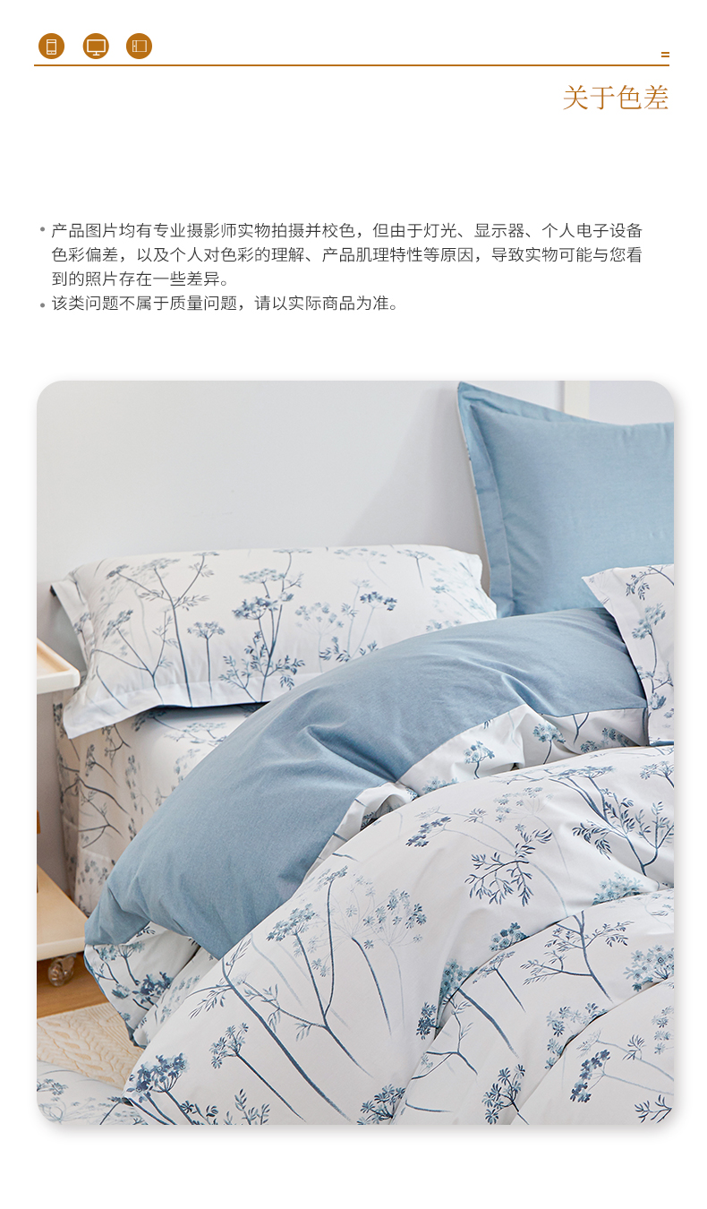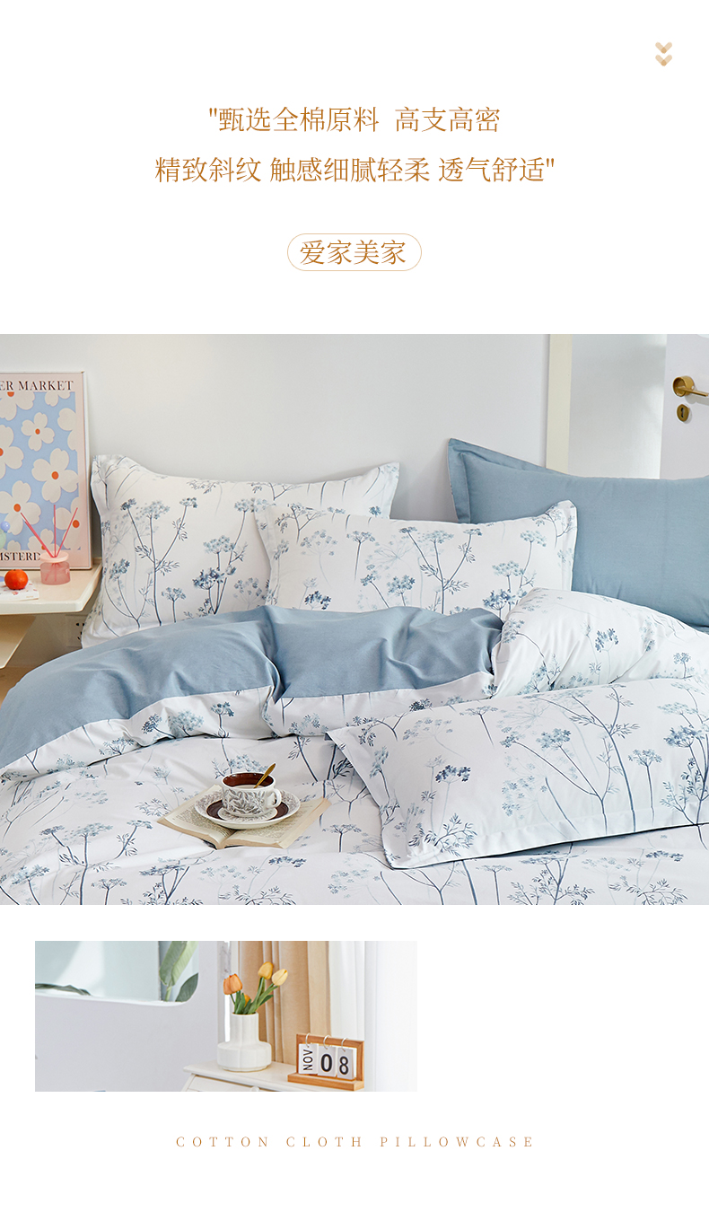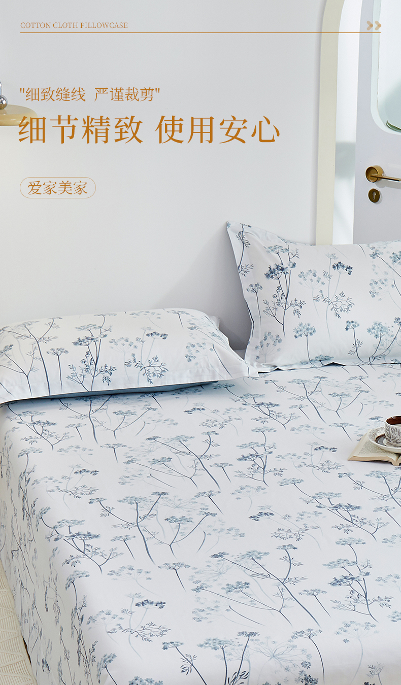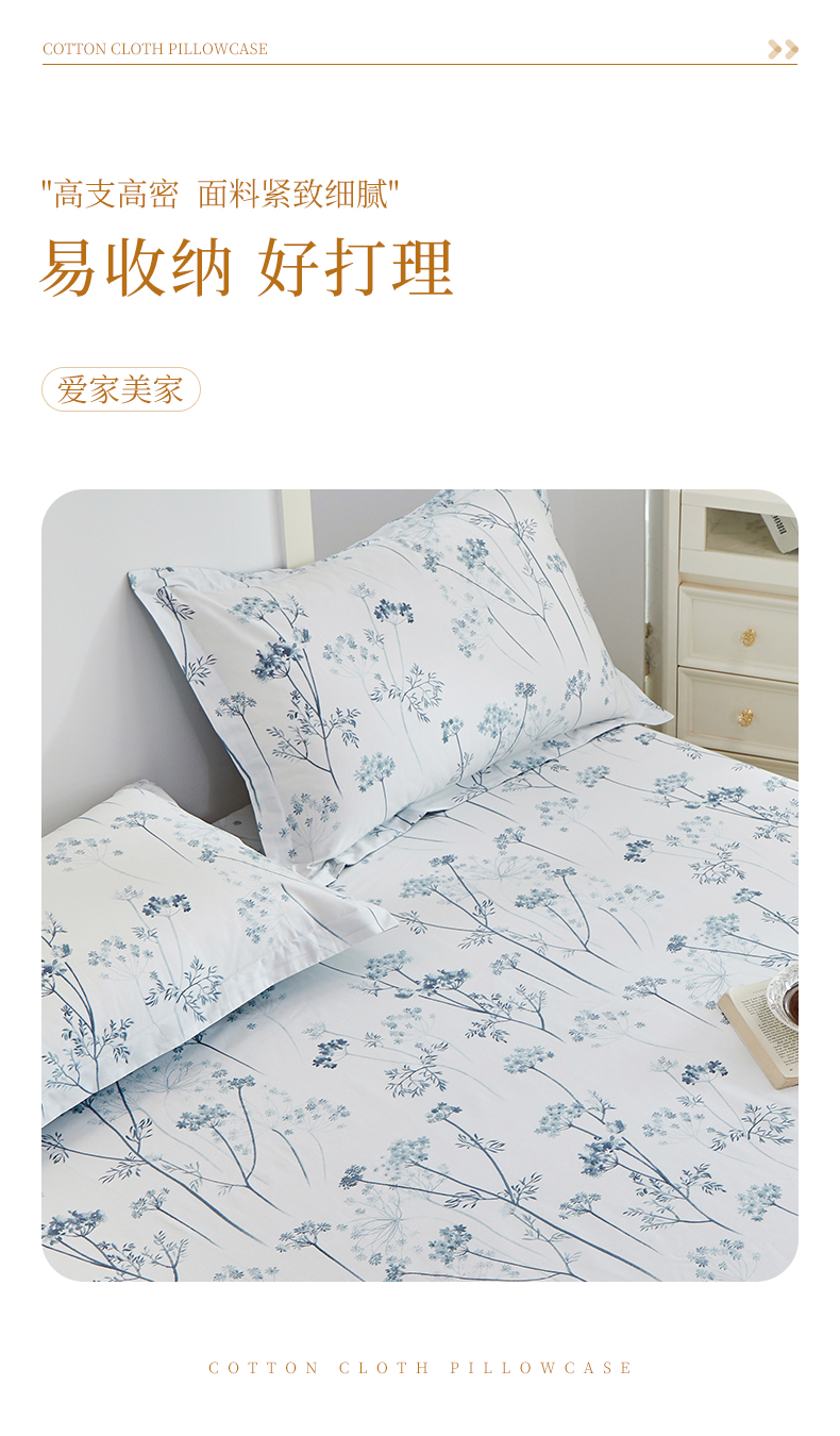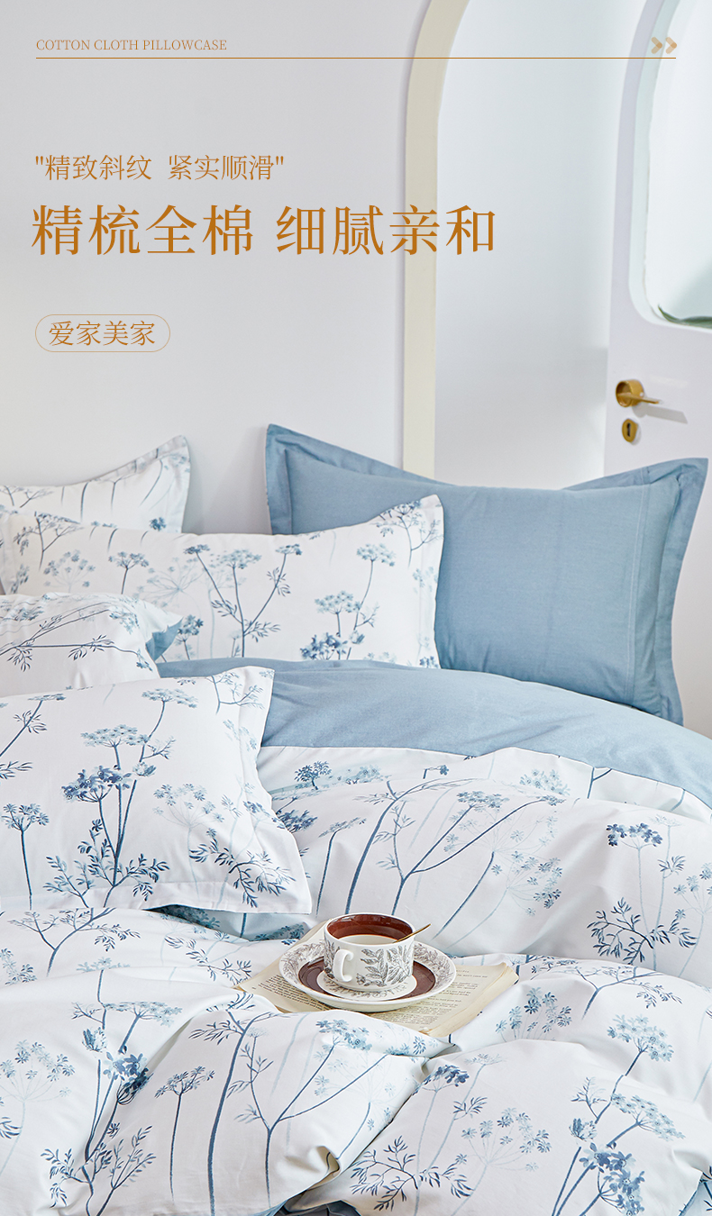 商品名称:元元被芯 2024新款小清新全棉套件单品-单枕套 璀璨-兰