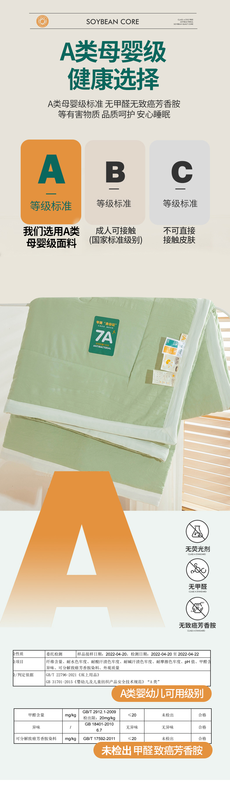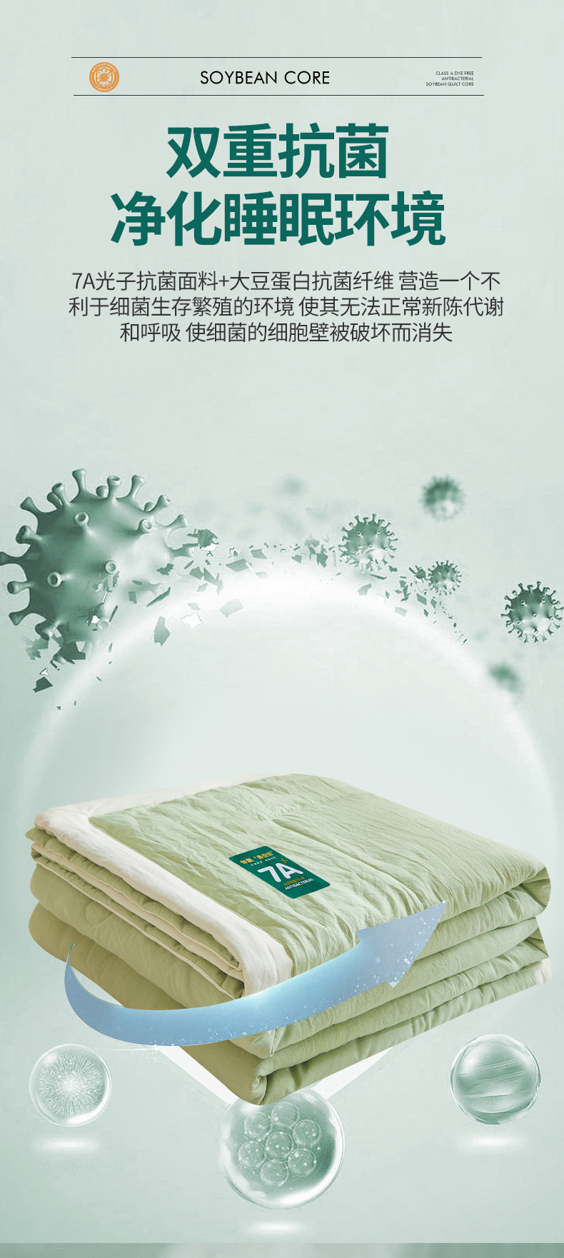 商品名称:欢乐季 2025新款7A抗菌原棉大豆夏被夏凉被 抹茶绿