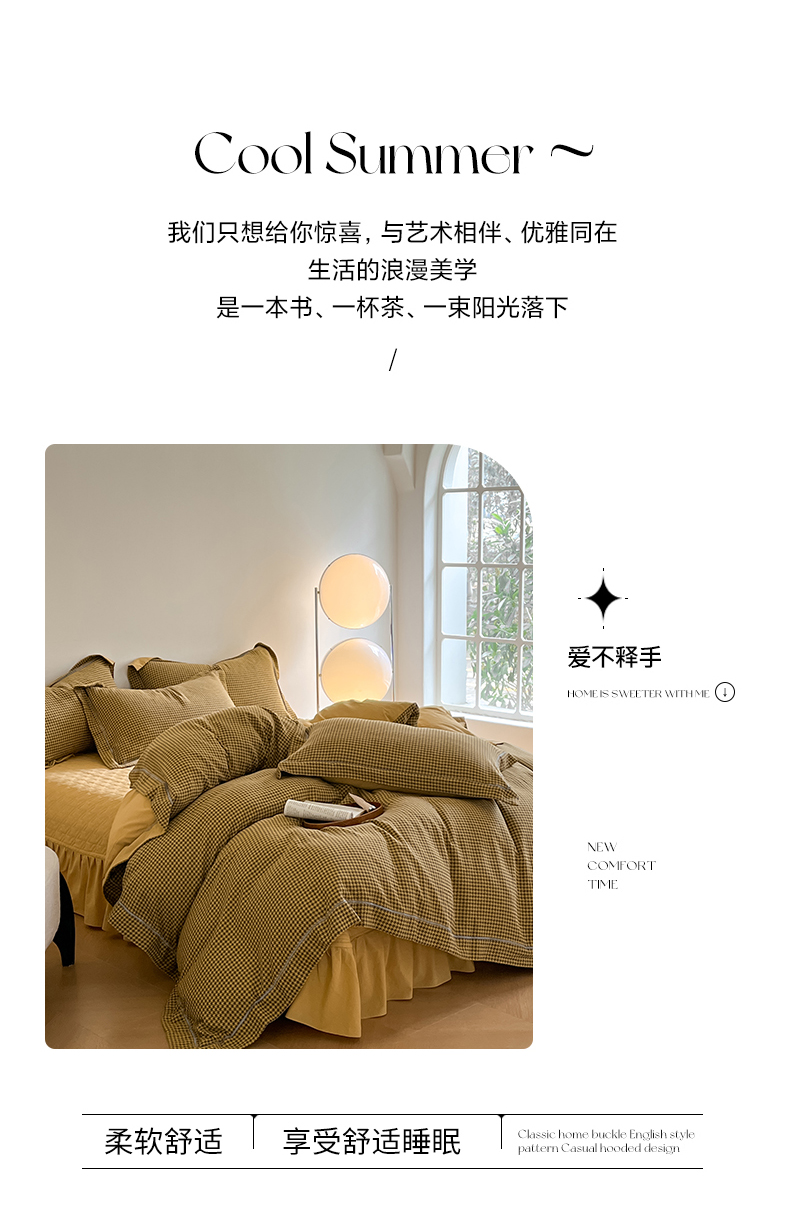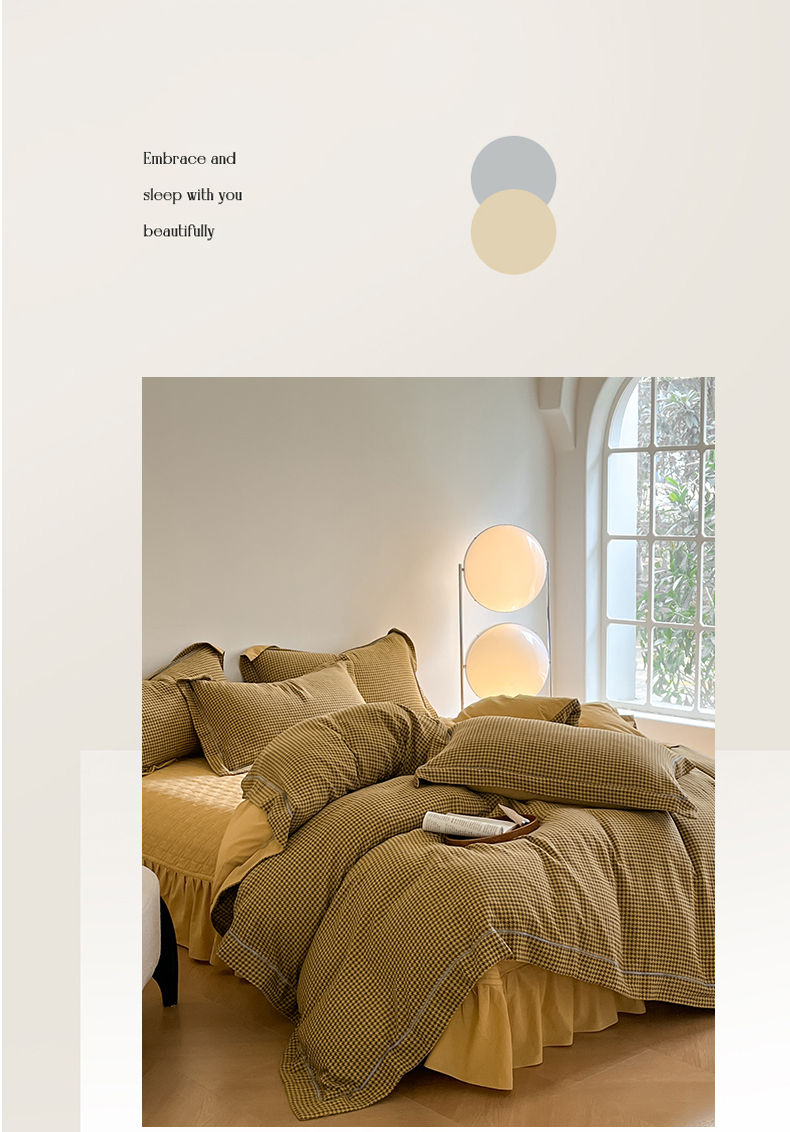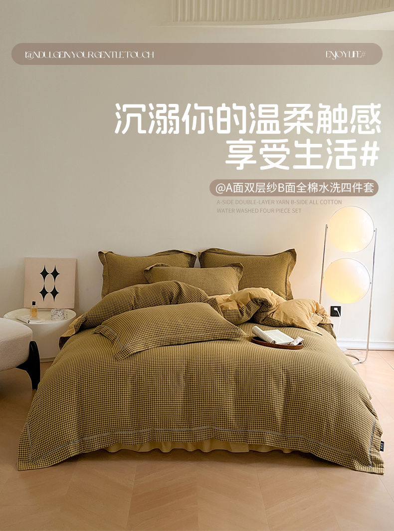 美伦美焕 2024新款双层纱全棉水洗四件套 千鸟格-姜黄