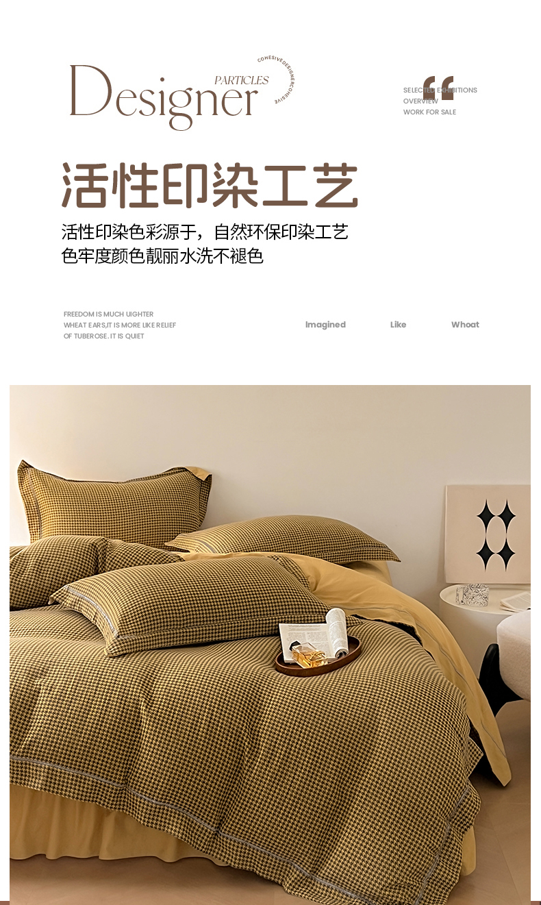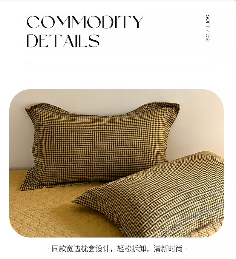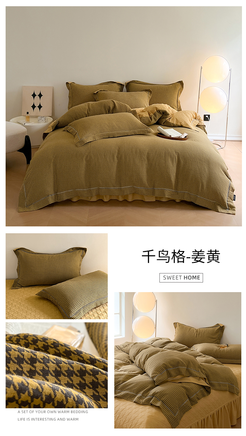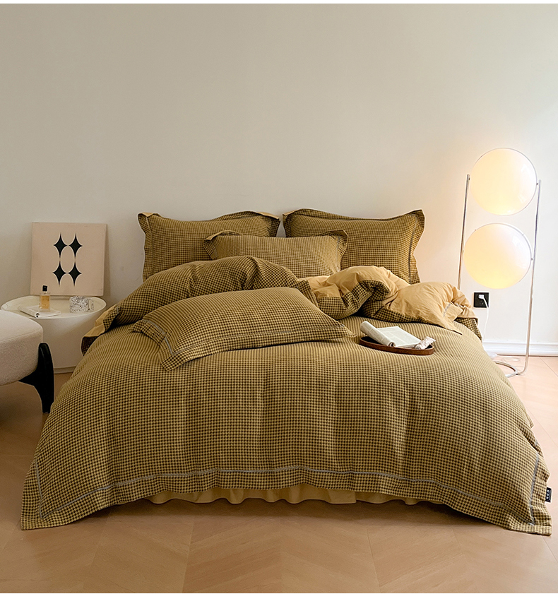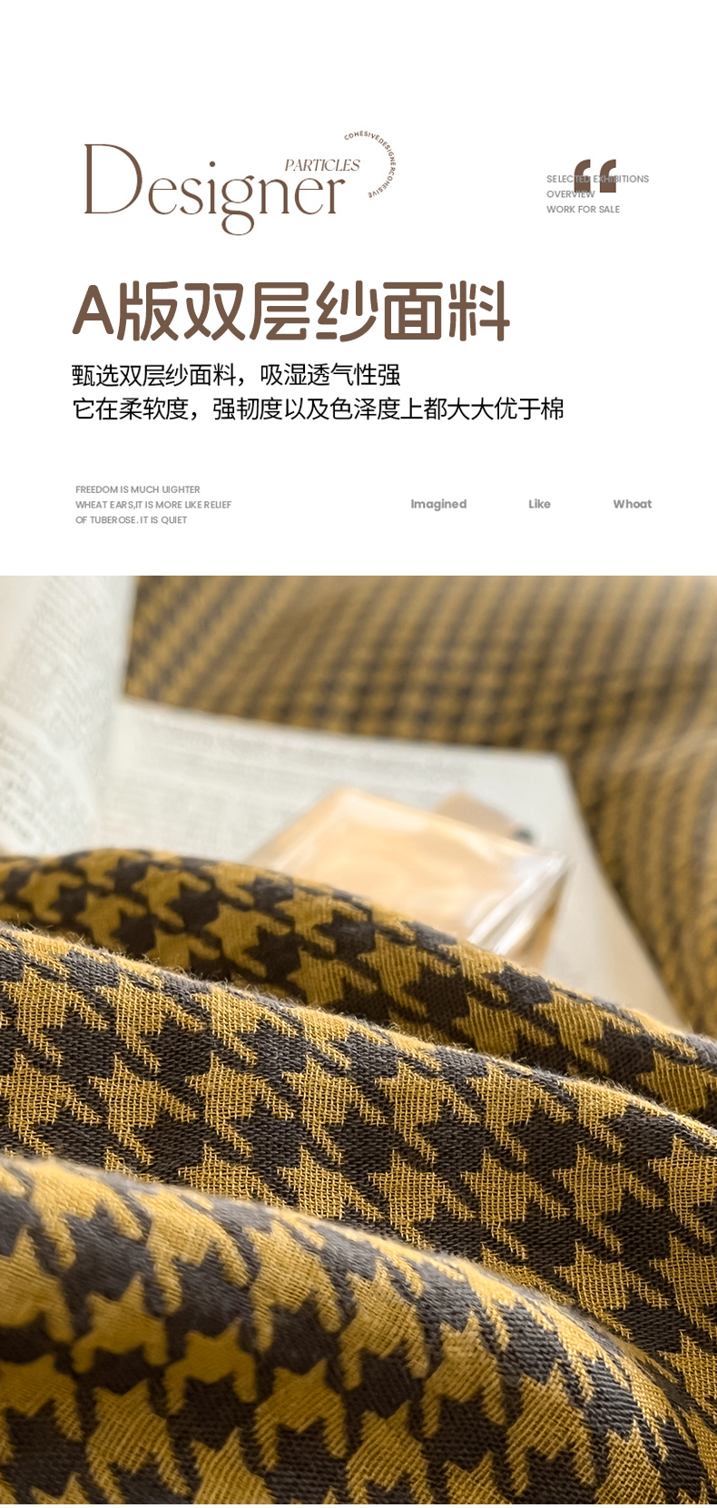 商品名称:美伦美焕 2024新款双层纱全棉水洗四件套 千鸟格-姜黄