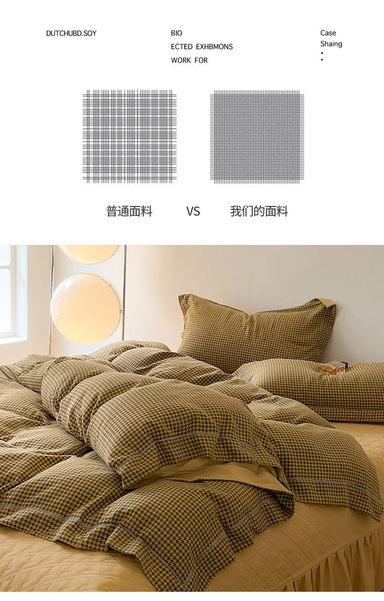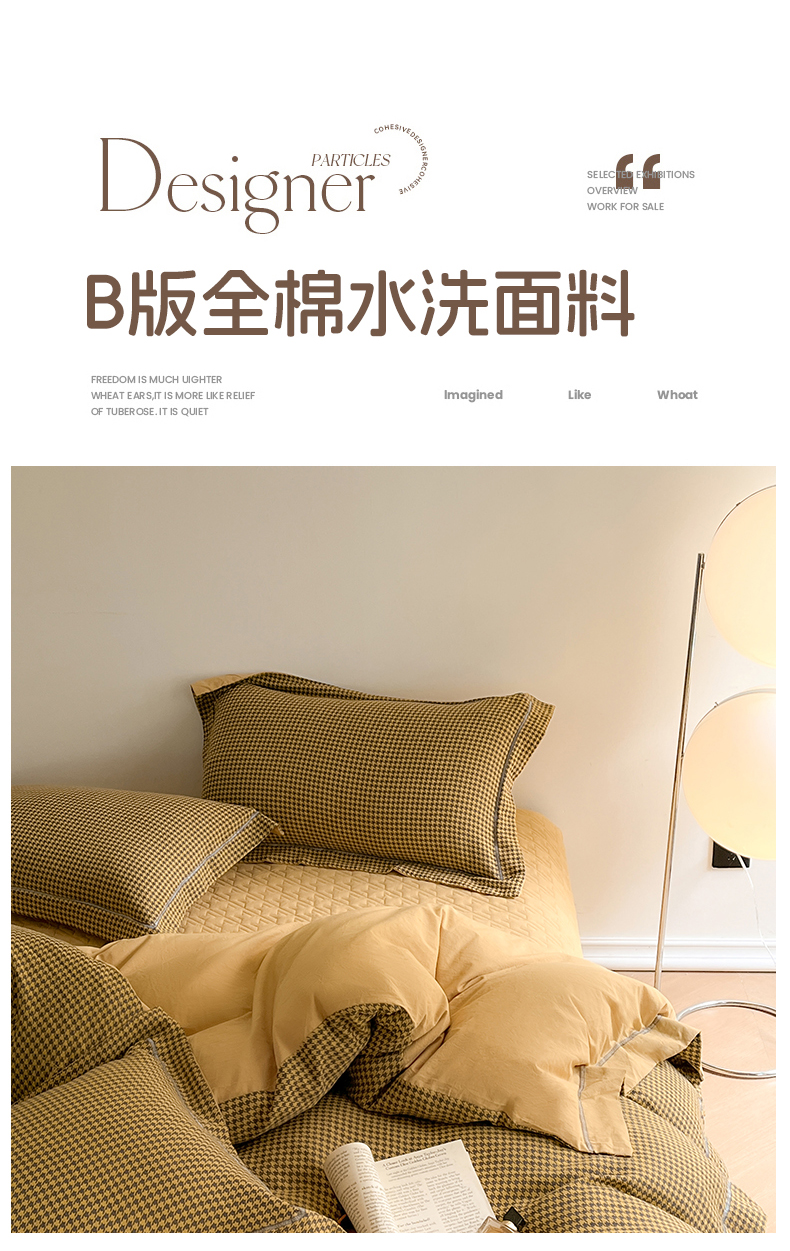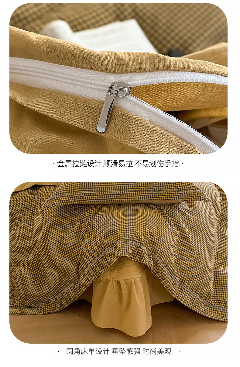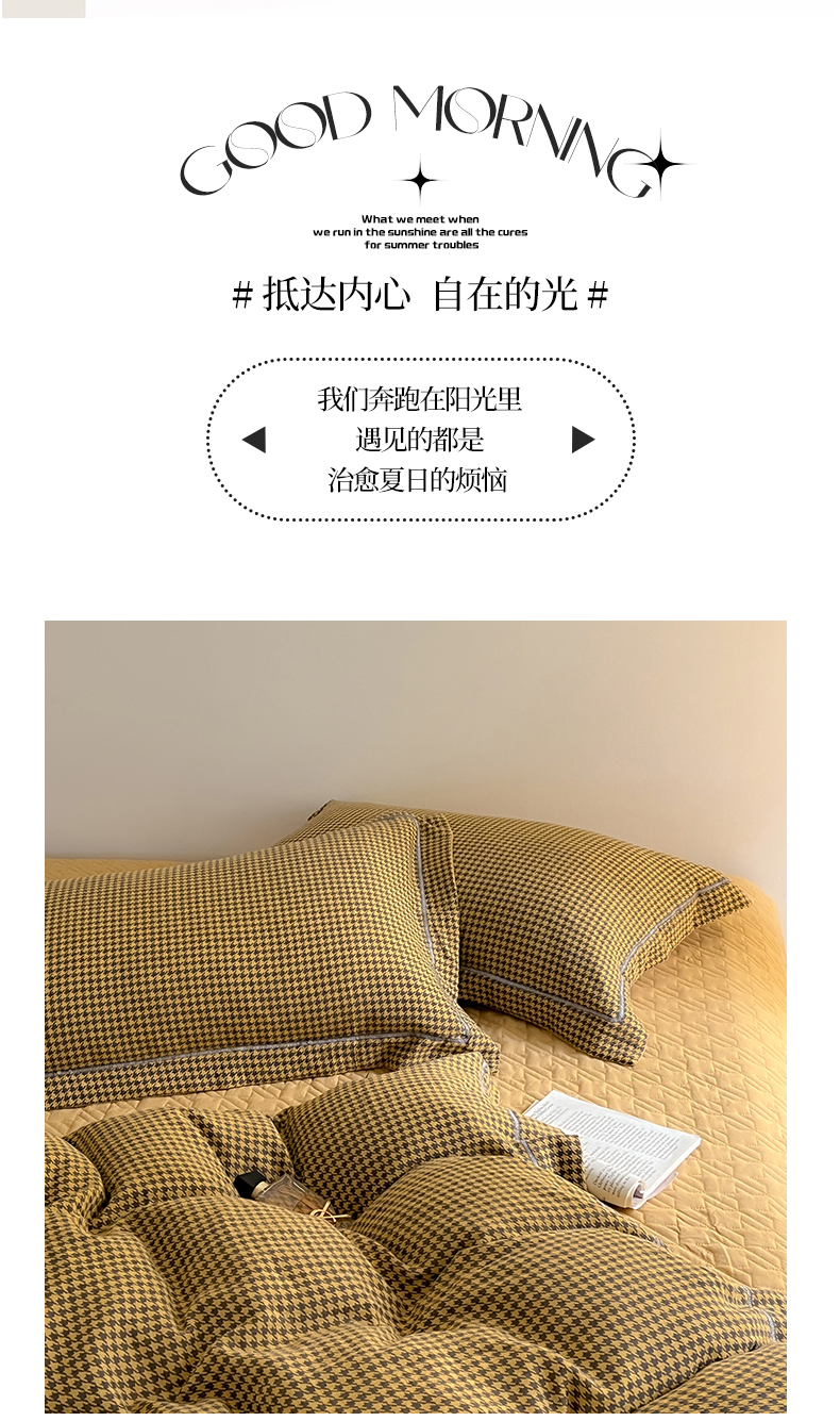 商品名称:美伦美焕 2024新款双层纱全棉水洗四件套 千鸟格-姜黄