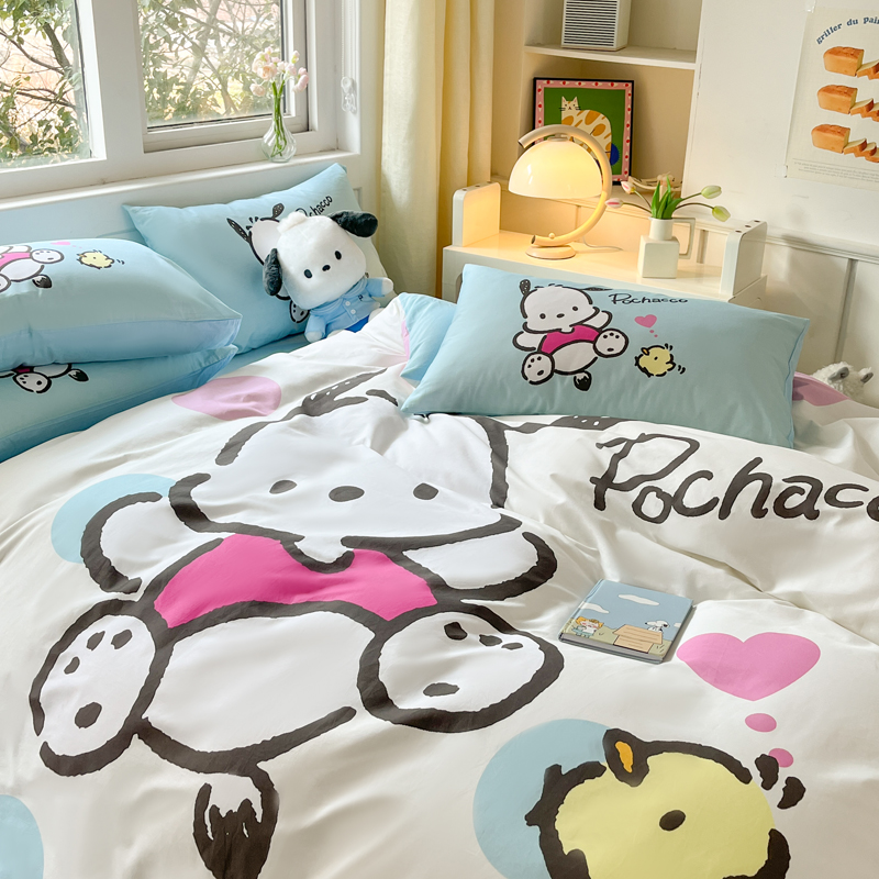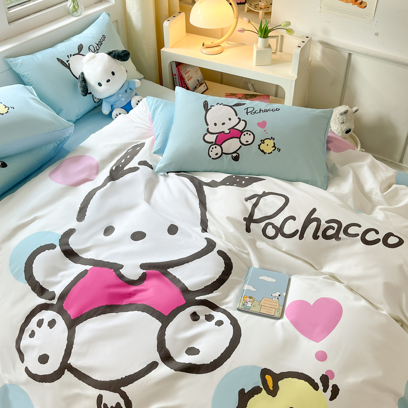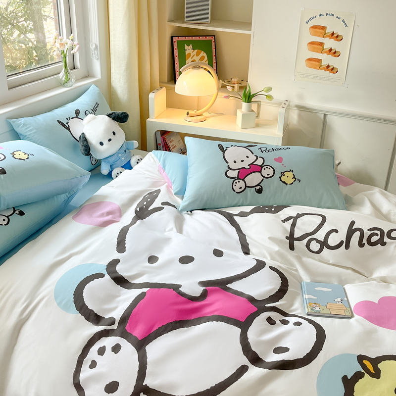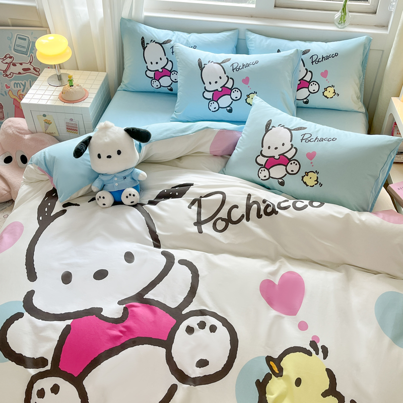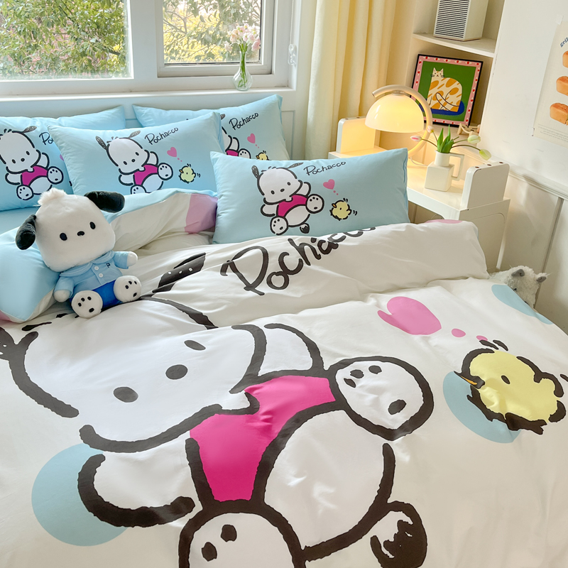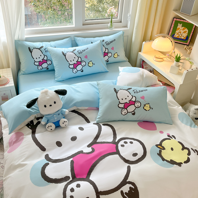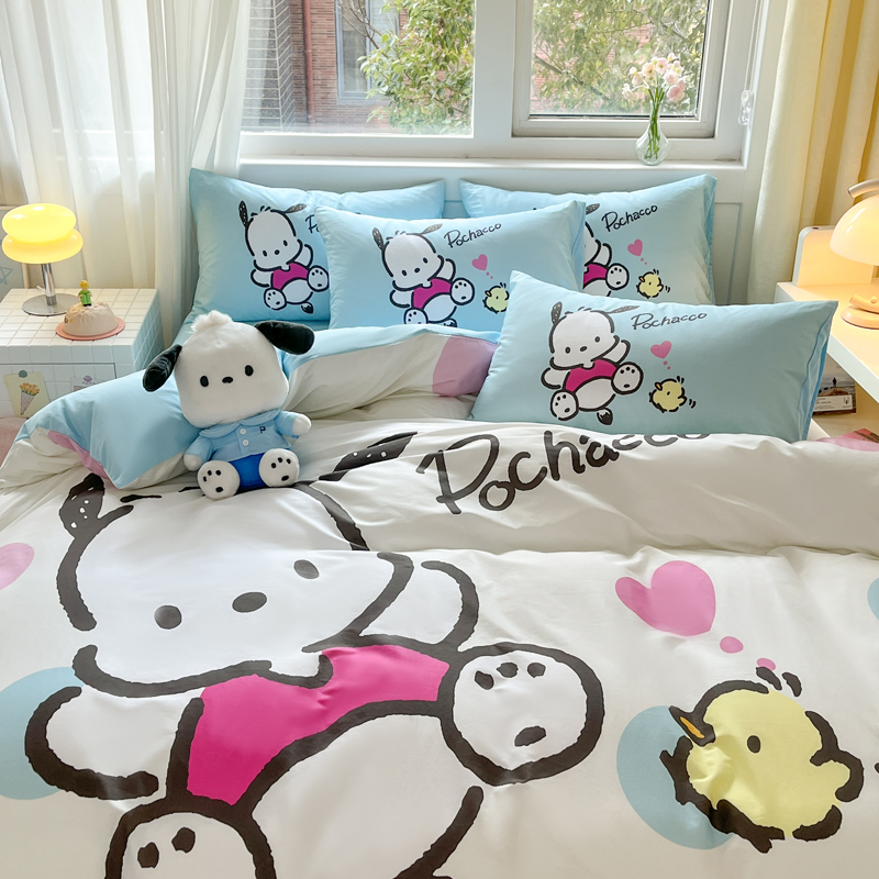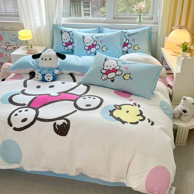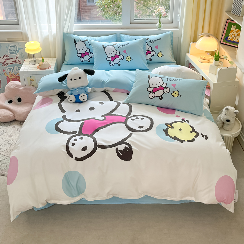 当前位置: 91家纺网 > 商品网购 > 床品套件 > 四件套 > 全棉普通四件套 > 金爱家 2024新款大阪全棉数码印花三丽鸥系列四件套 波点帕哈狗