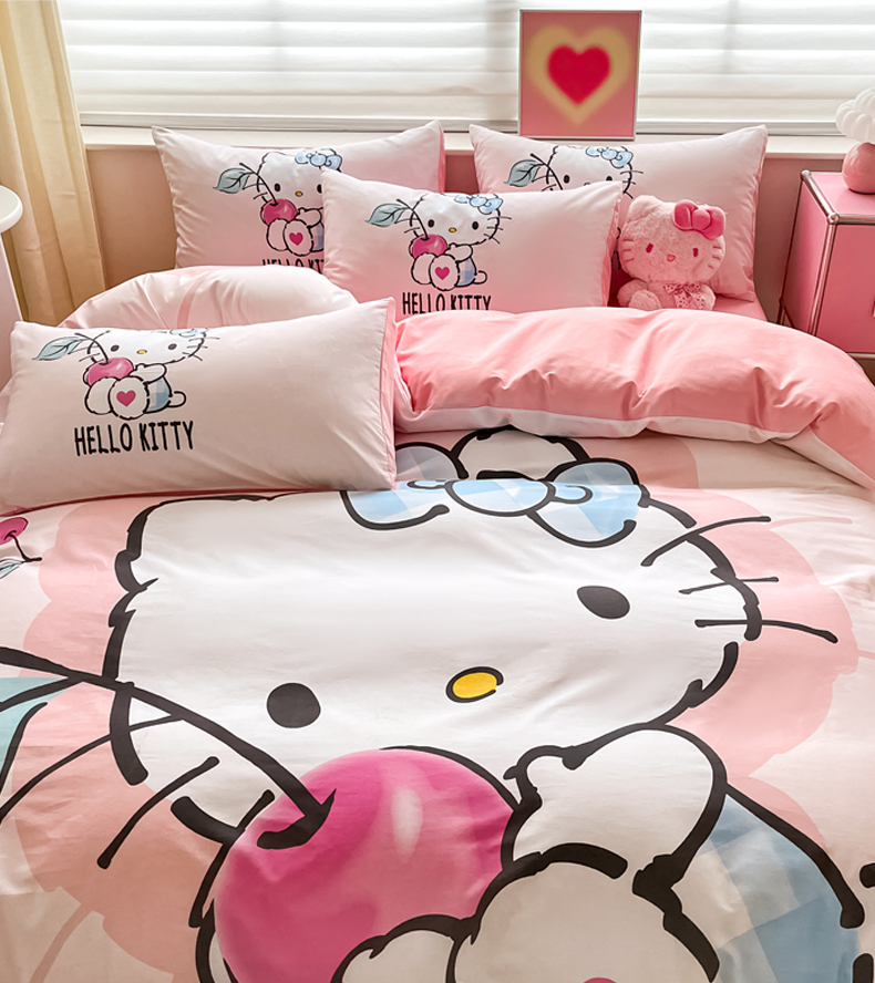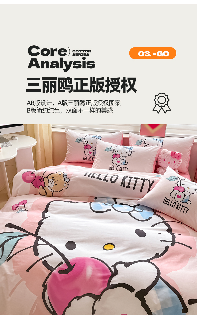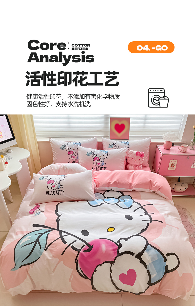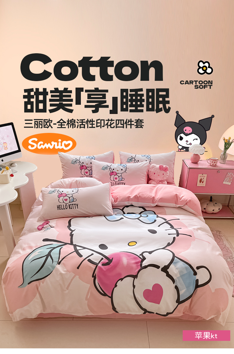 当前位置: 91家纺网 > 商品网购 > 床品套件 > 四件套 > 全棉普通四件套 > 金爱家 2024新款大阪全棉数码印花三丽鸥系列四件套 苹果kt