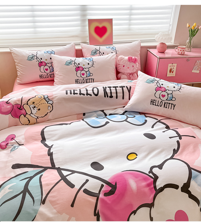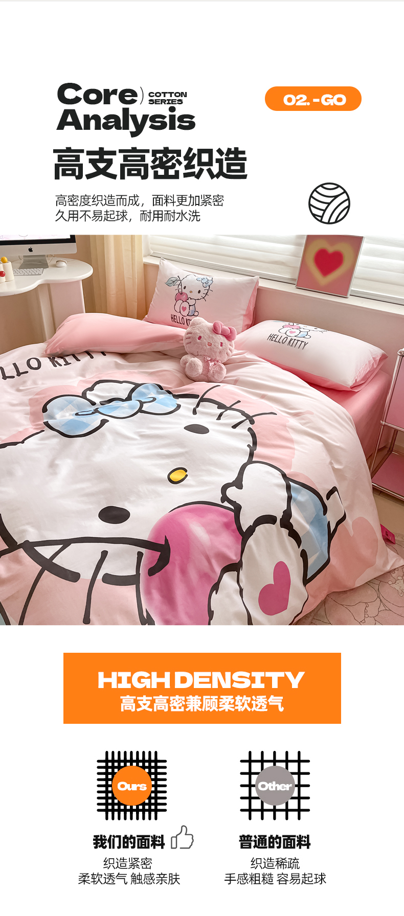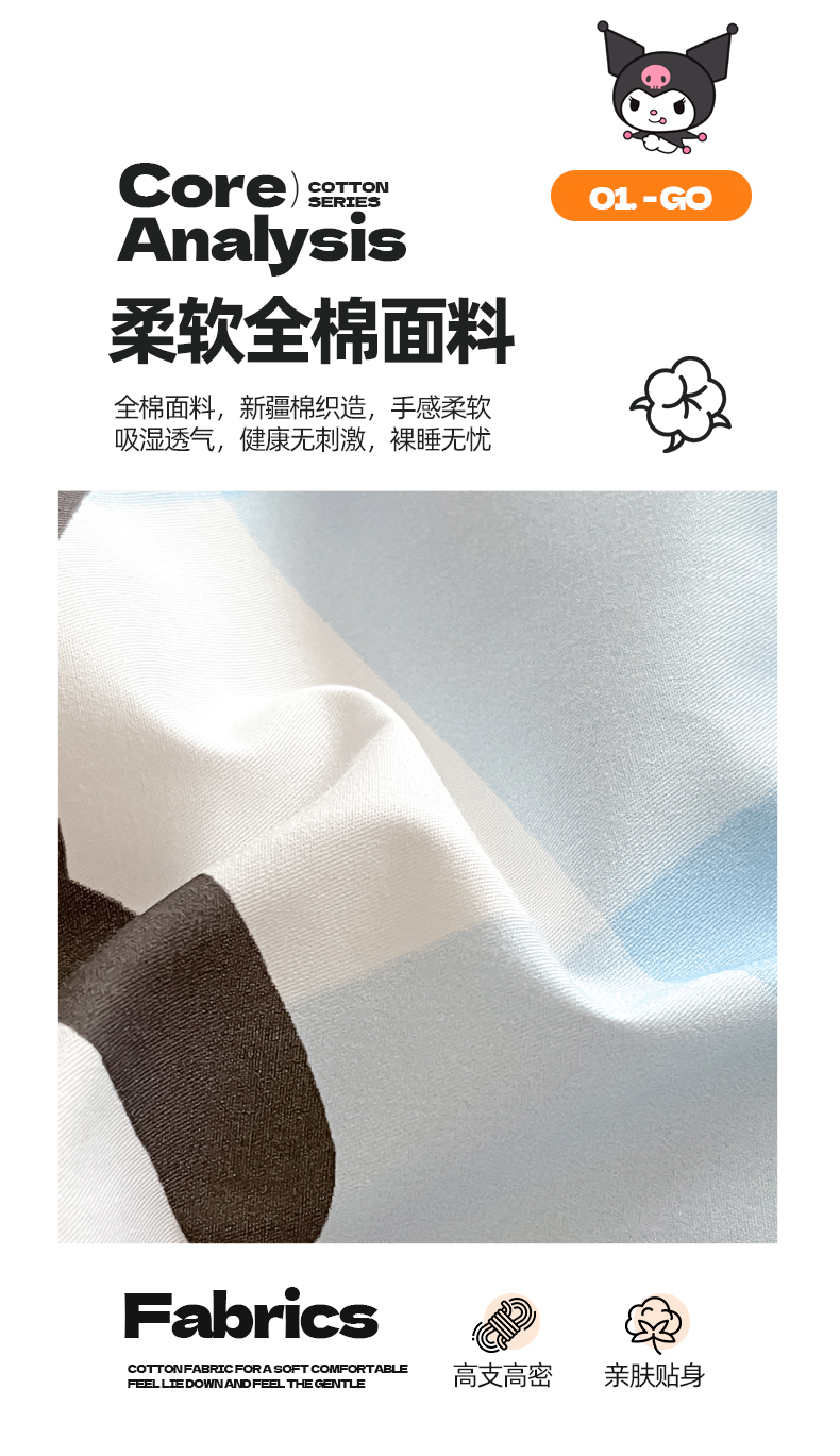 当前位置: 91家纺网 > 商品网购 > 床品套件 > 四件套 > 全棉普通四件套 > 金爱家 2024新款大阪全棉数码印花三丽鸥系列四件套 苹果kt