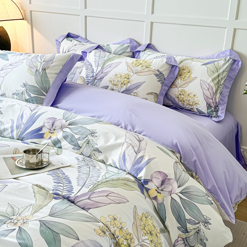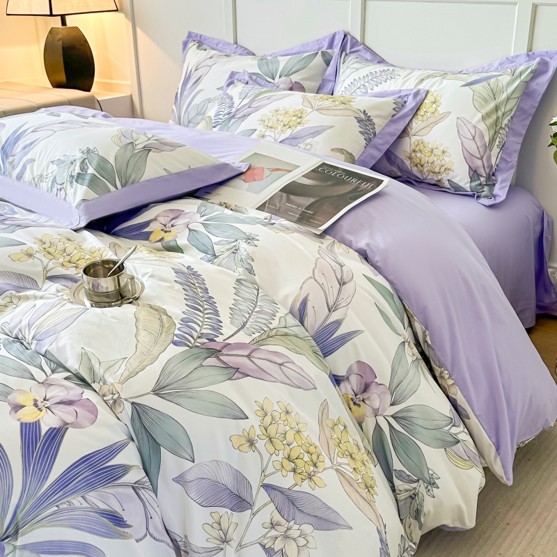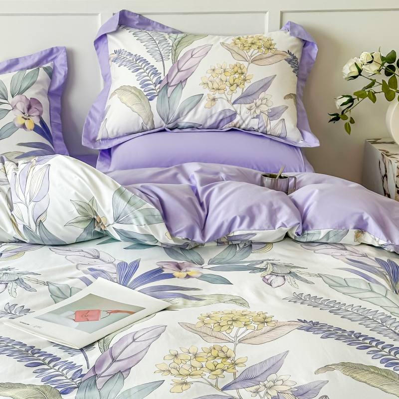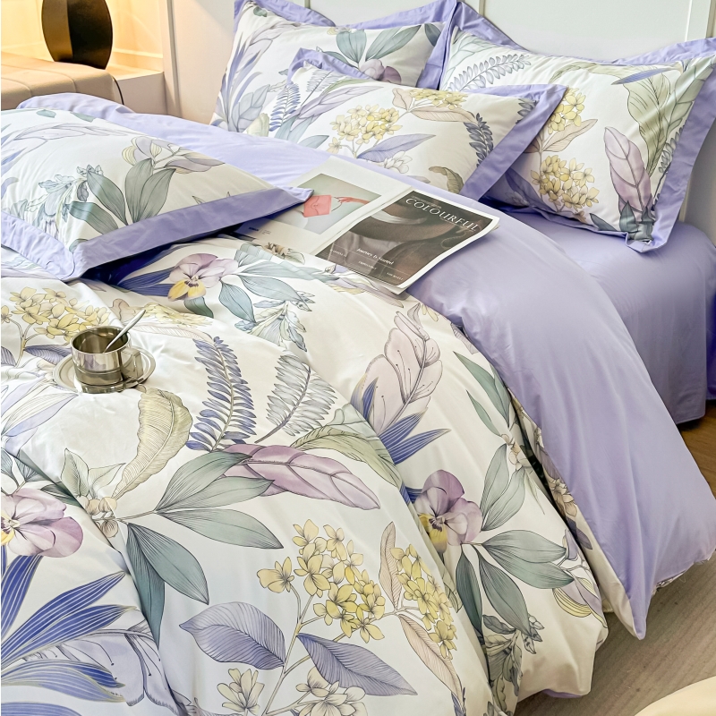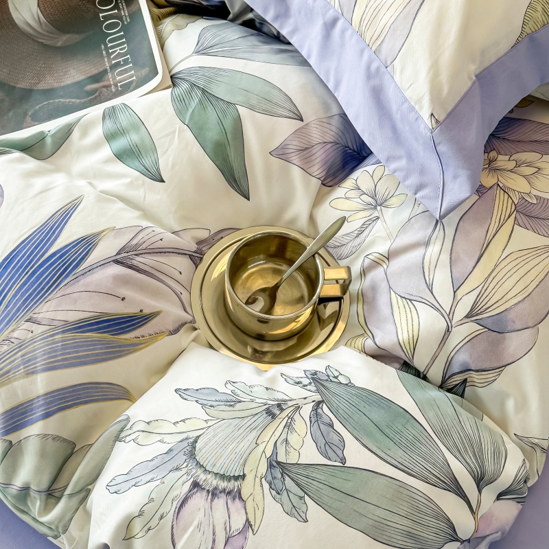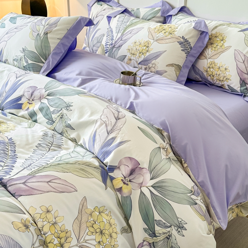 棉生活 2024新款铂金棉高支数码印花四件套 花意飘香