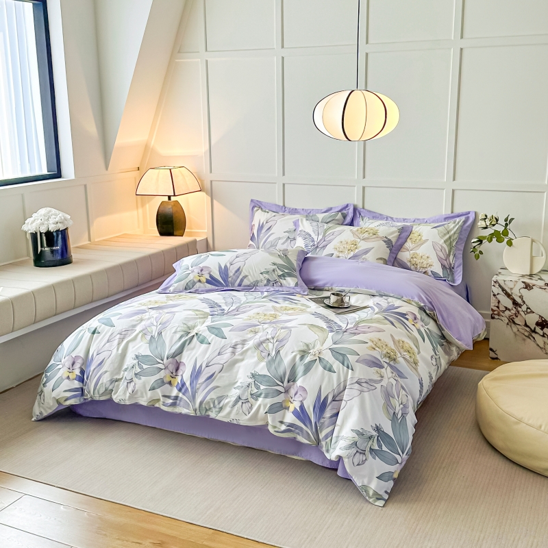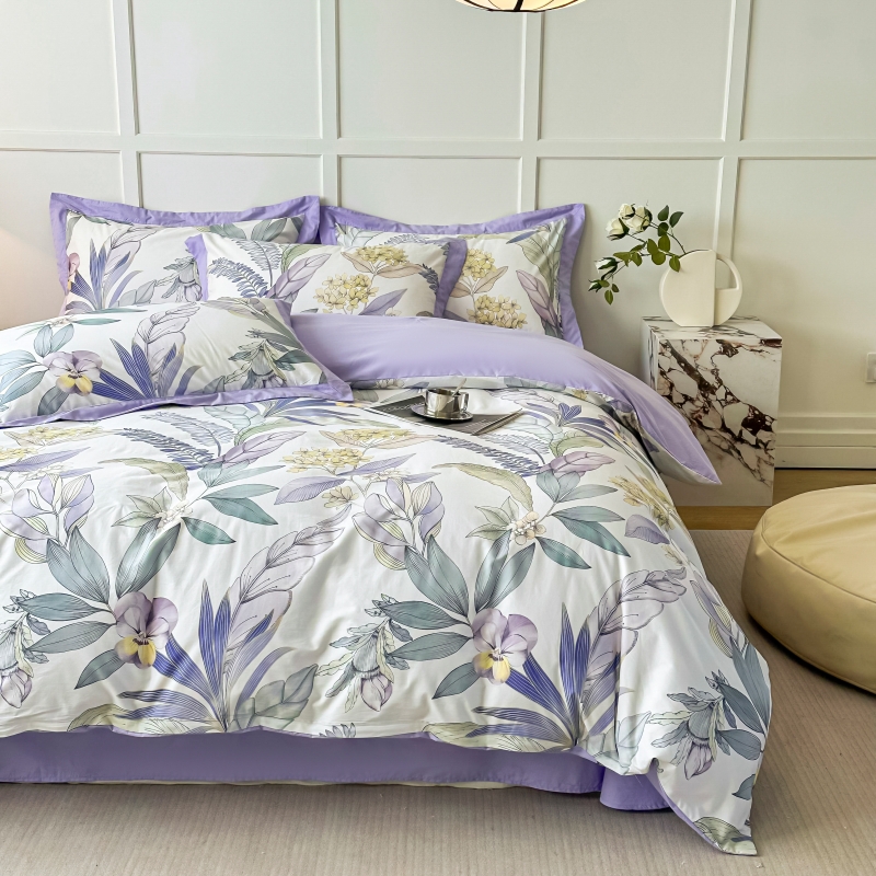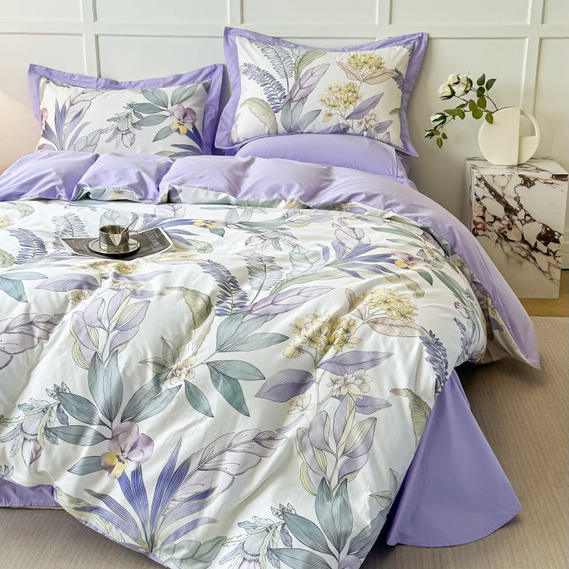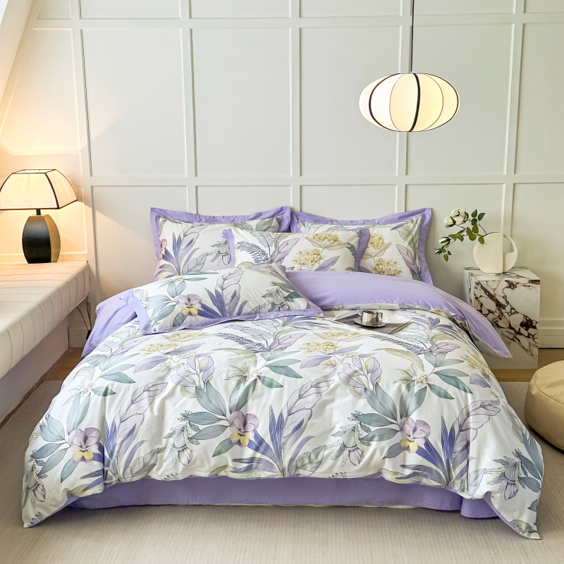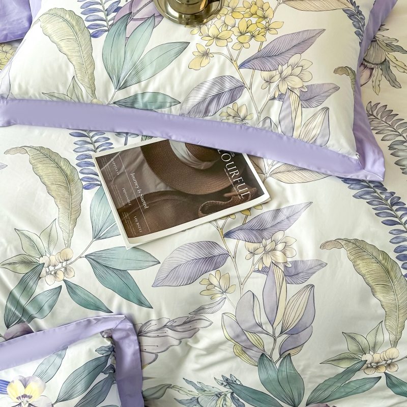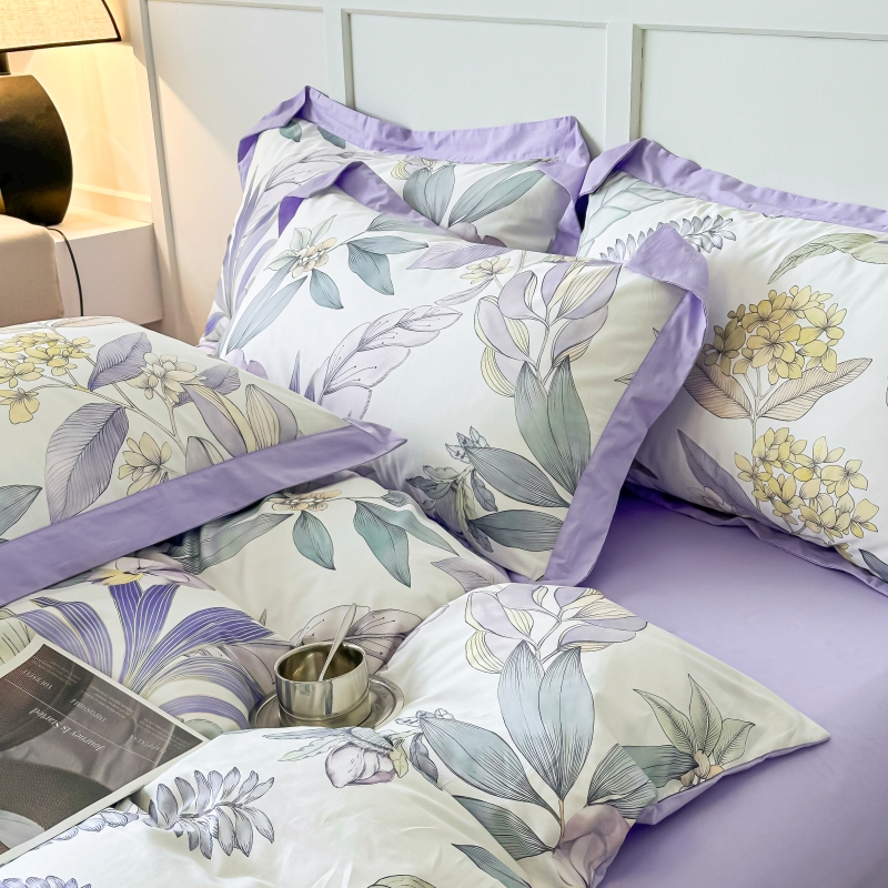 棉生活 2024新款铂金棉高支数码印花四件套 花意飘香