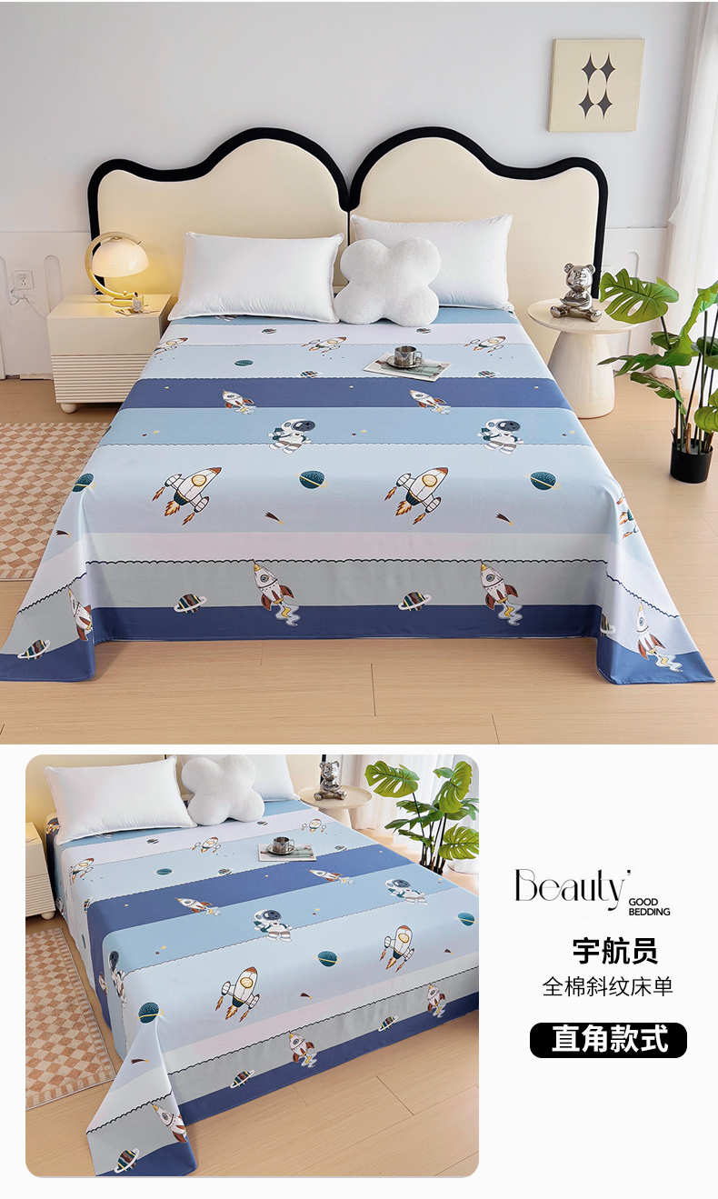 情煊家纺 2024新款全棉斜纹直角床单系列-印花款 宇航员