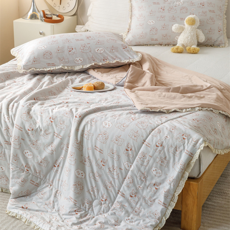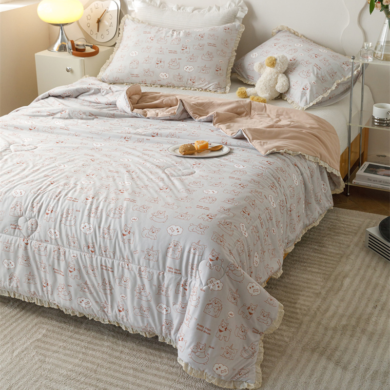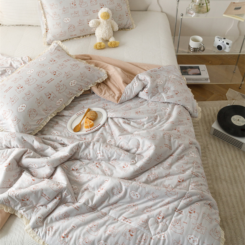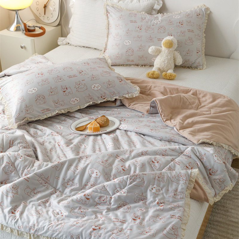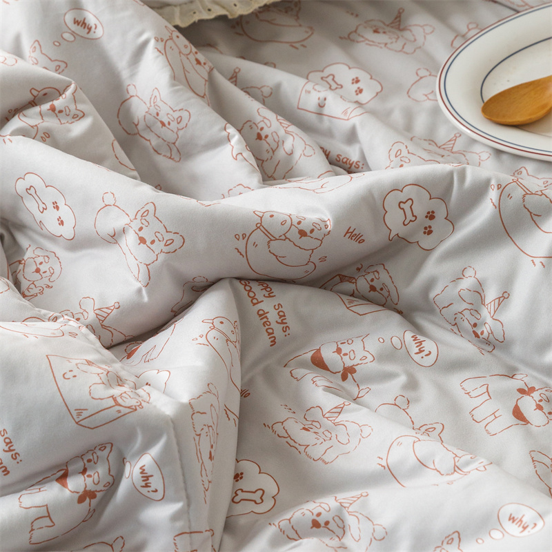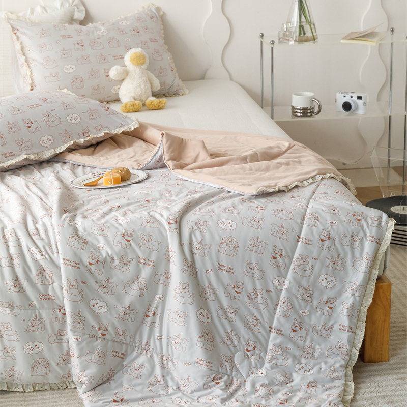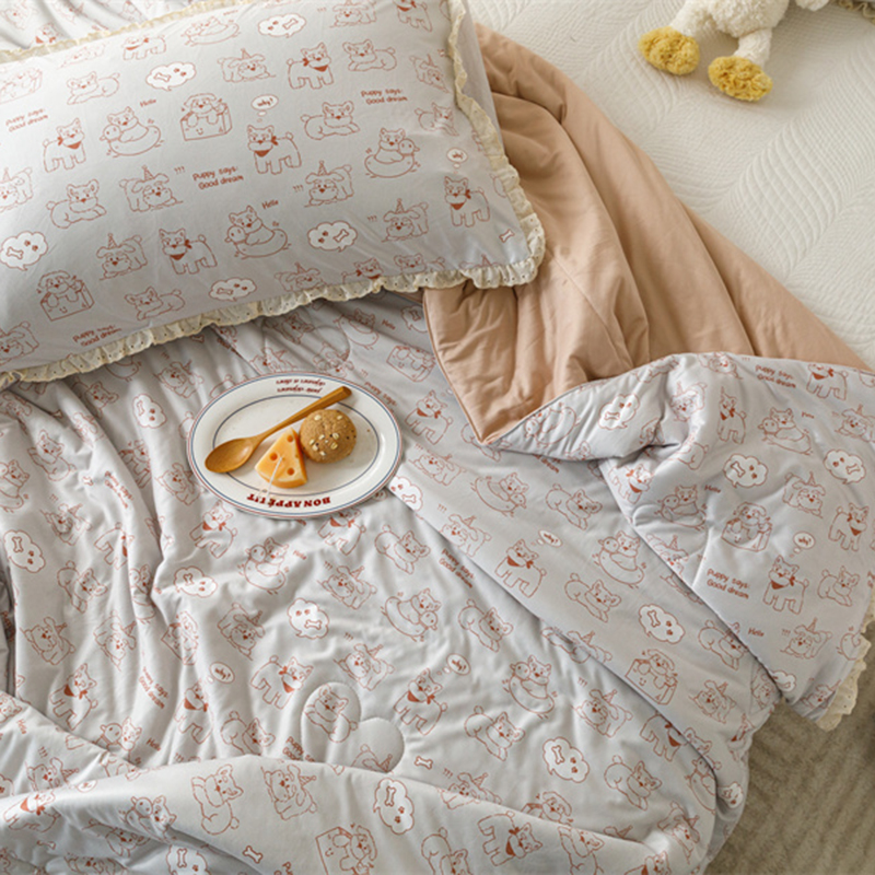 有货 2024新款春夏新款法式针织棉印花夏被春秋被 面包狗