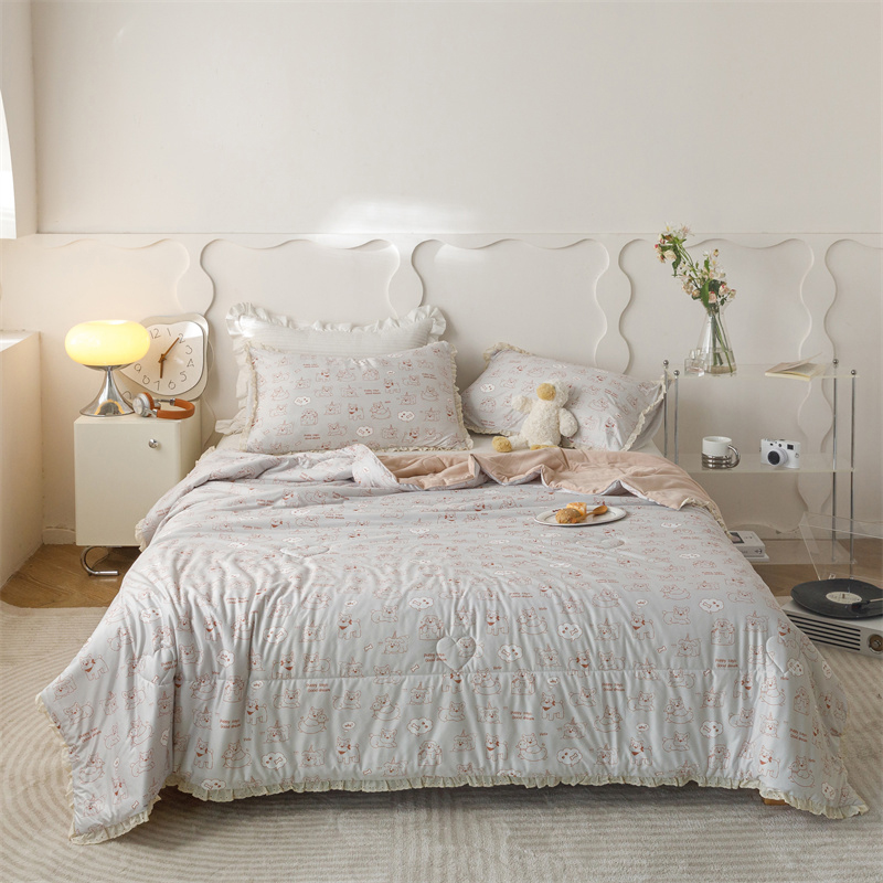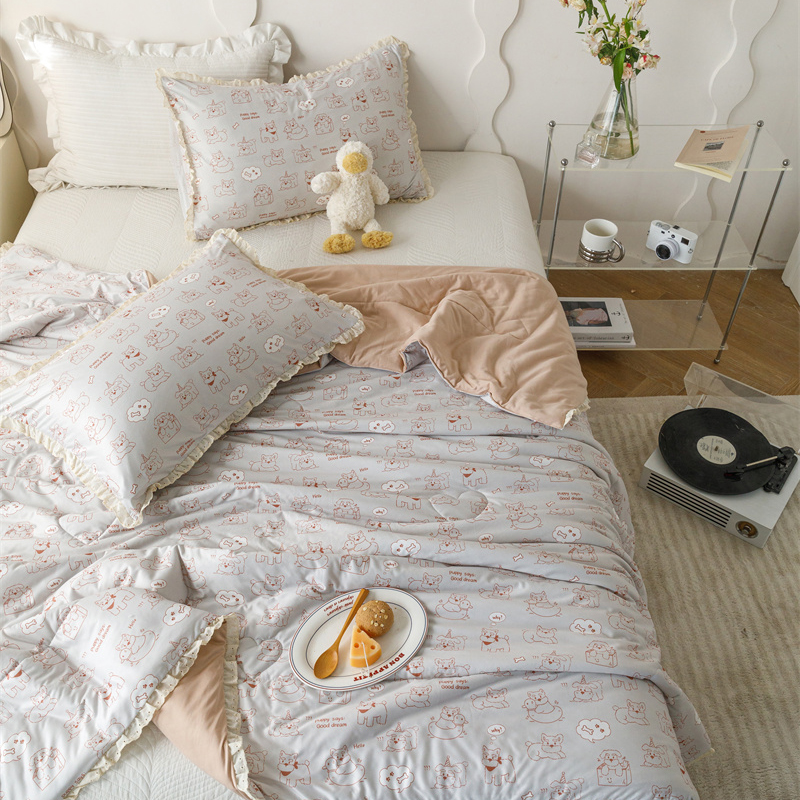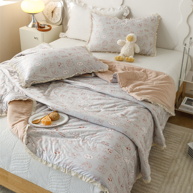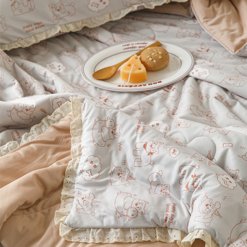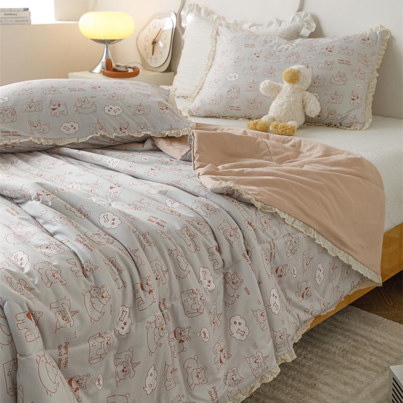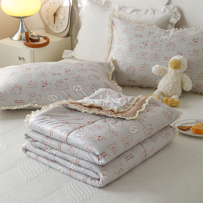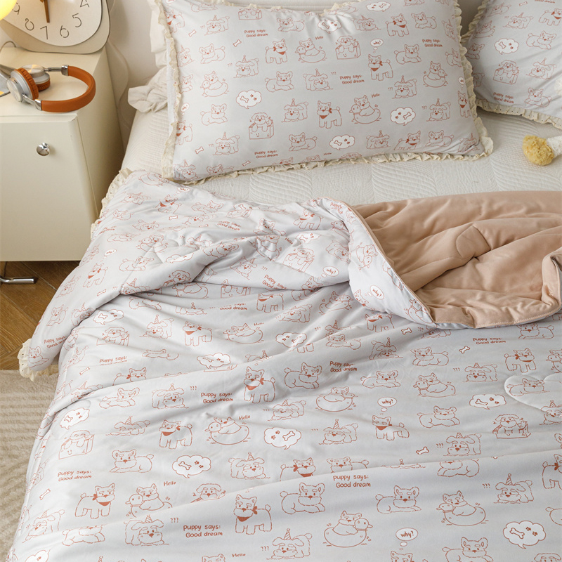 有货 2024新款春夏新款法式针织棉印花夏被春秋被 面包狗