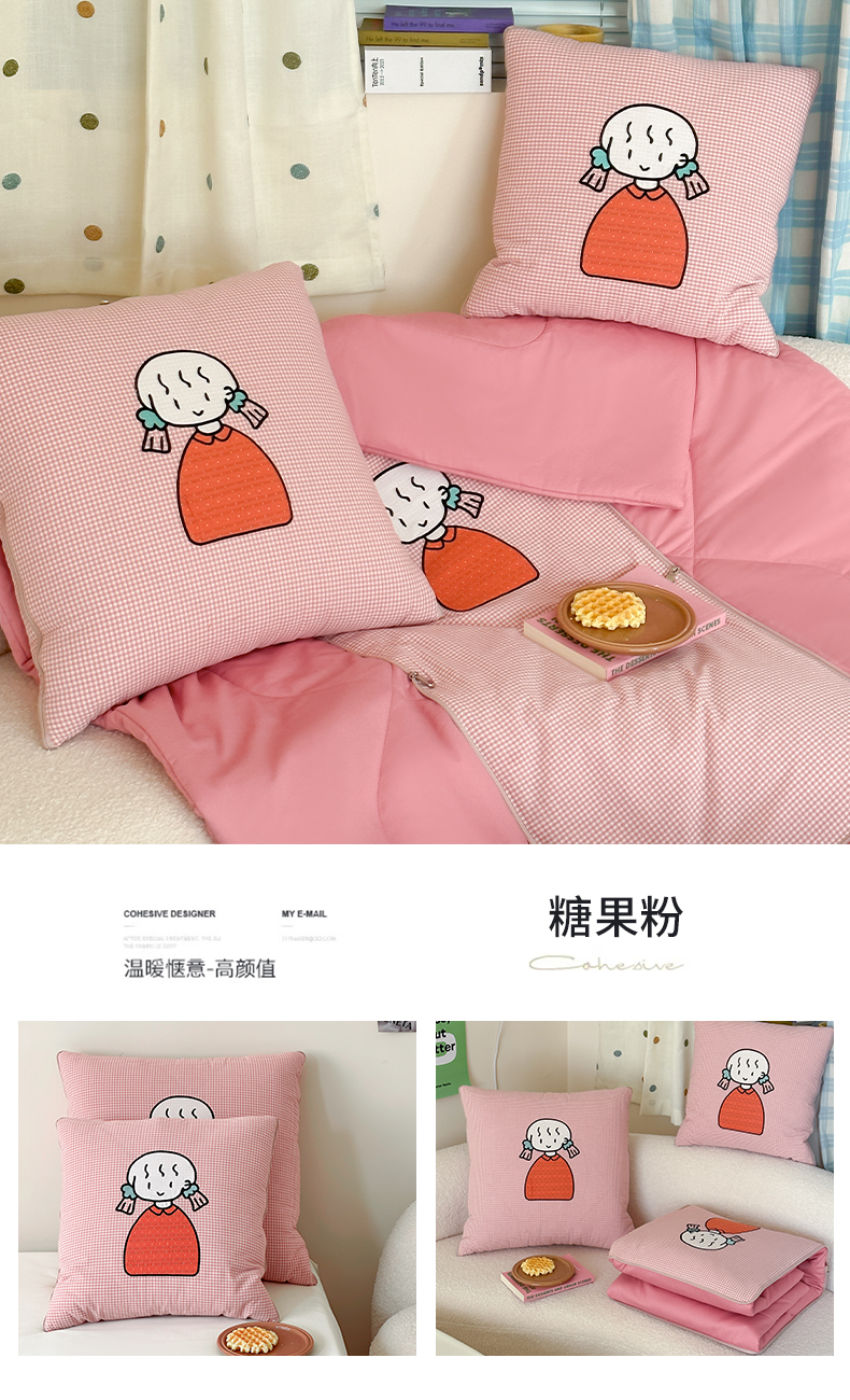 商品名称:多米家居 2024新款卡通多功能抱枕被Amy小窝抱枕被 糖果-粉