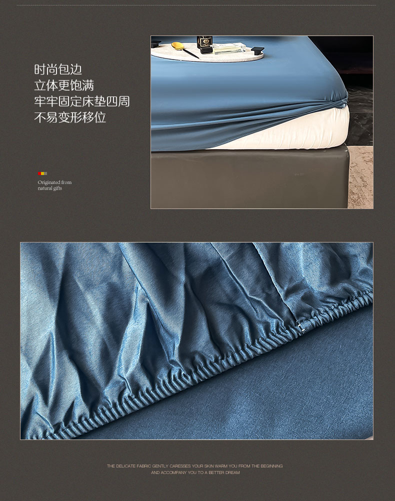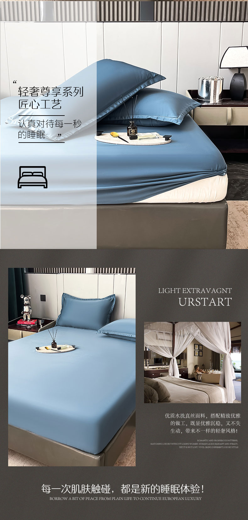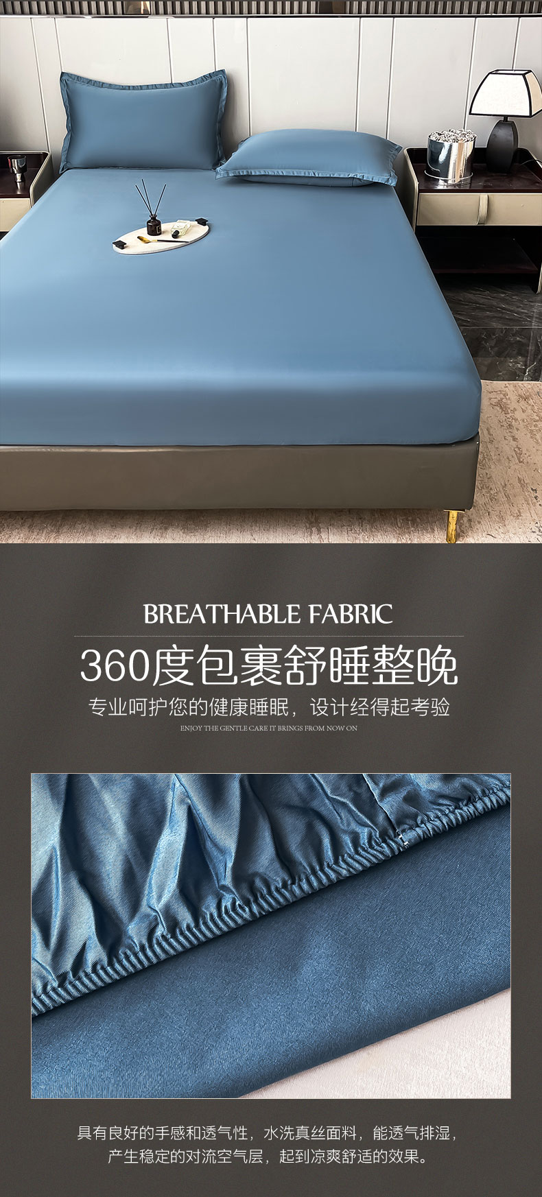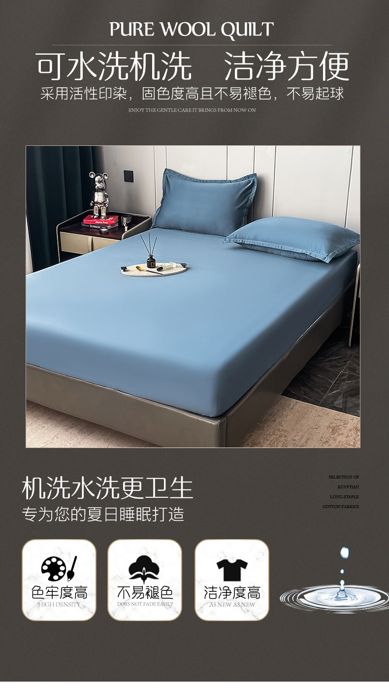 • 91家纺网 家纺一手货源 找家纺 伊而梦蚊帐 2024新款水洗真丝单品床笠 三件套 宾利蓝