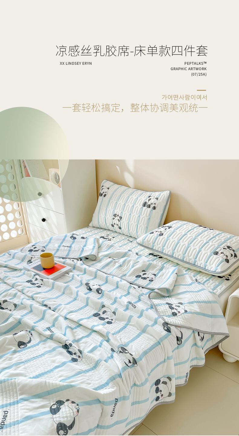 商品名称:LIFE.丽芙 2024年0.4乳胶凉席加厚条席款三件套+凉感丝夏被可组合四件套图片二 小熊猫