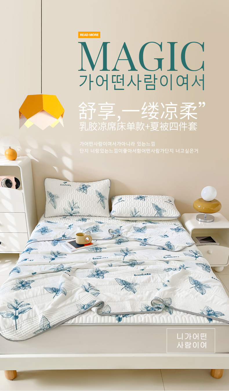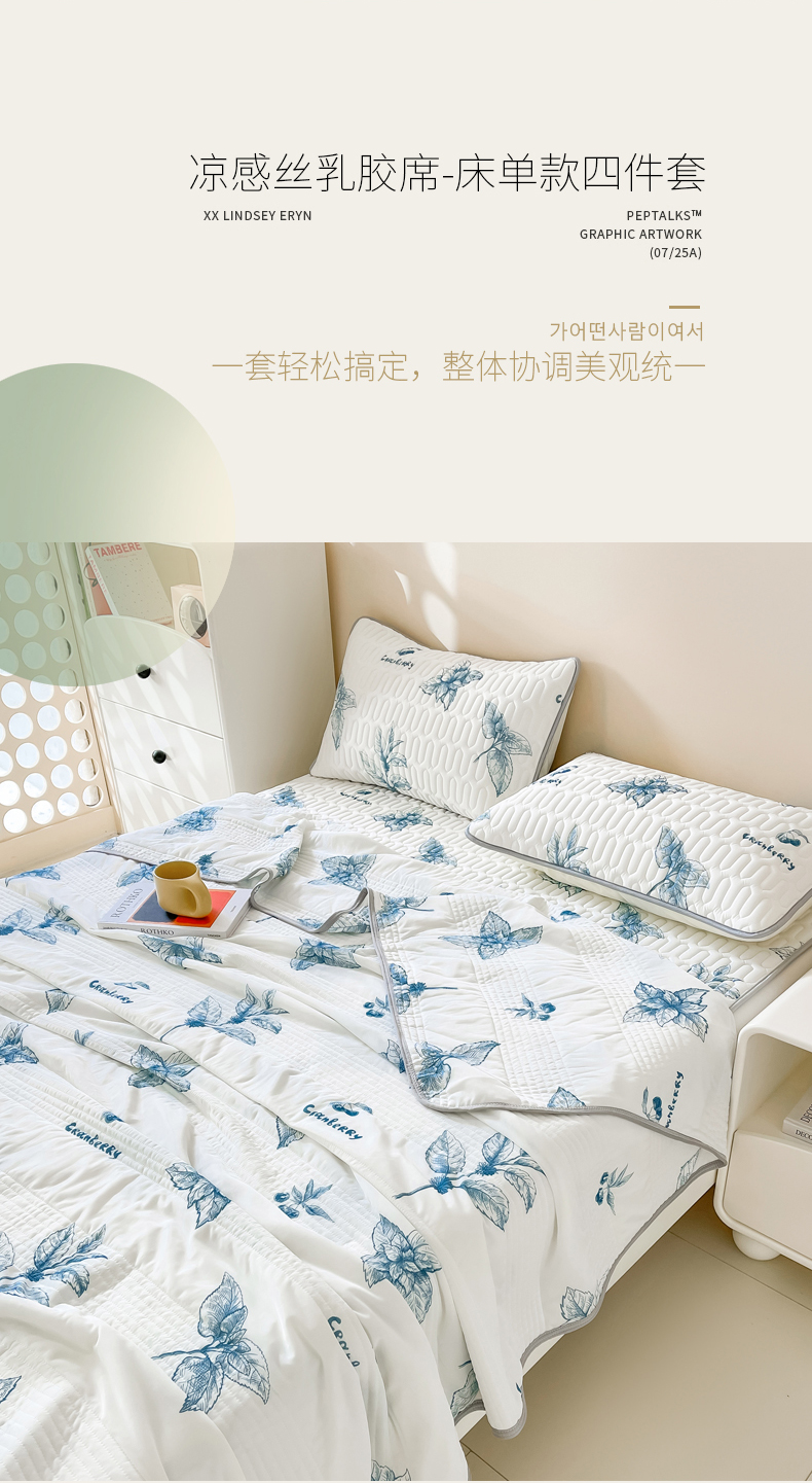 LIFE.丽芙 2024年0.4乳胶凉席加厚条席款三件套+凉感丝夏被可组合四件套图片二 花涧