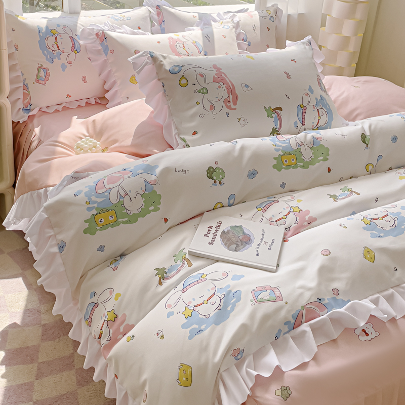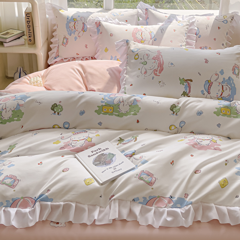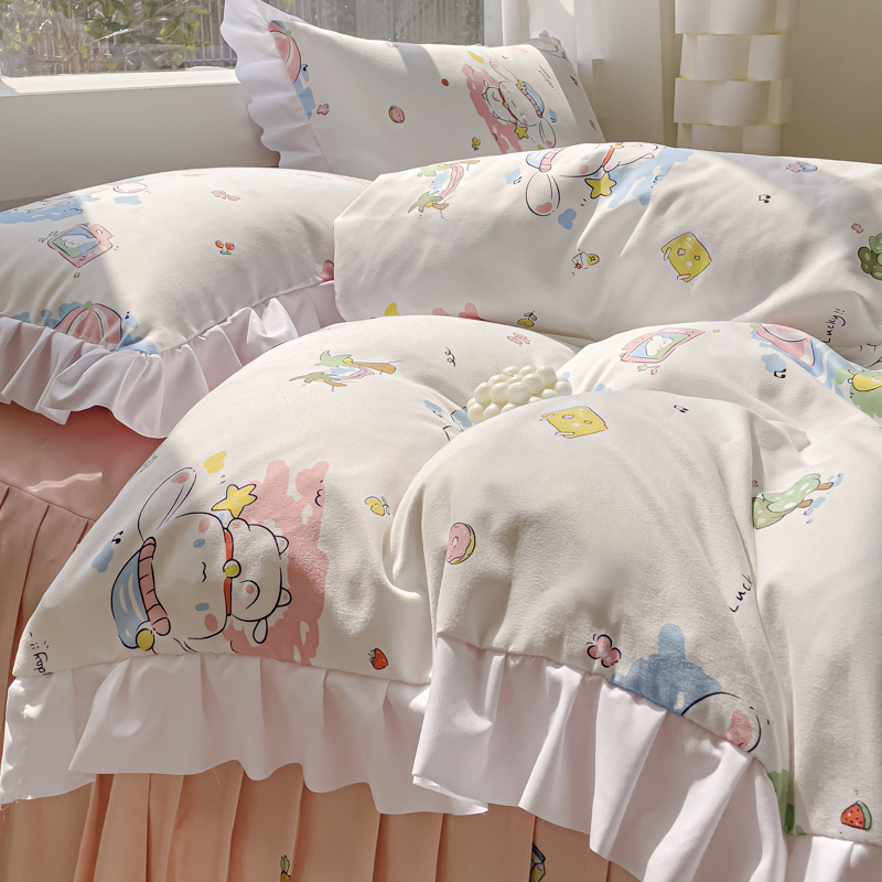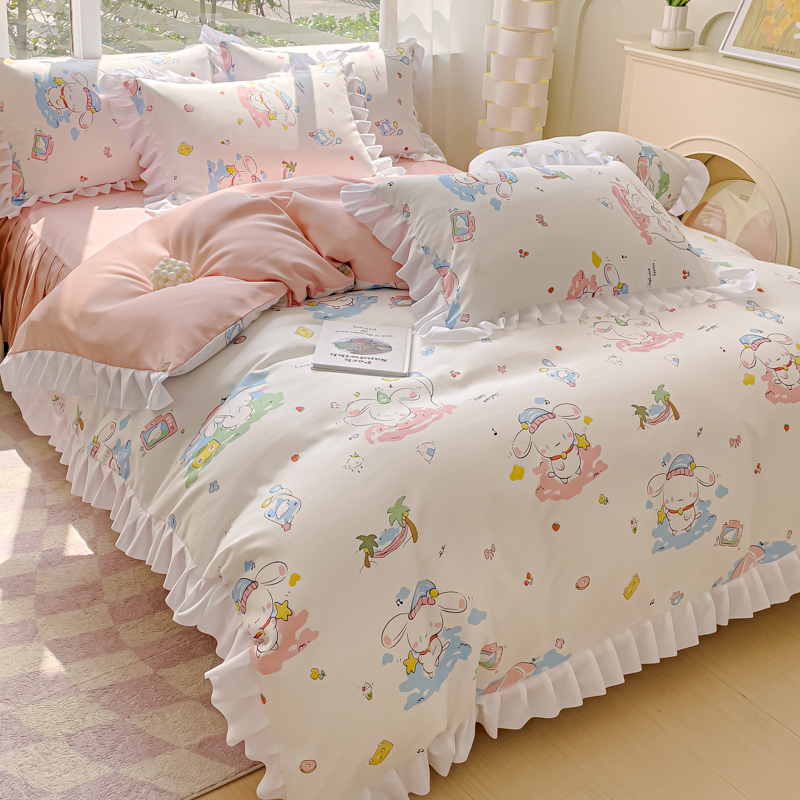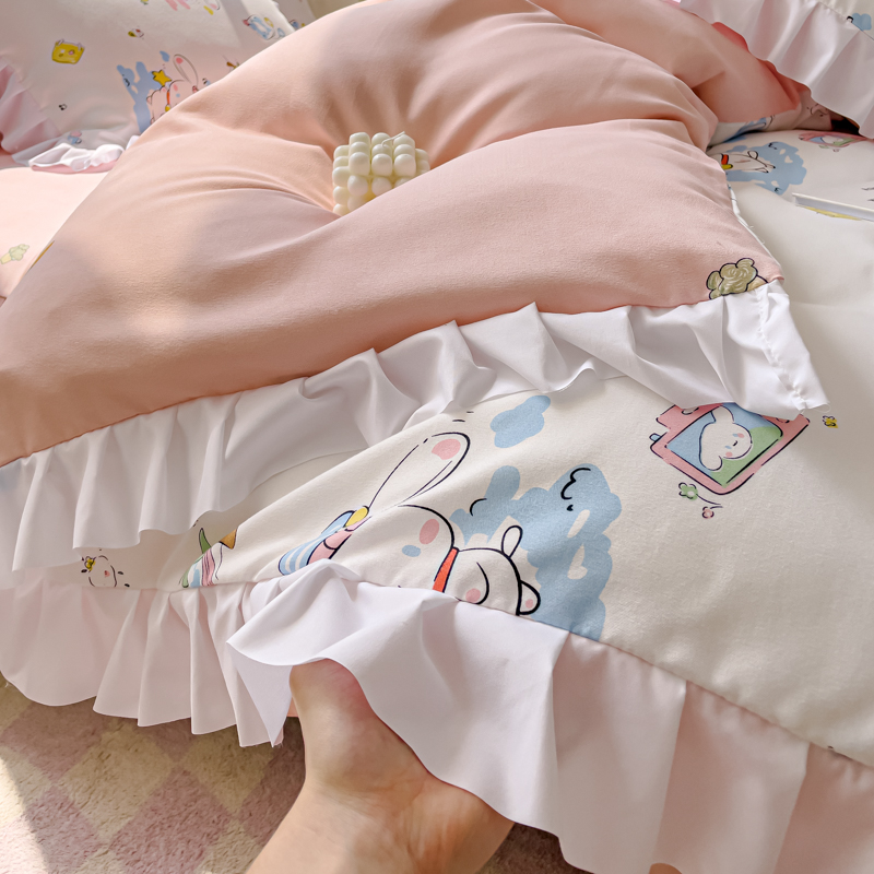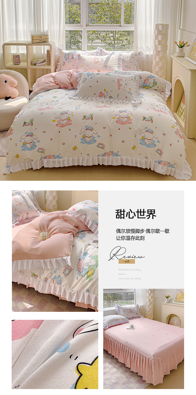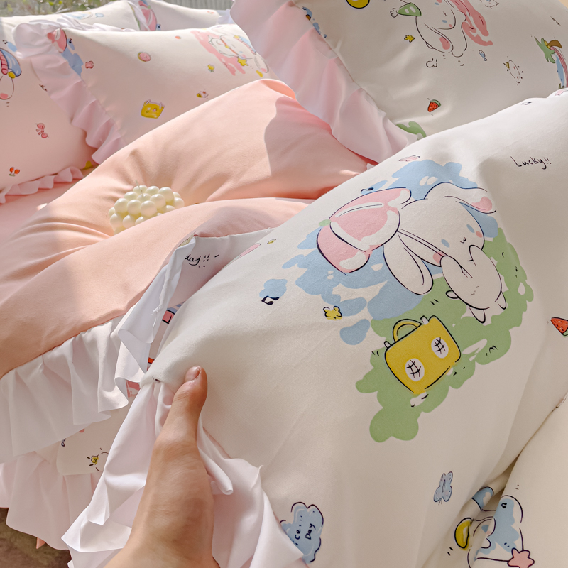 (总)麦瑞家纺 2024新款韩版公主风花边四件套,花园兔,熊宝贝,桔小花,汪星人,cat猫,可爱小熊,小葡萄,紫色兔兔,甜心世界,元气桃桃,晴空,童年游戏,摩登天空