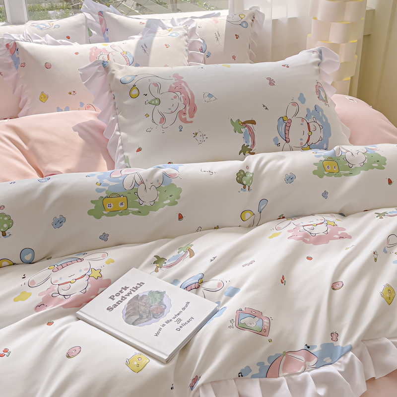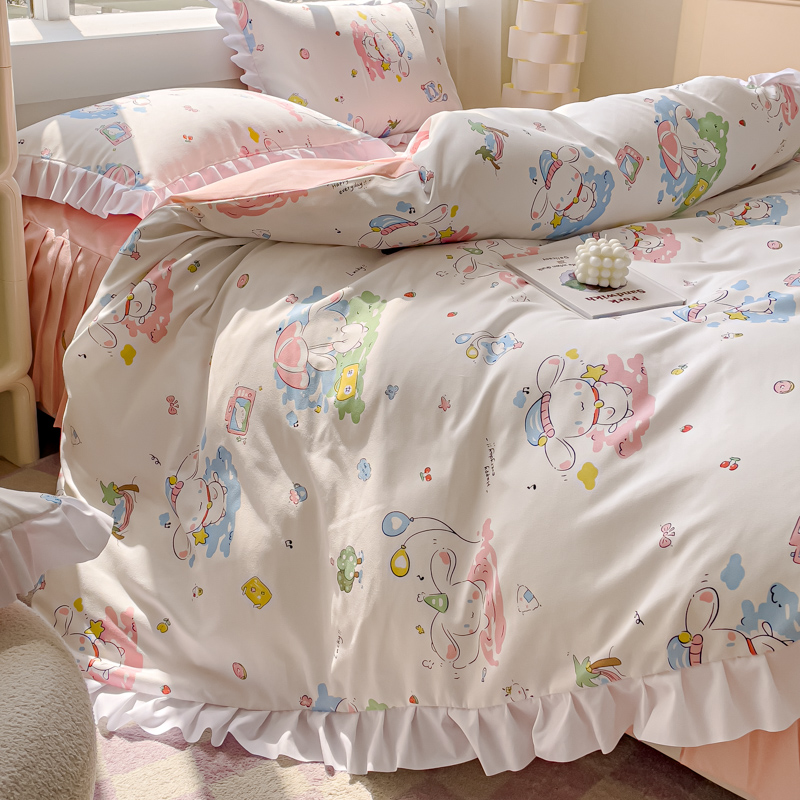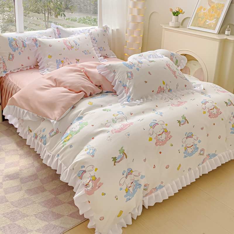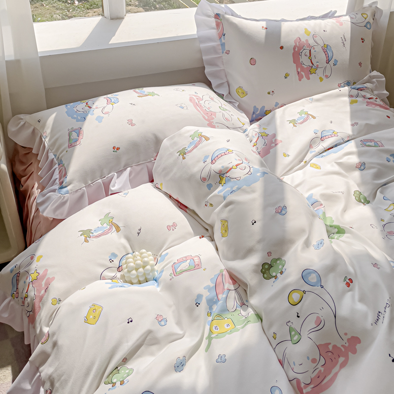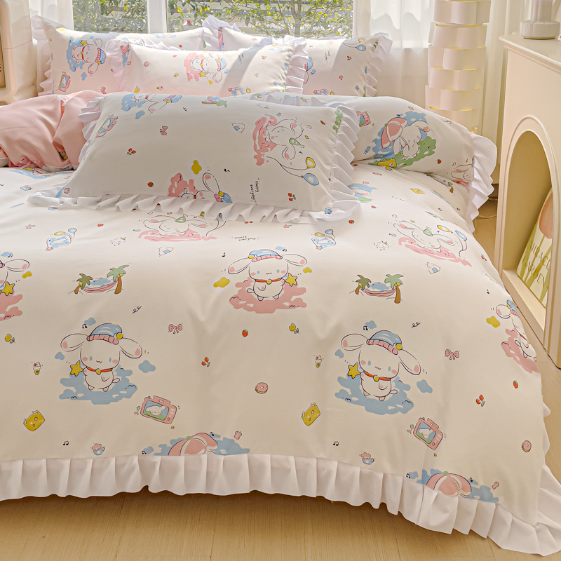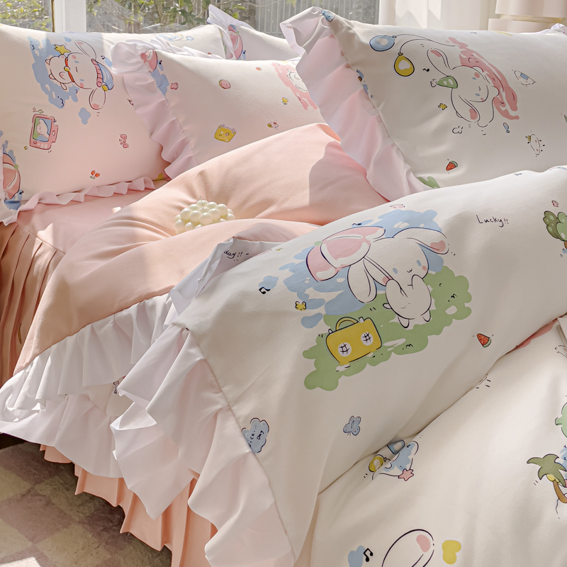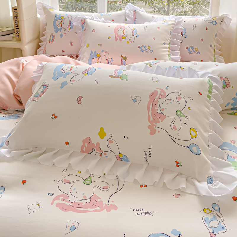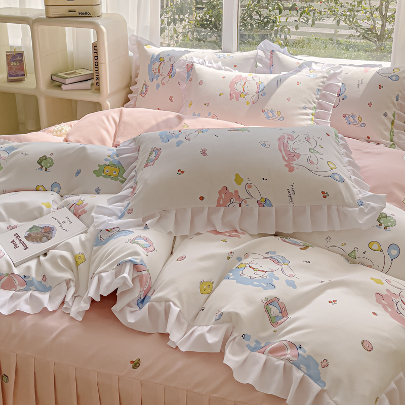 (总)麦瑞家纺 2024新款韩版公主风花边四件套,花园兔,熊宝贝,桔小花,汪星人,cat猫,可爱小熊,小葡萄,紫色兔兔,甜心世界,元气桃桃,晴空,童年游戏,摩登天空
