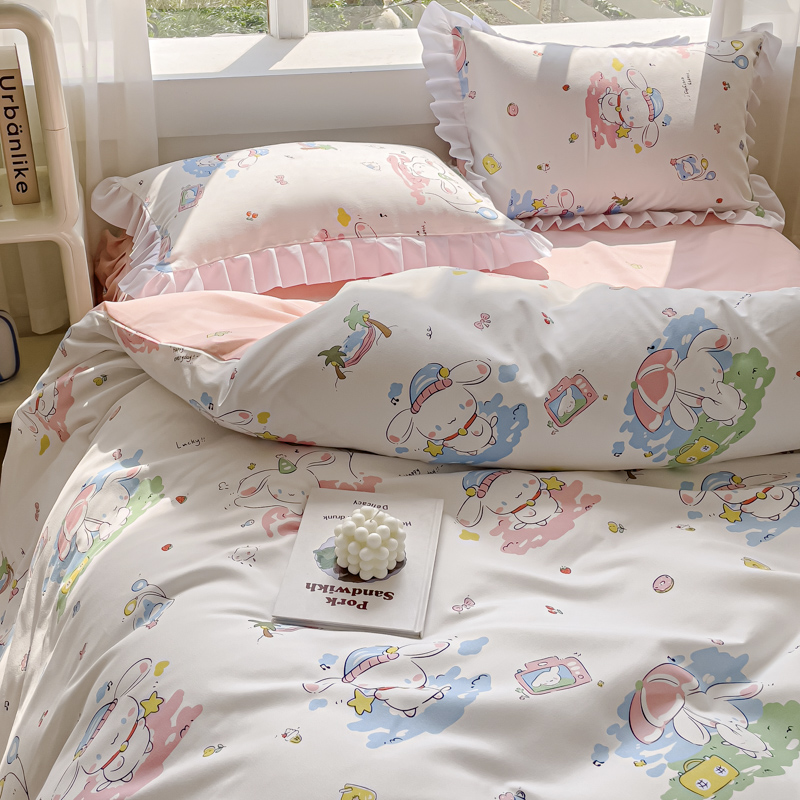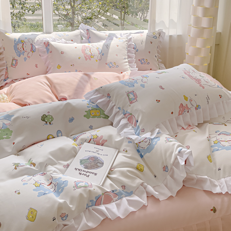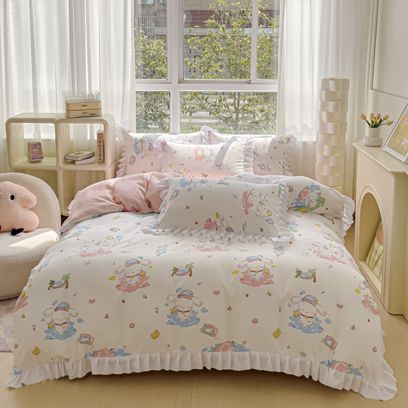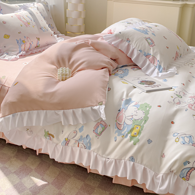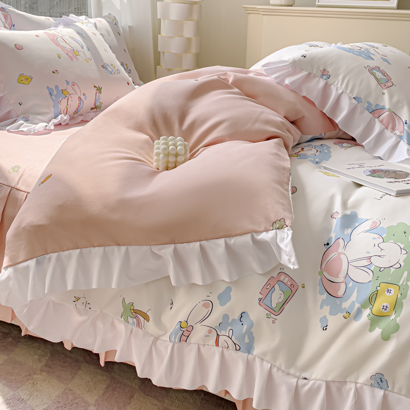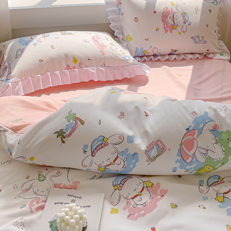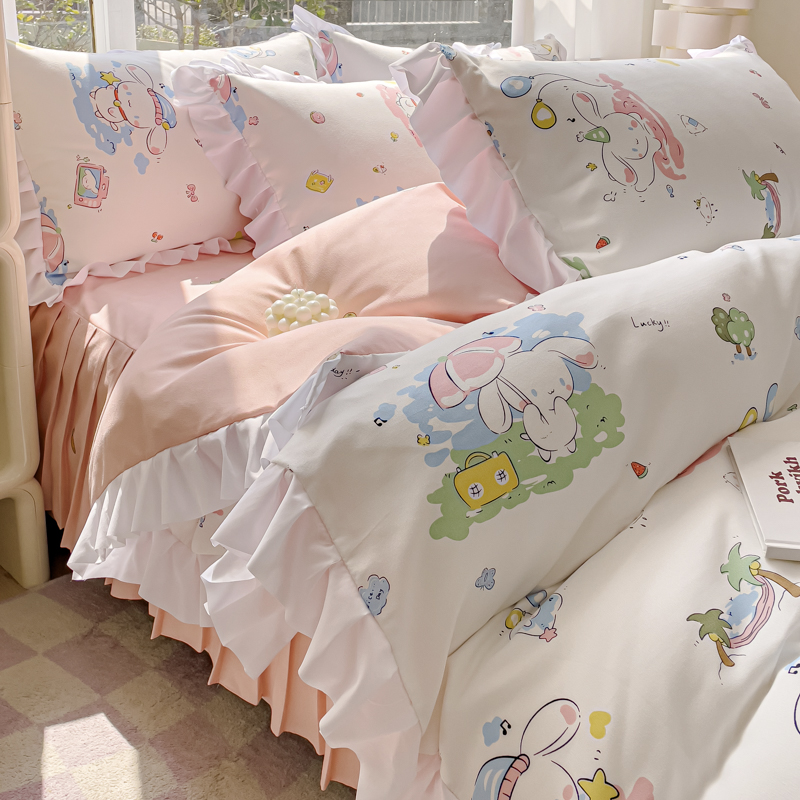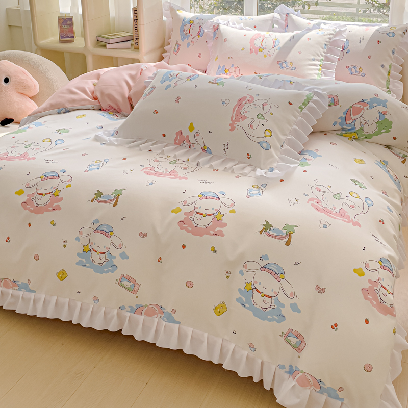 (总)麦瑞家纺 2024新款韩版公主风花边四件套,花园兔,熊宝贝,桔小花,汪星人,cat猫,可爱小熊,小葡萄,紫色兔兔,甜心世界,元气桃桃,晴空,童年游戏,摩登天空