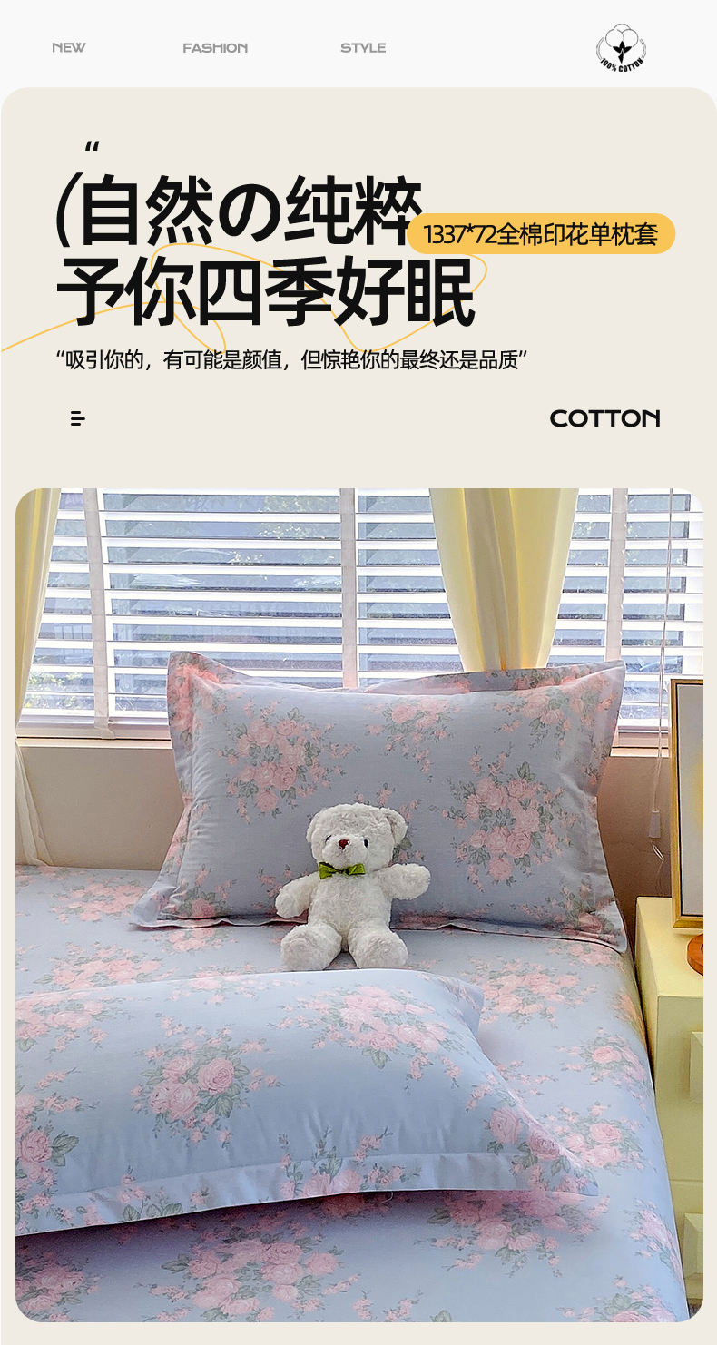 (总)宝齐莱家纺 2025新款13376全棉纯棉活性印花枕套单品单枕套枕套单件,晨雾蓝-枕套,初颜-枕套,黑白格-枕套,恋曲-枕套,灵动玉-枕套,百合花-枕套,梦幻紫-枕套,秘密花园-枕套,奶茶-枕套,欧若拉-枕套,浅香-枕套,旺仔-枕套,午后红茶-枕套,西子兰-枕套,馨悦紫-枕套,优雅恋人-枕套,云思蓝-枕套,紫玫瑰-枕套