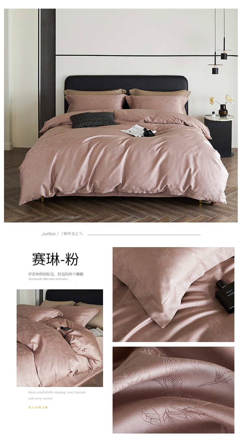 商品名称:梦享生活家居 2024新款100支贡缎提花四件套 赛琳-粉