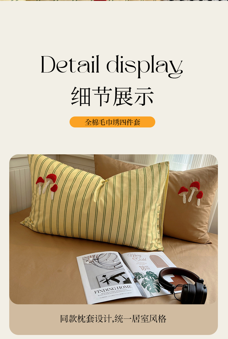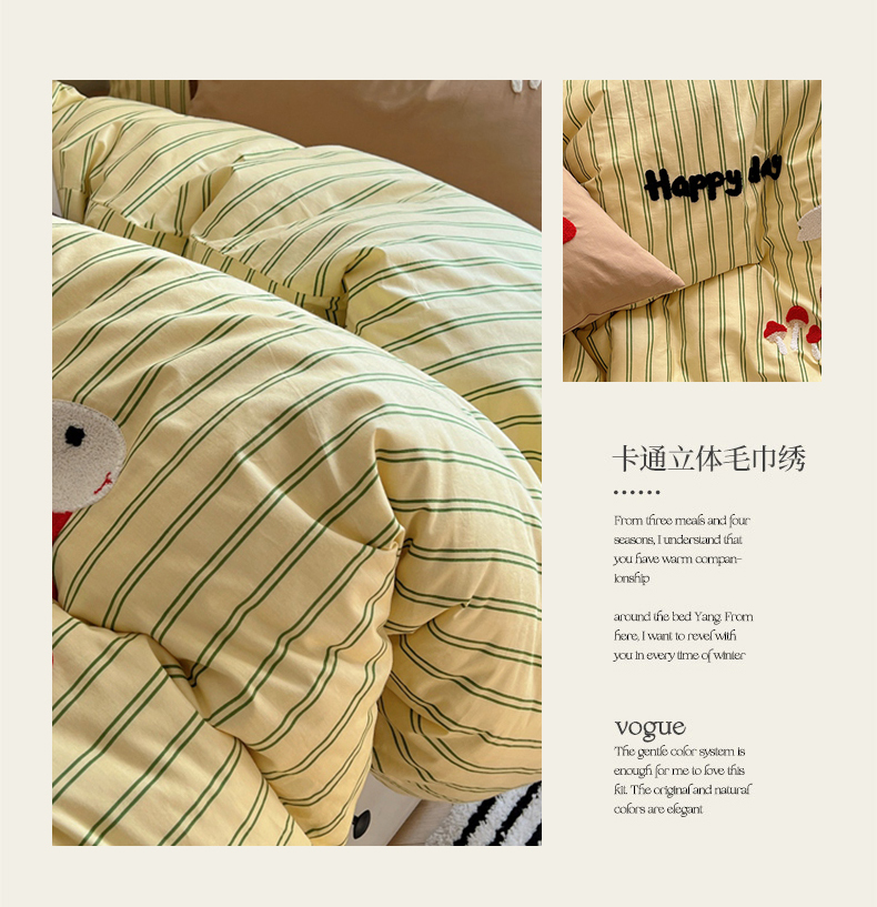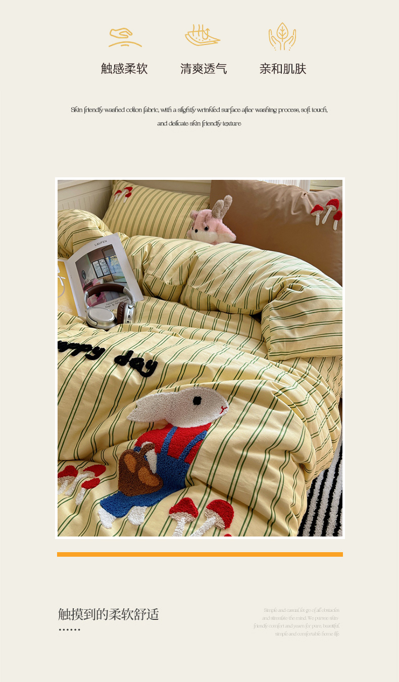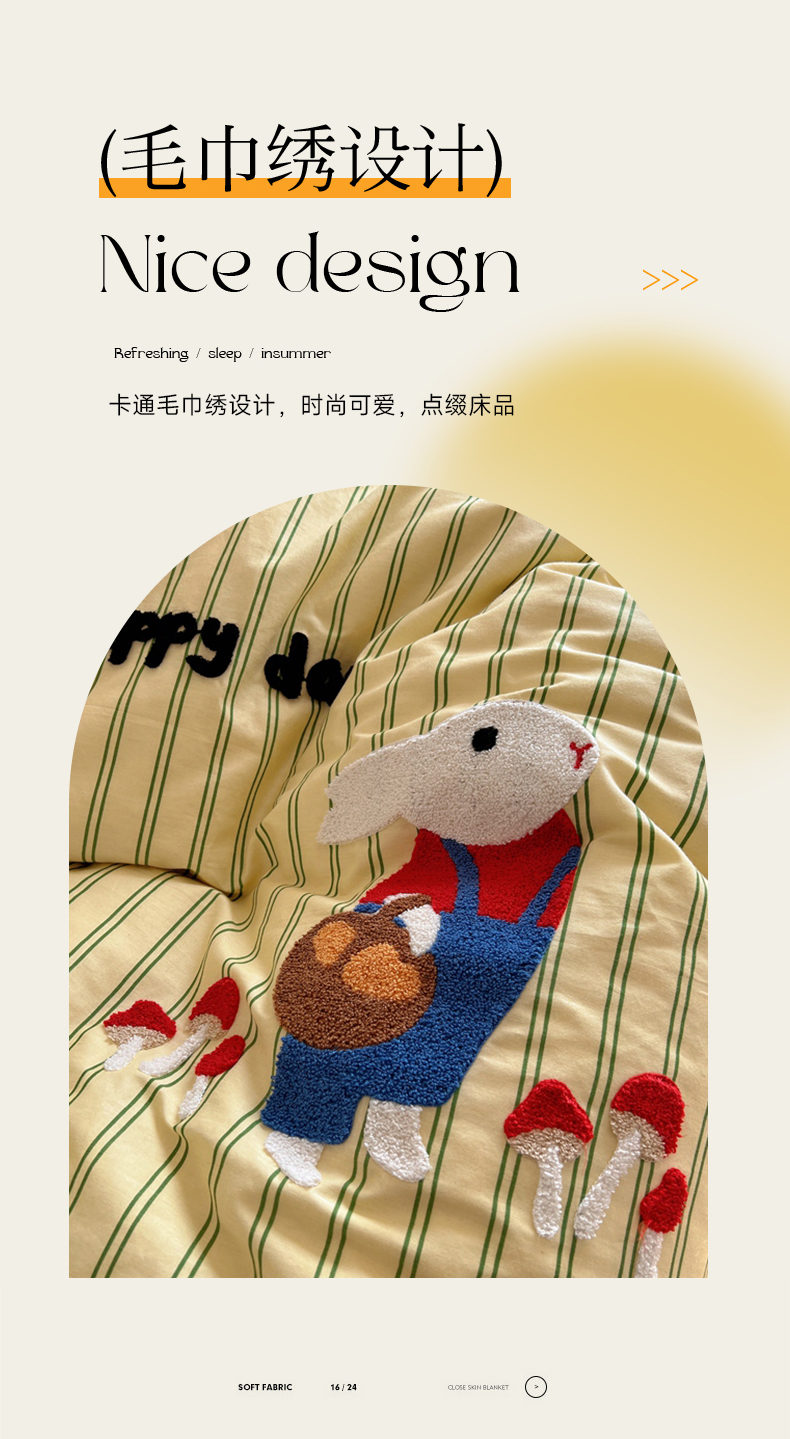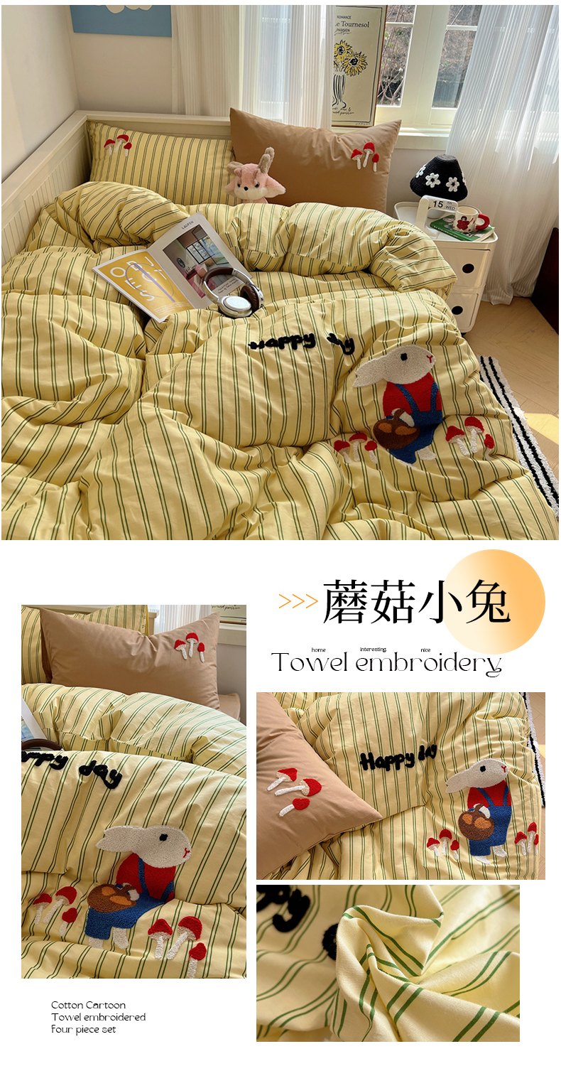 商品名称:呗旺鹿 2024新款小清新全棉四件套毛巾绣四件套纯棉四件套 蘑菇小兔