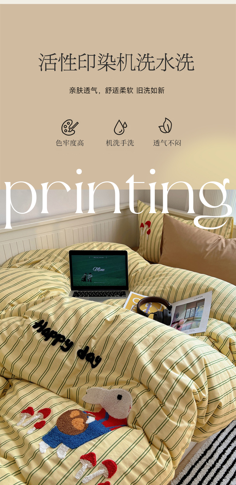 (总)呗旺鹿 2026新款全棉纯棉40支13070卡通印花四件套-场景二,萌星,鼻涕狗,果子象,机灵猫,可爱星人,幸福小熊