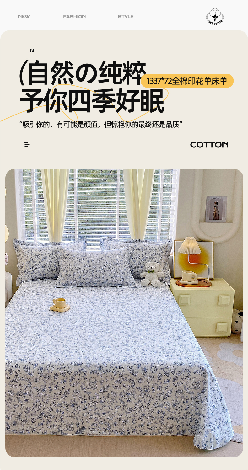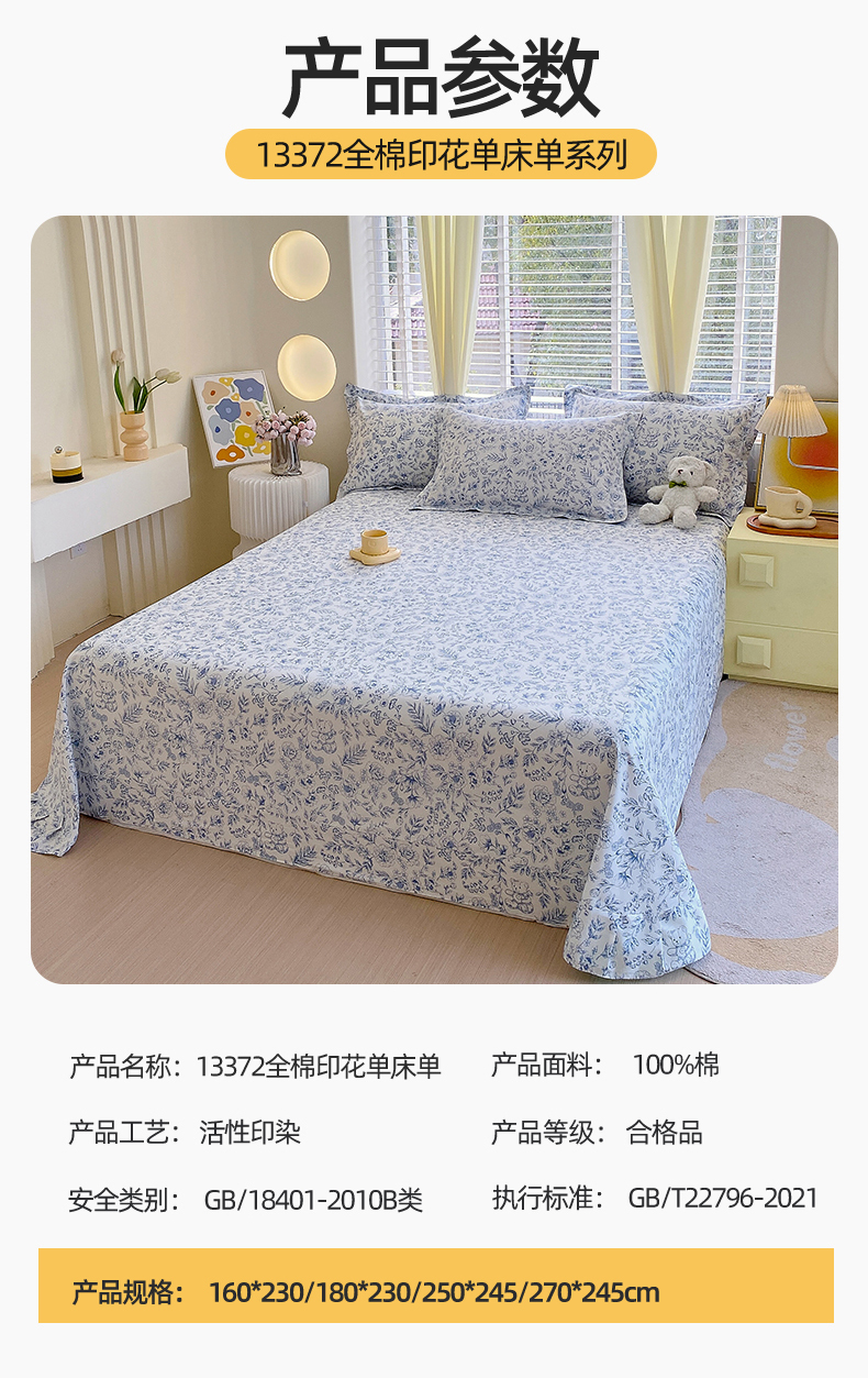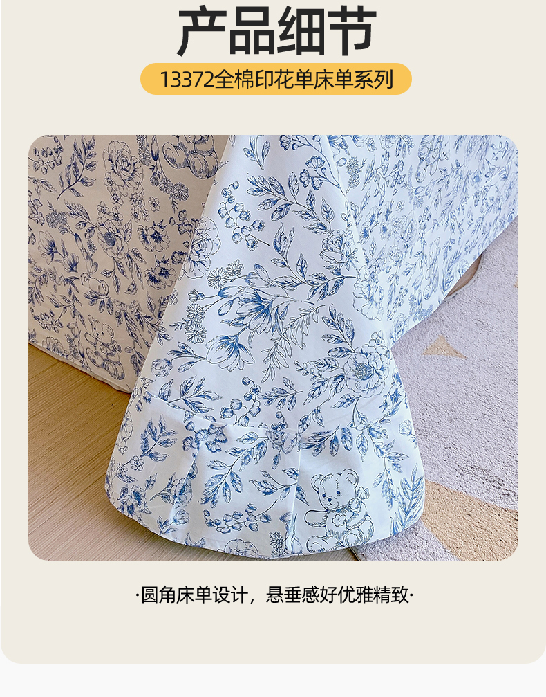 • 91家纺网 家纺一手货源 找家纺 宝齐莱家纺 2024新款13372全棉印花四件套单品系列-床单 花倾城