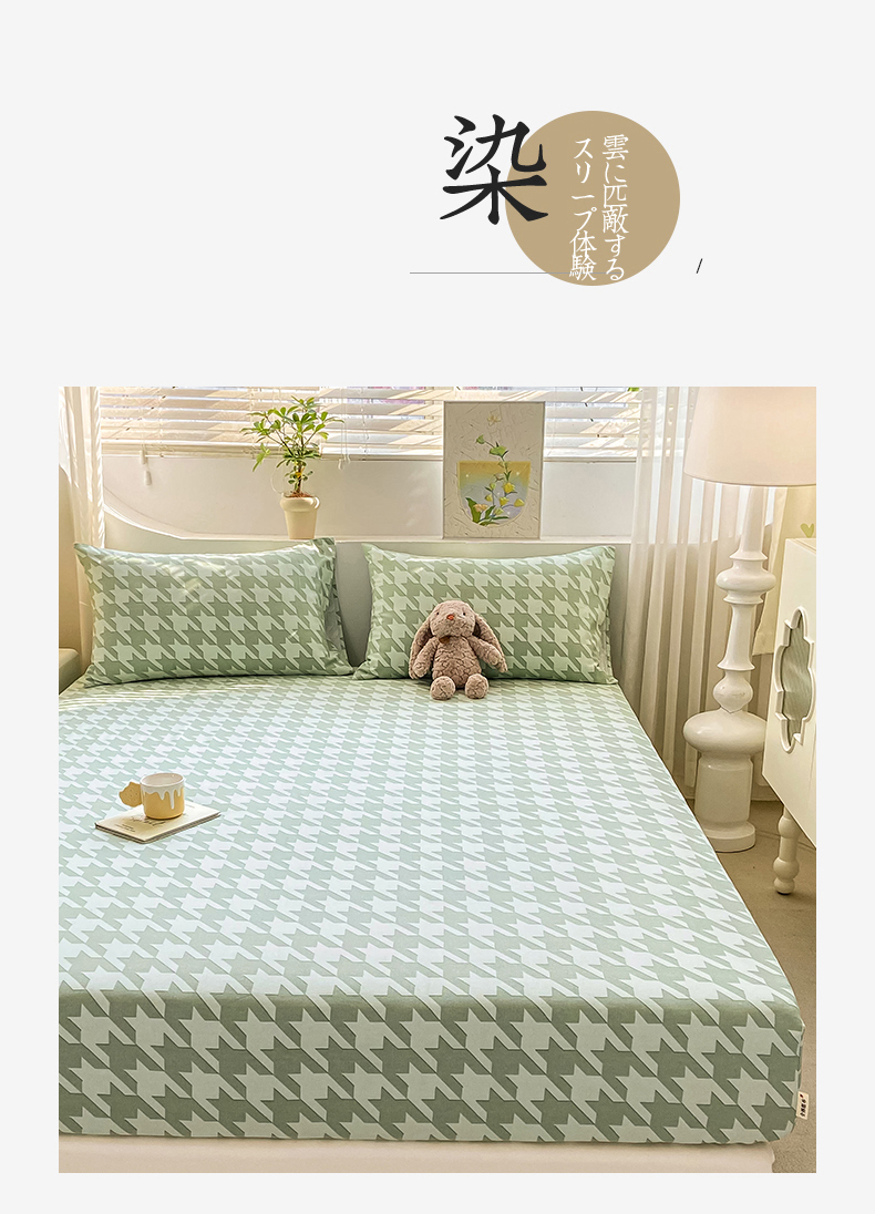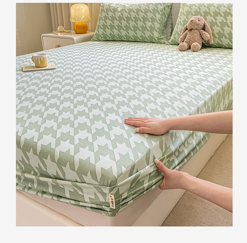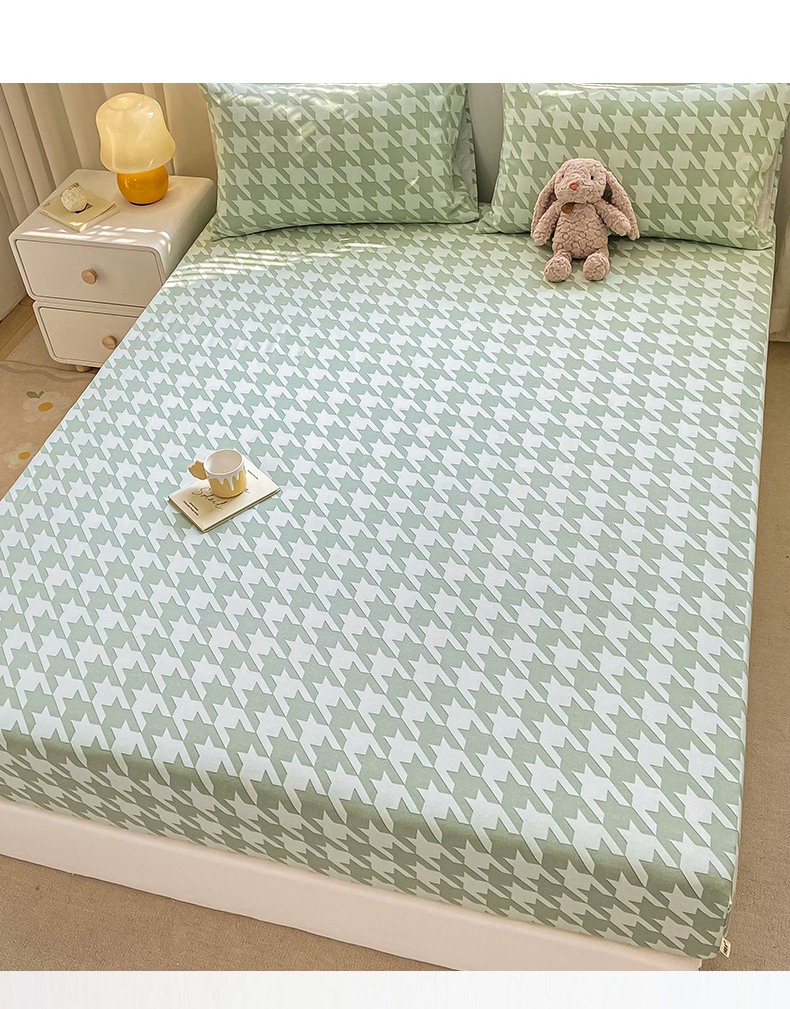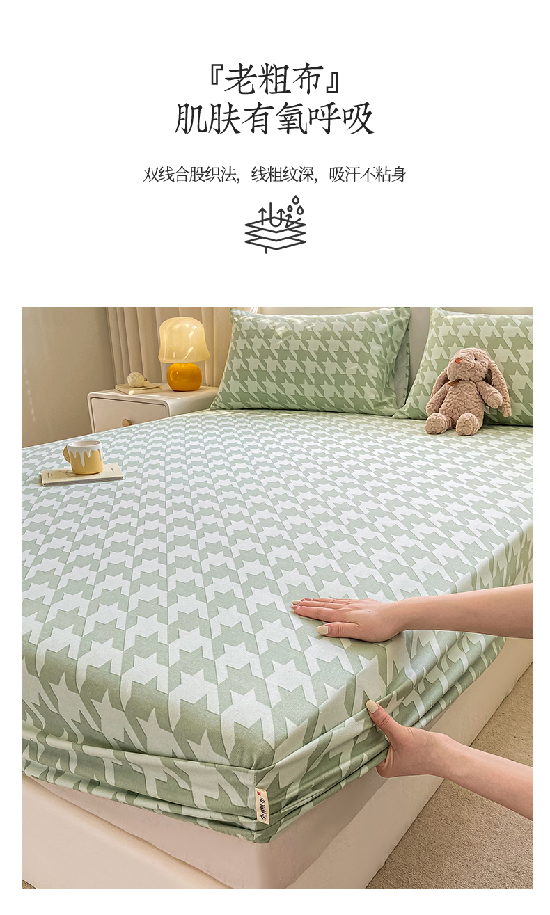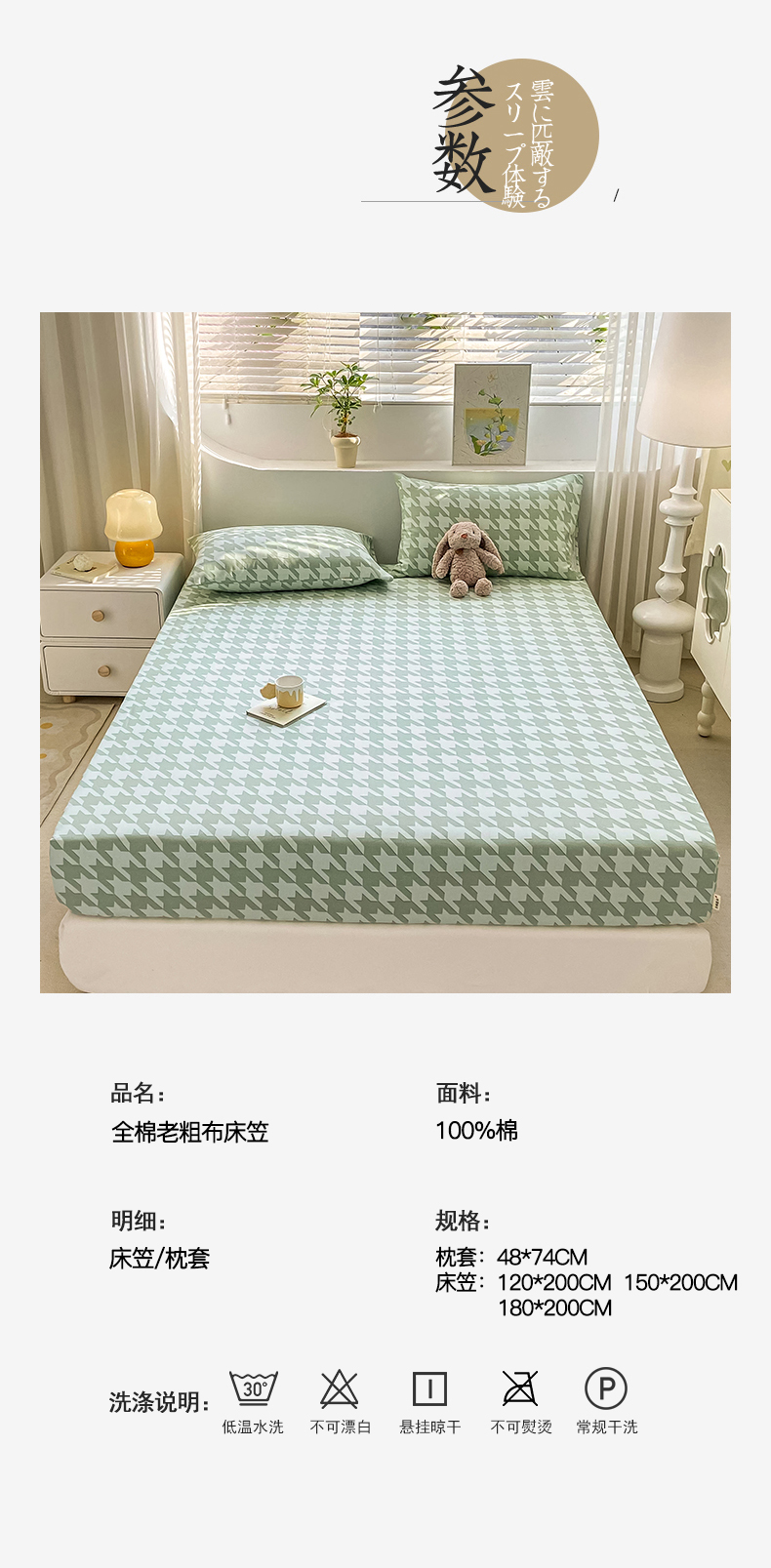 2024新品全棉老粗布单品床笠系列 千鸟格-绿