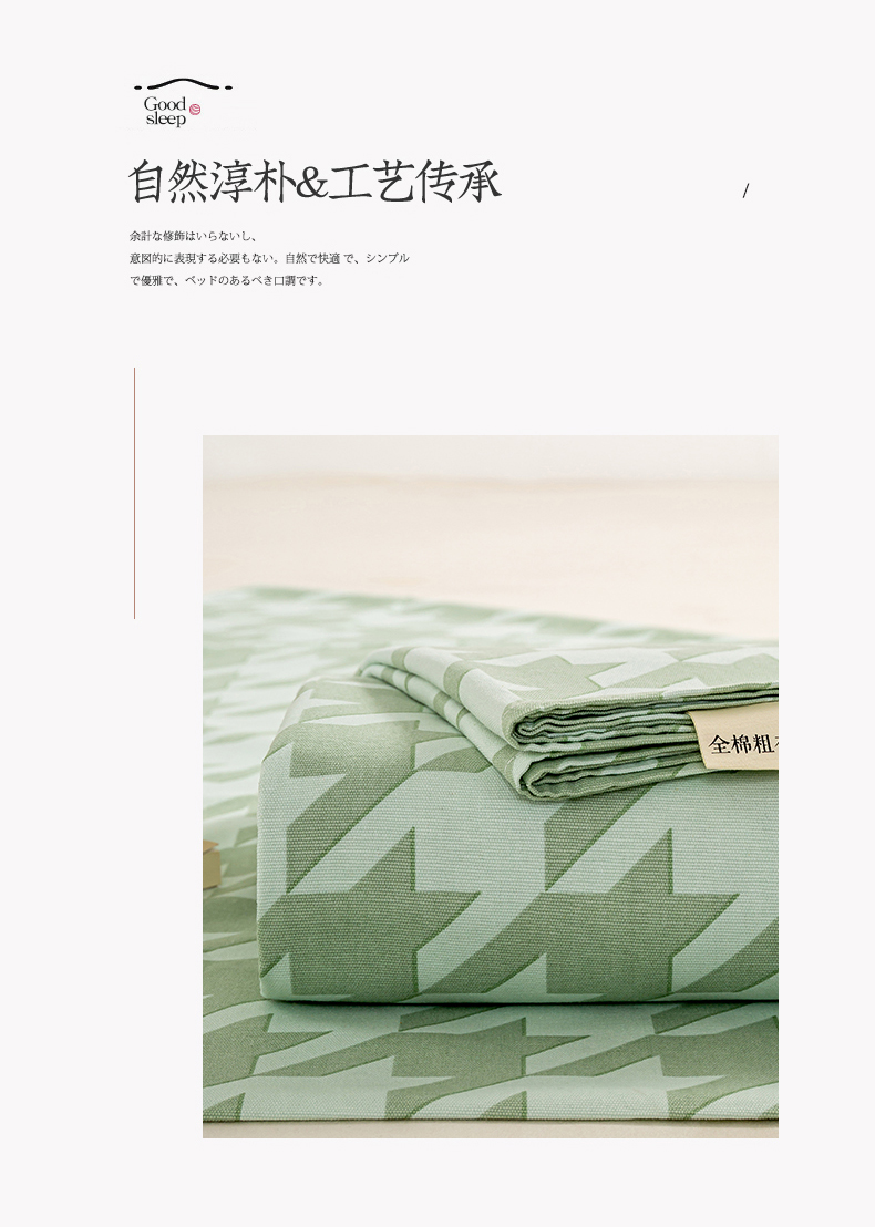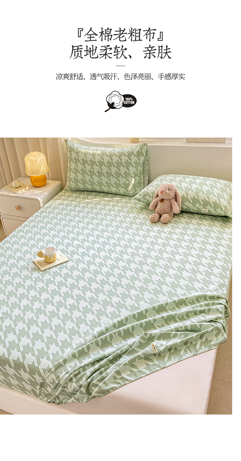 • 91家纺网 家纺一手货源 找家纺 2024新品全棉老粗布单品床笠系列 千鸟格-绿