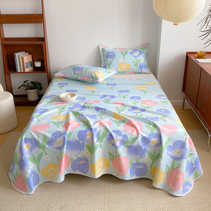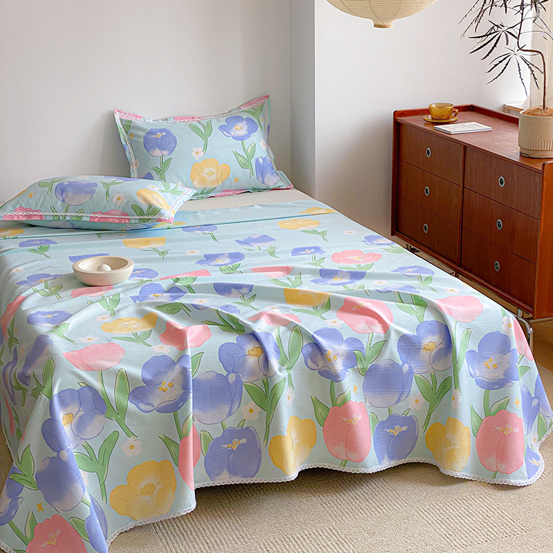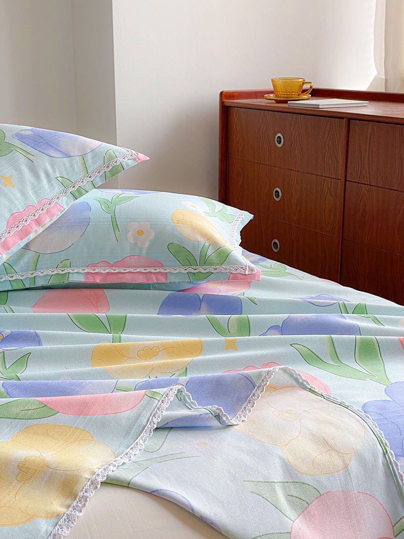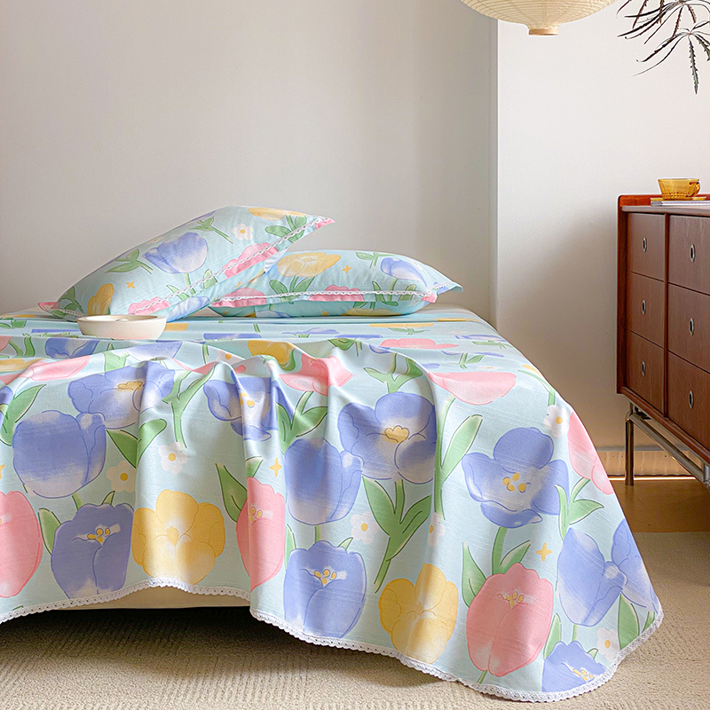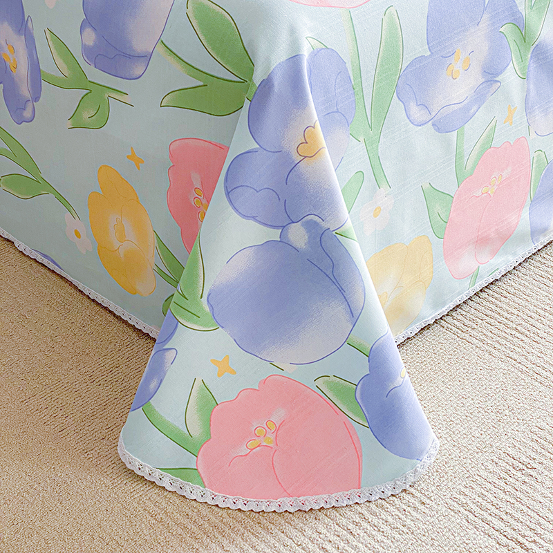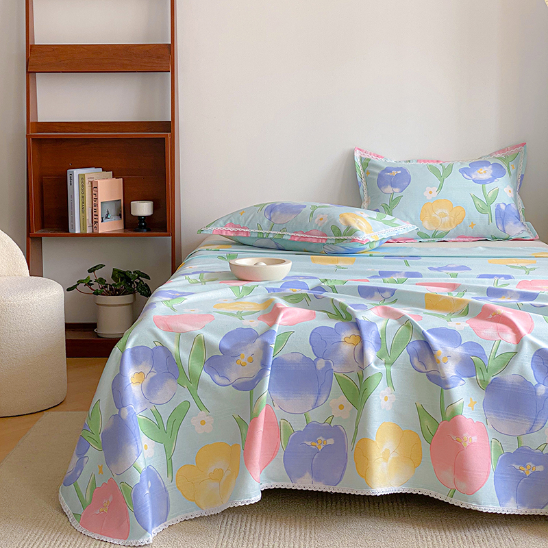 当前位置: 91家纺网 > 商品网购 > 床品套件 > 三件套 > 萌宝老粗布毛绒玩具 2025新款原棉老粗布印花床单系列细纱帆布软凉席三枚段条花边款 蓝色花海