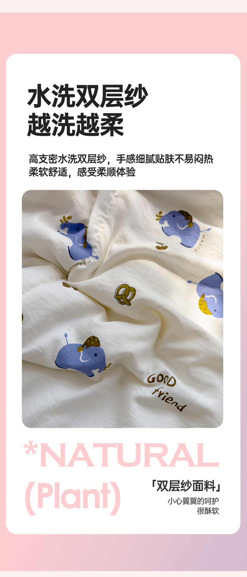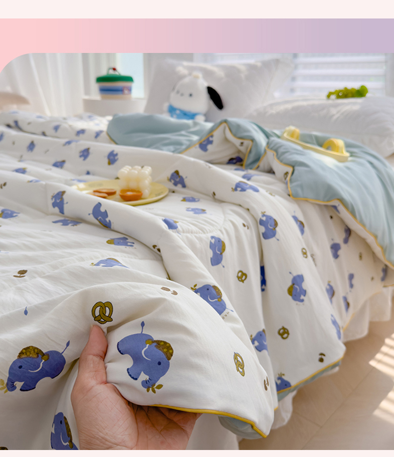 商品名称:默忆 2025新款水洗棉双层纱夏被夏凉被空调被被子被芯 蓝色小象