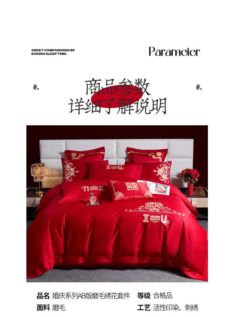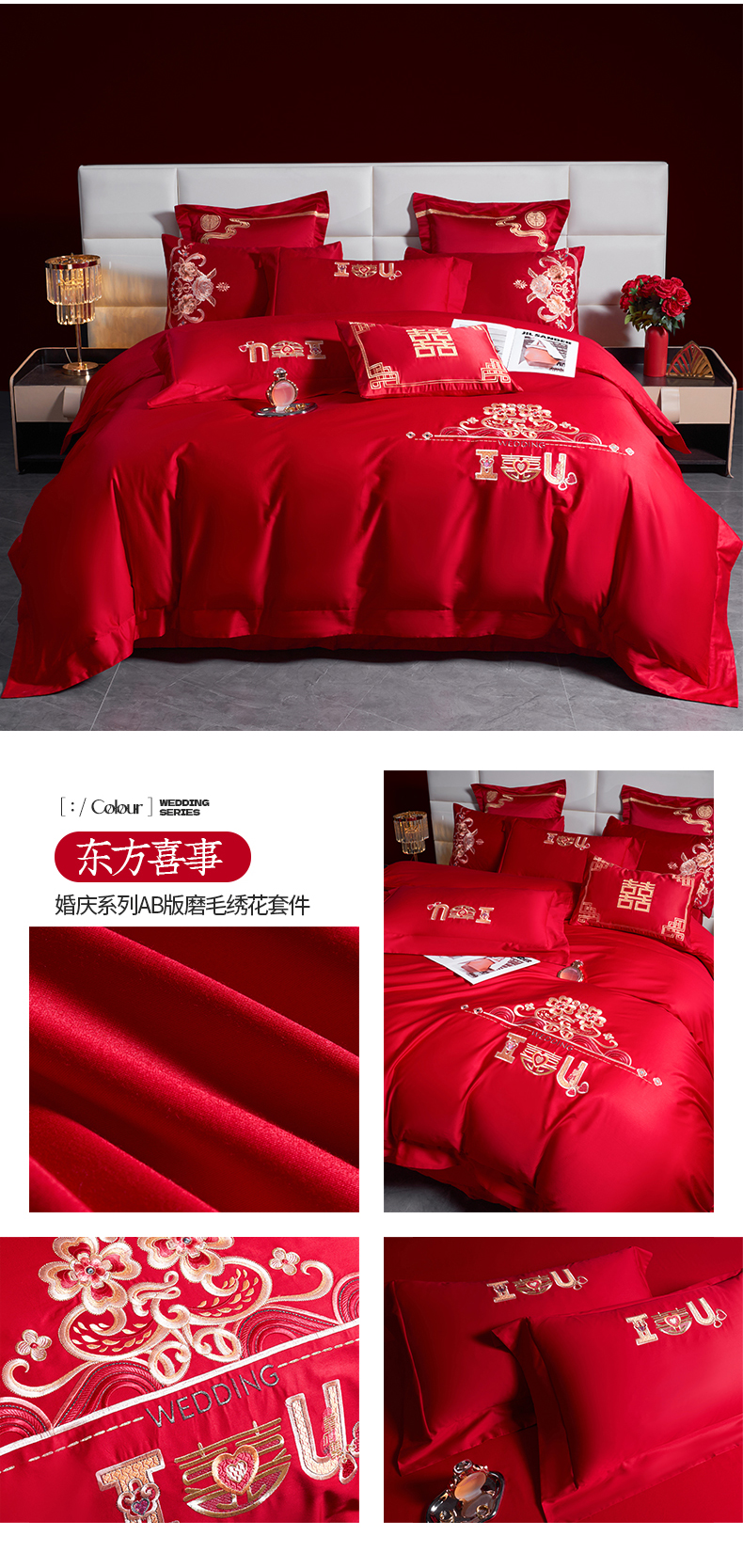 当前位置: 91家纺网 > 商品网购 > 床品套件 > 四件套 > 婚庆四件套 > 千禧2024婚庆系列AB版磨毛绣花套件 东方喜事
