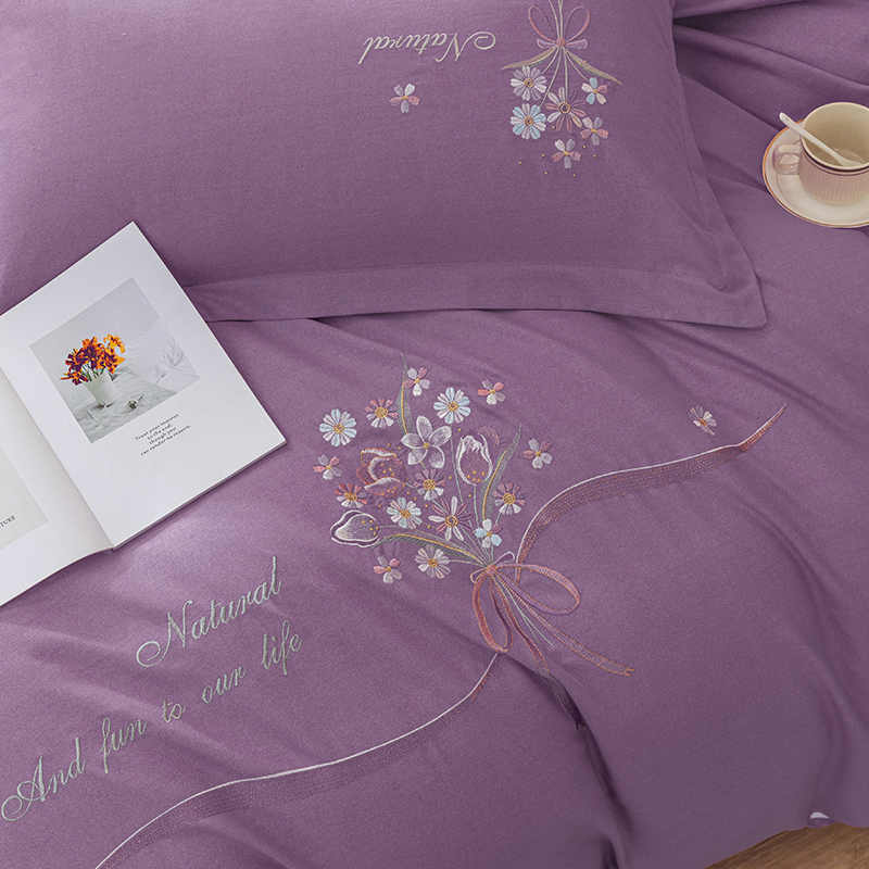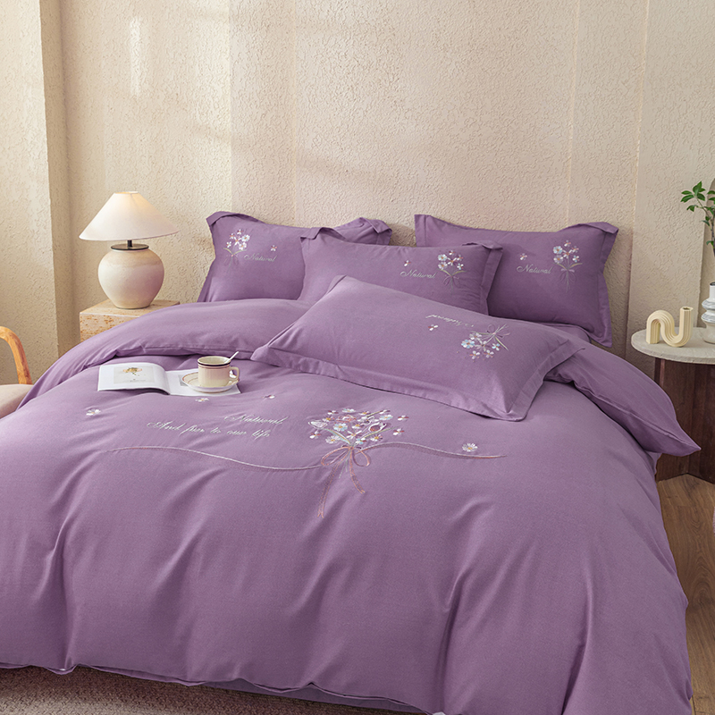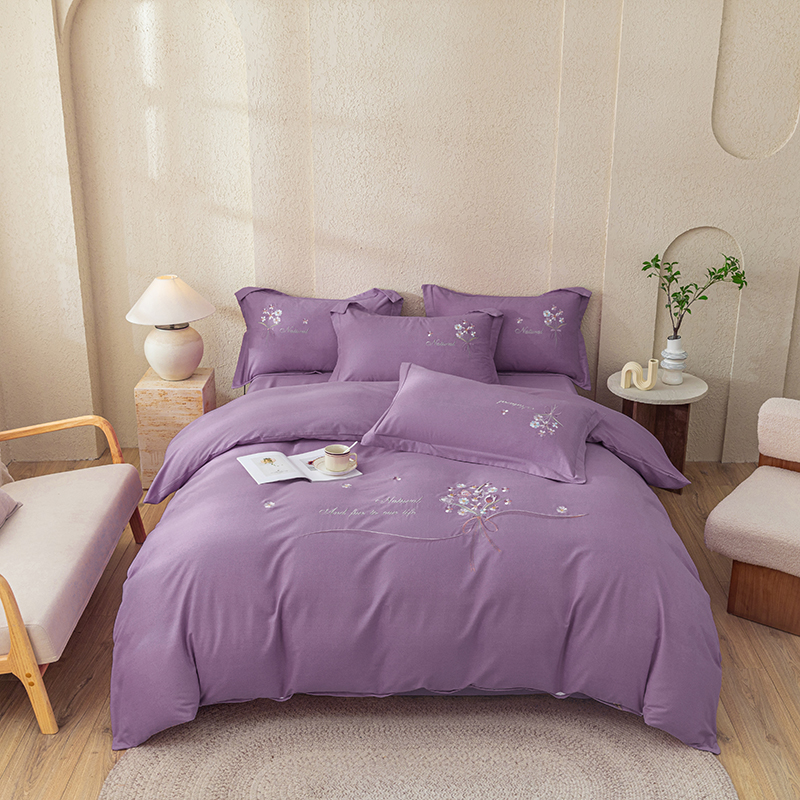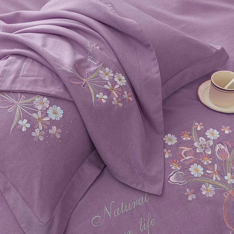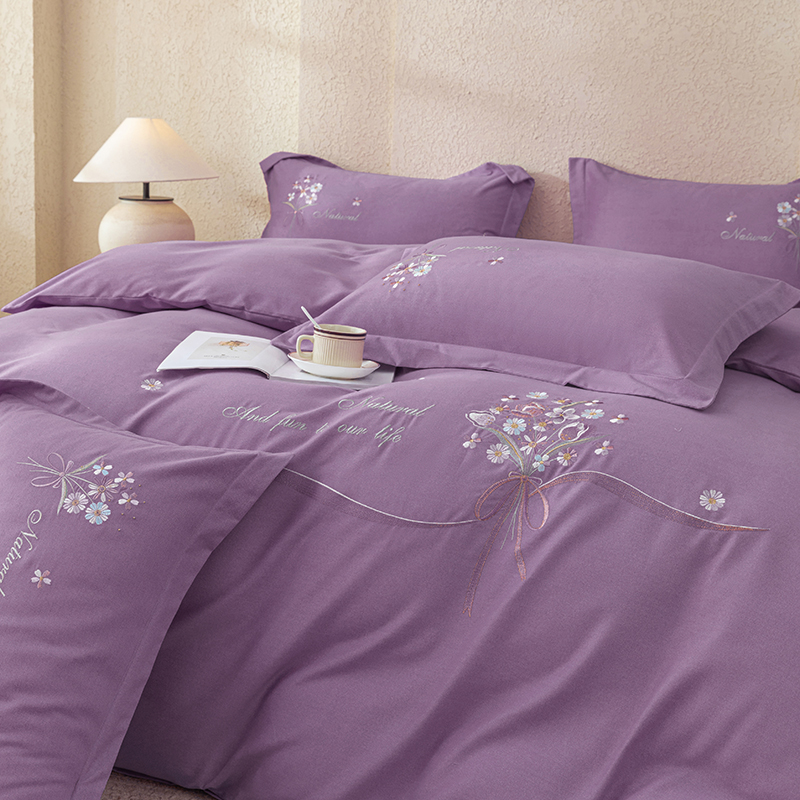 绒博士 2024新款全棉磨毛暗合四件套-倾城之恋 紫色