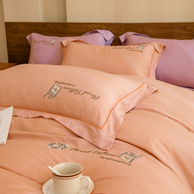 (总)绒博士 2025新款270克牛奶绒双拼角刺绣宽边款四件套--维也纳系列,维也纳-粉豆沙,维也纳-果绿,维也纳-浅咖,维也纳-浅蓝