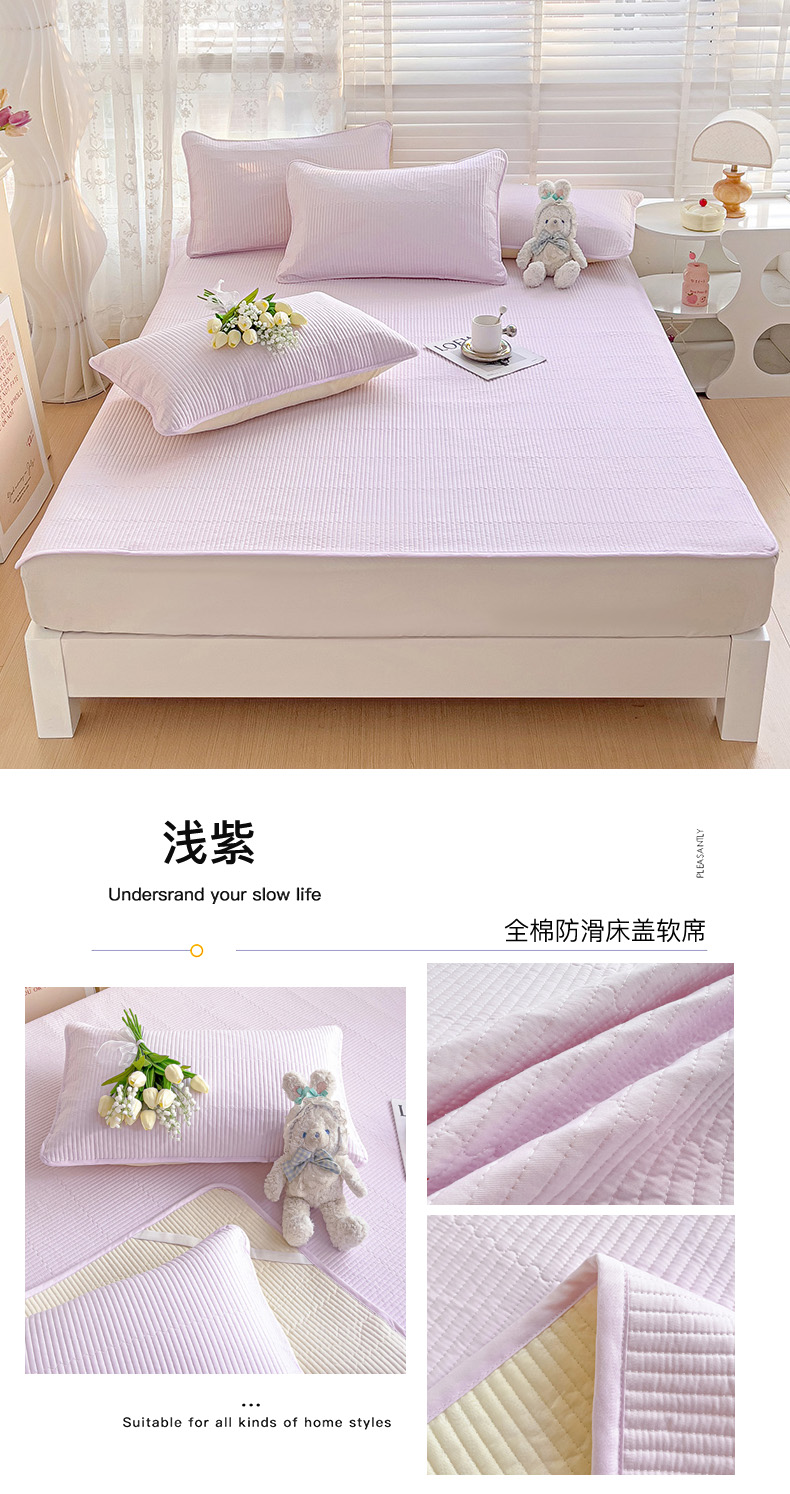 羽爱2024新款全棉直角纯色床盖床垫 浅紫