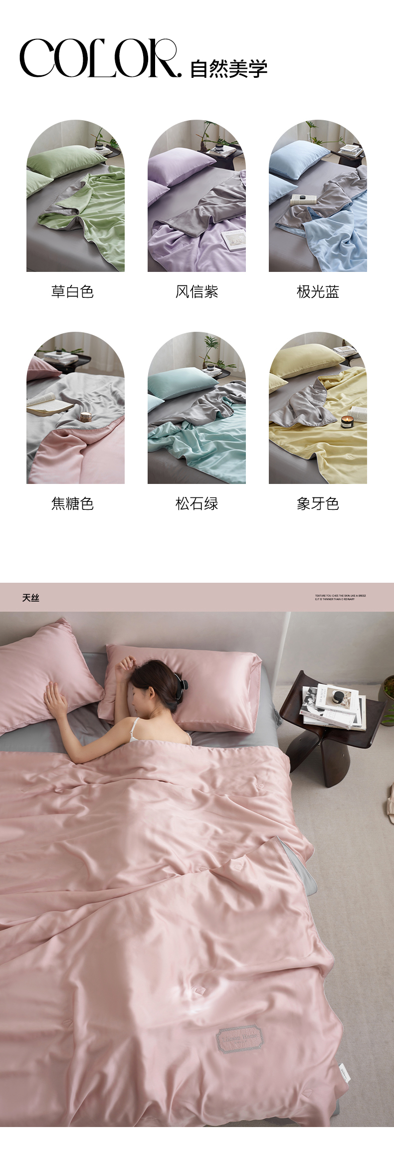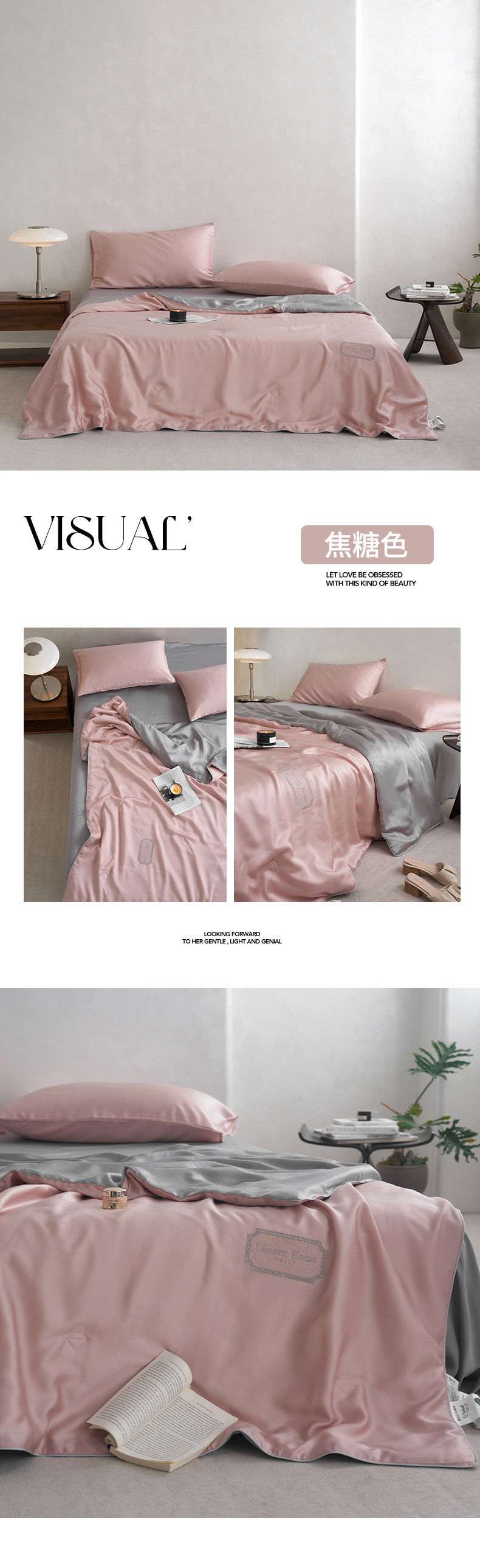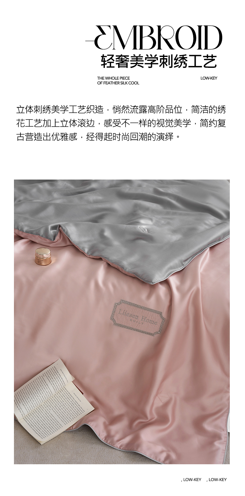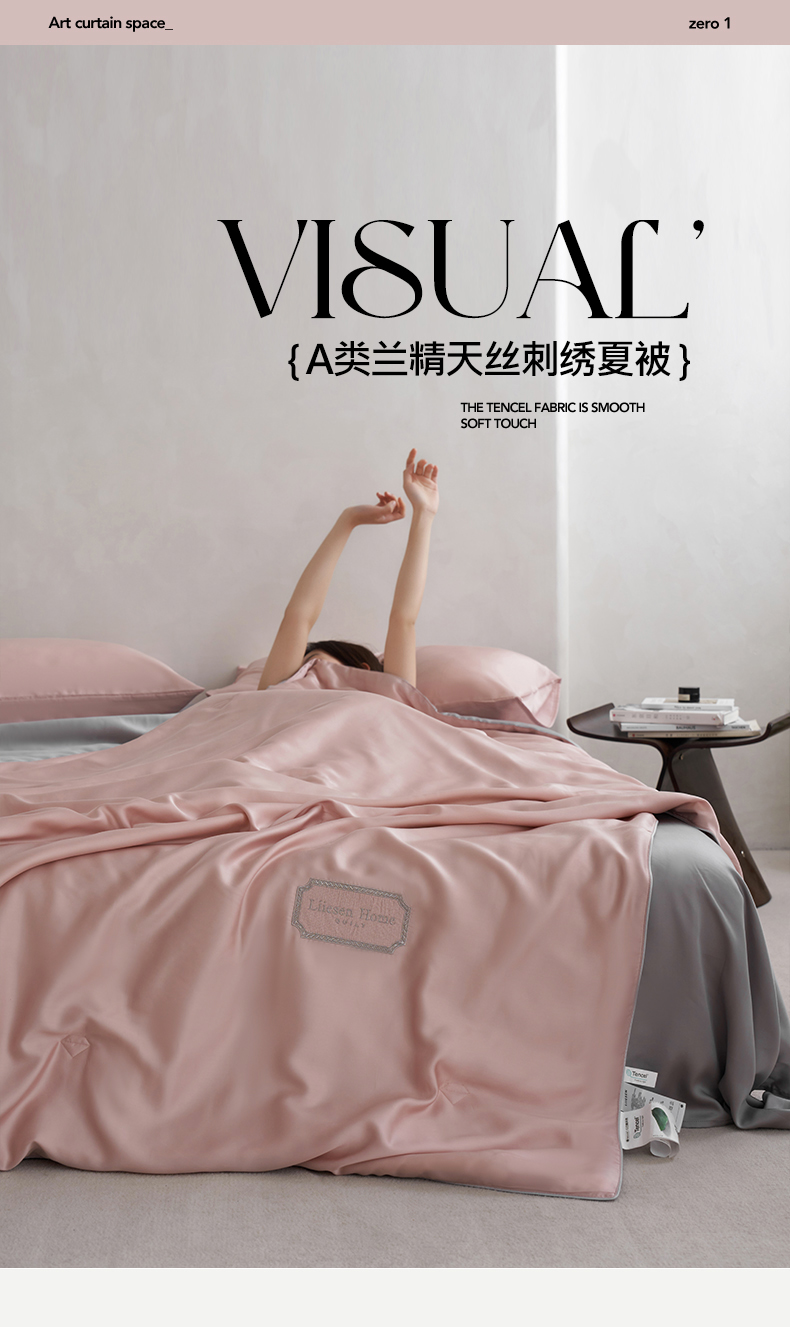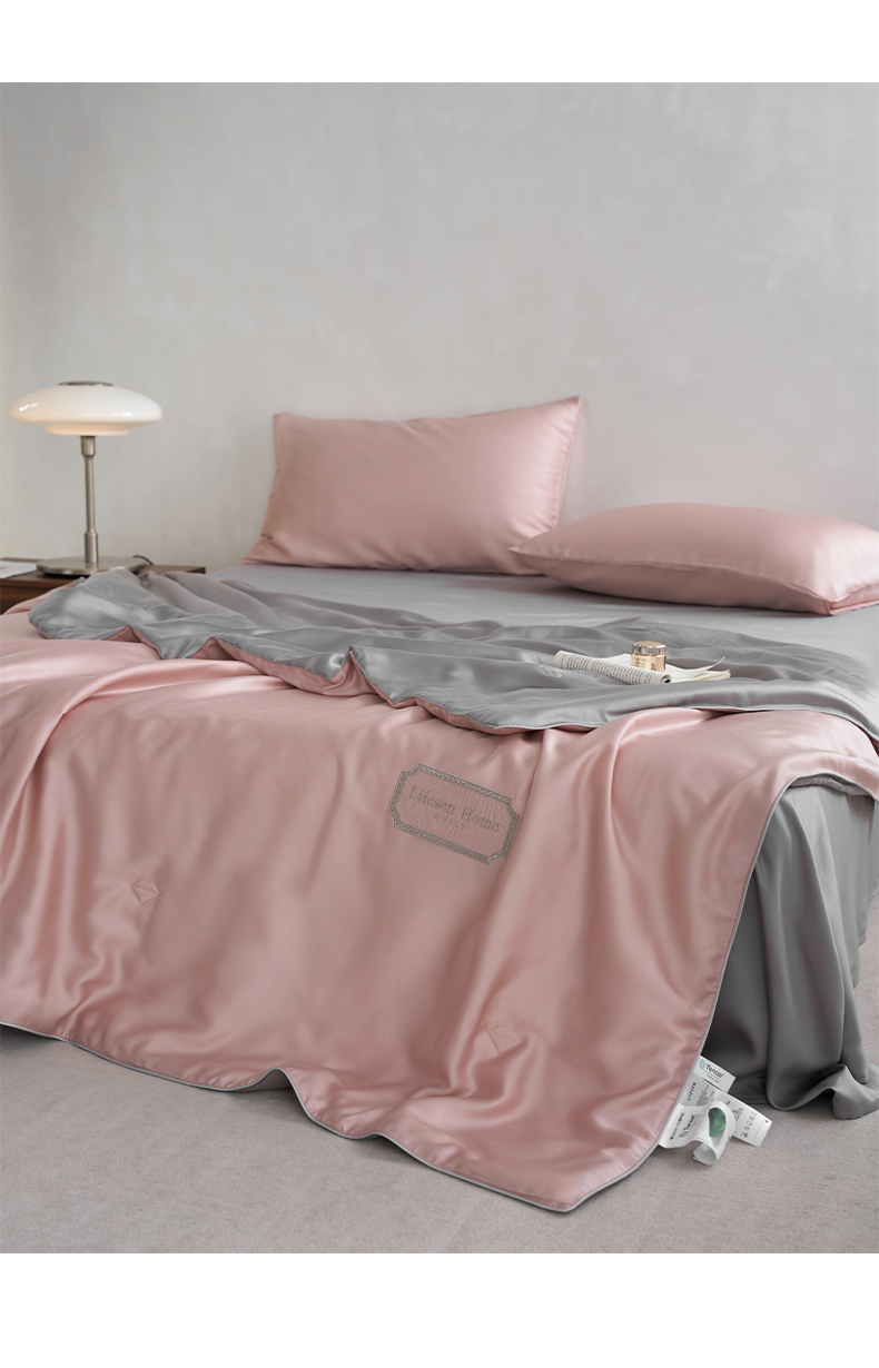 • 91家纺网 家纺一手货源 找家纺 丽笙 2024新款A类兰精天丝素色刺绣夏被被子被芯 莫兰迪焦糖色