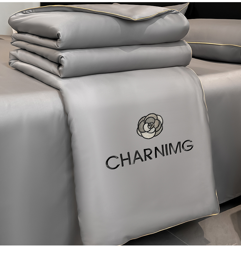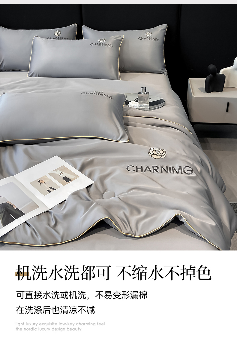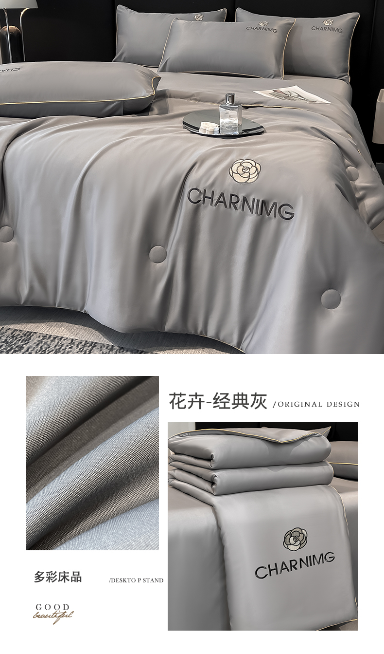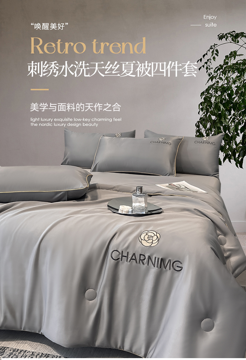 当前位置: 91家纺网 > 商品网购 > 床品套件 > 四件套 > 夏被四件套 > 江暮云家纺 2025新款刺绣水洗天丝夏被四件套-花卉 花卉-经典灰