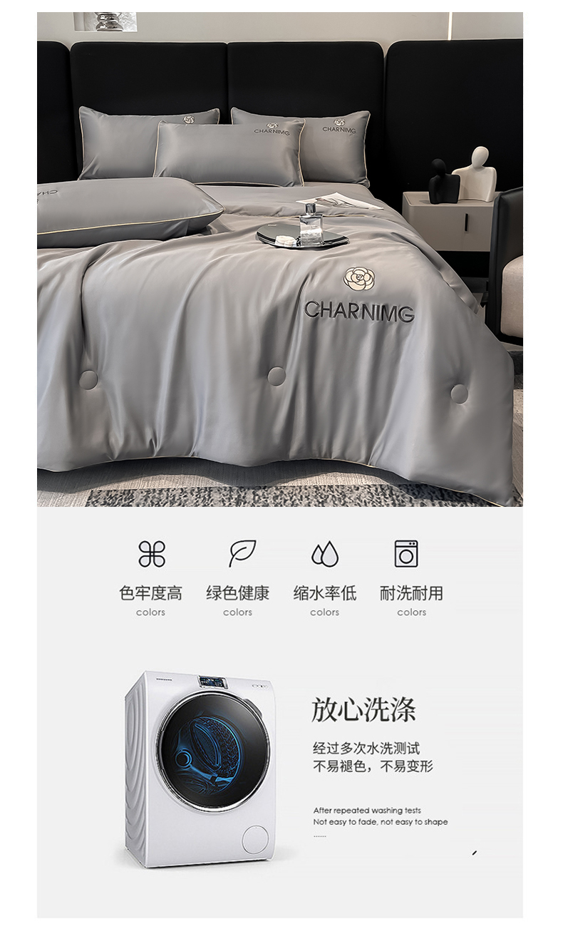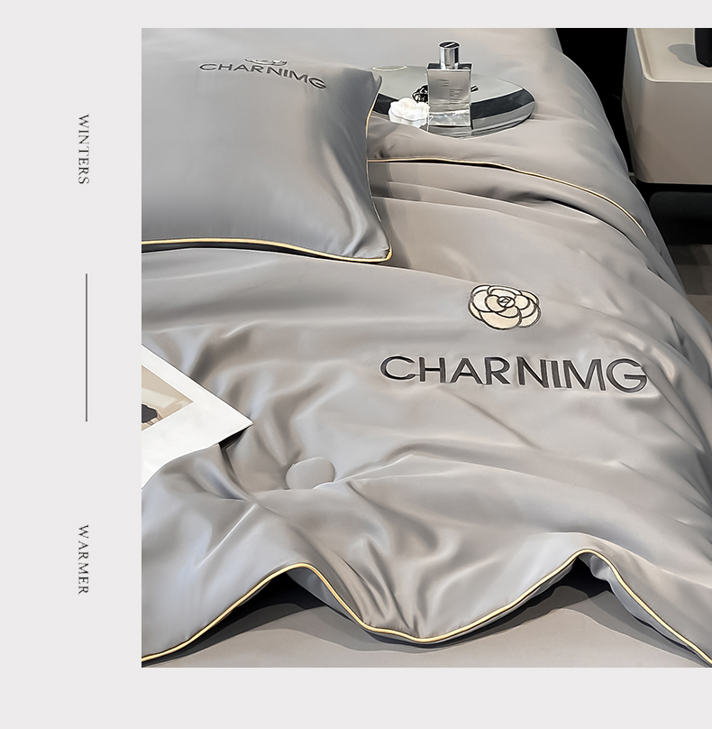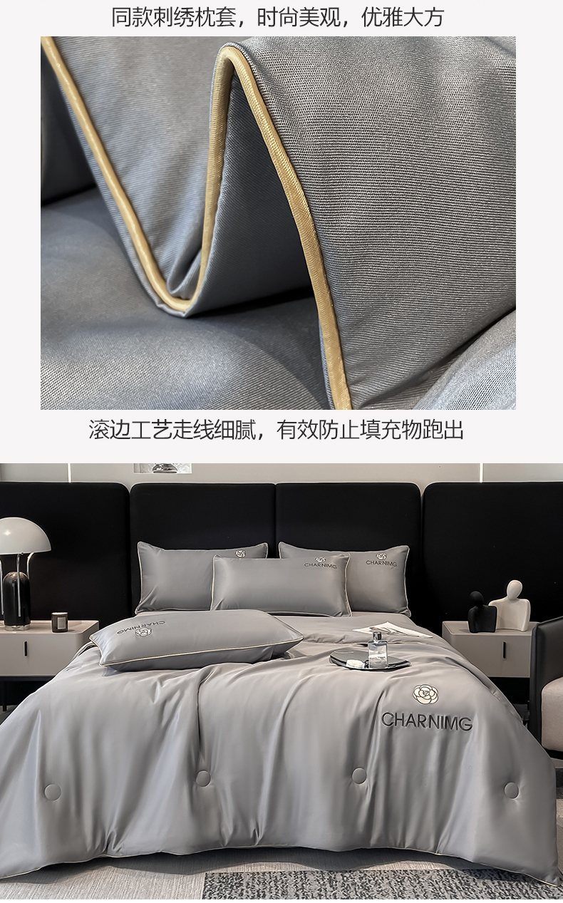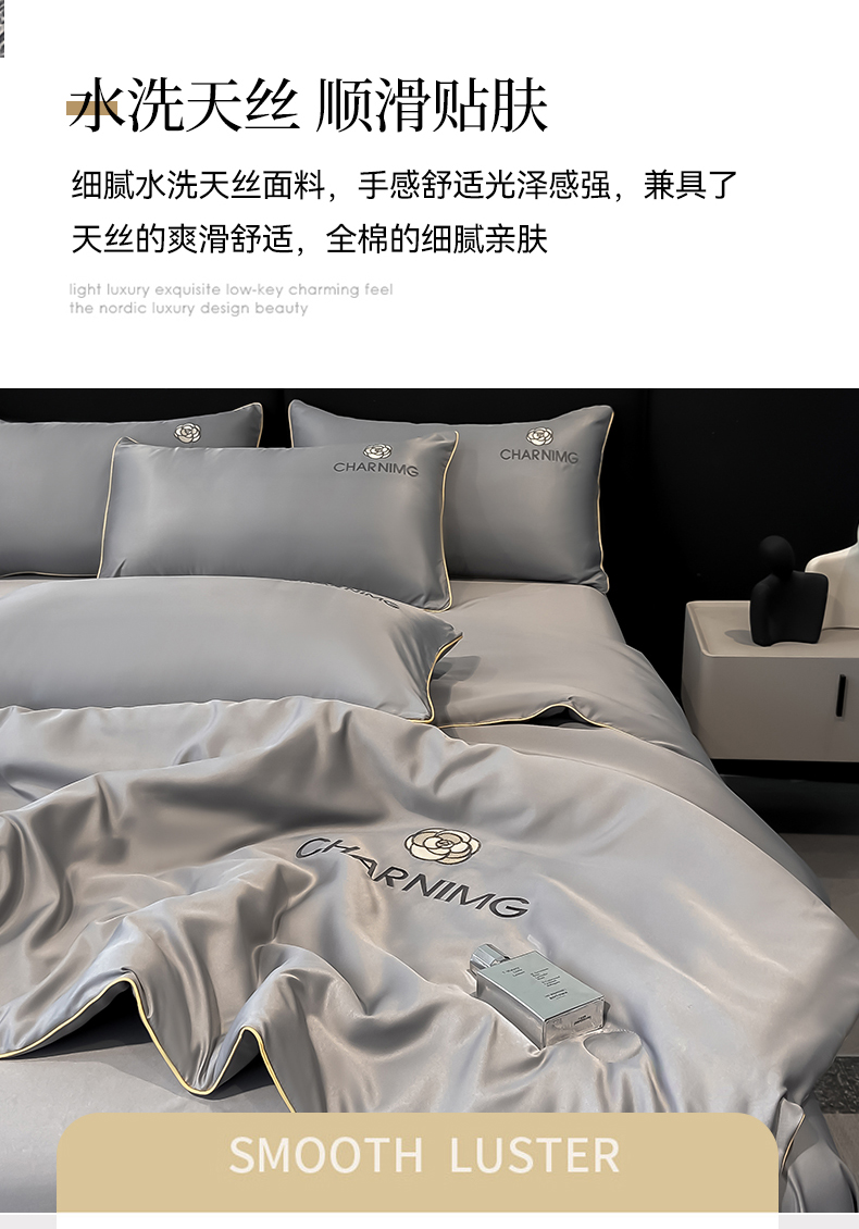当前位置: 91家纺网 > 商品网购 > 床品套件 > 四件套 > 夏被四件套 > 江暮云家纺 2025新款刺绣水洗天丝夏被四件套-花卉 花卉-经典灰