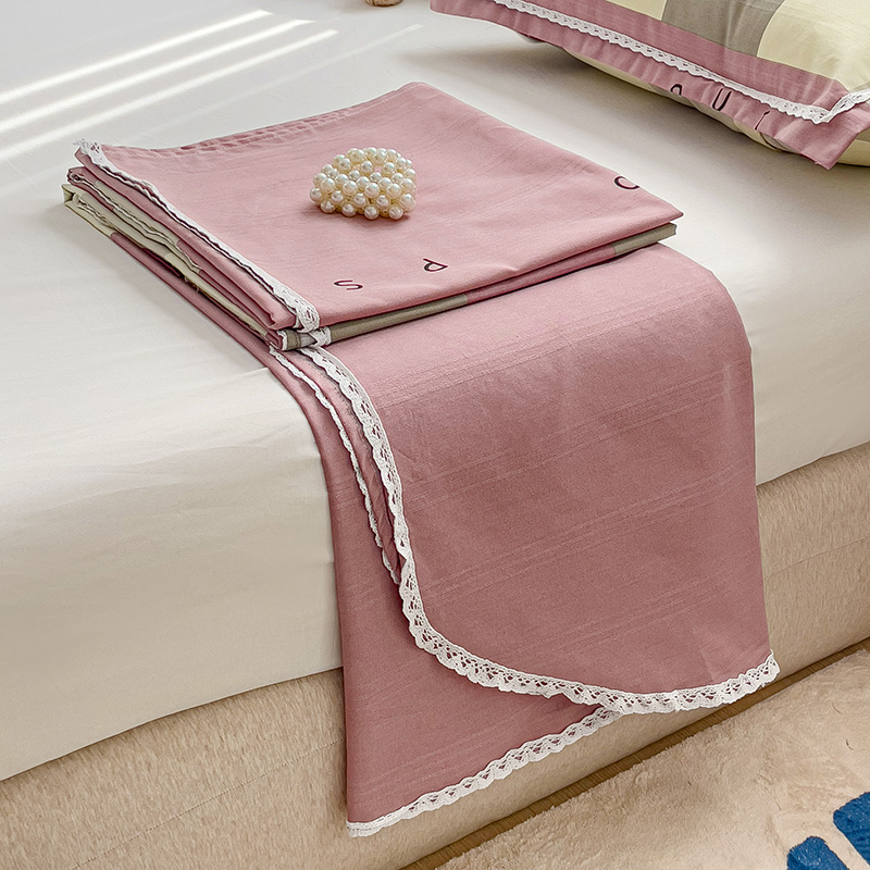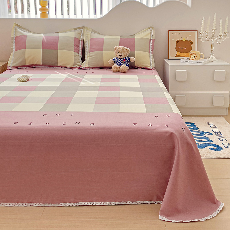 鸿羽樱 2024新款鱼骨棉老粗布凉席三件套 宜家-粉