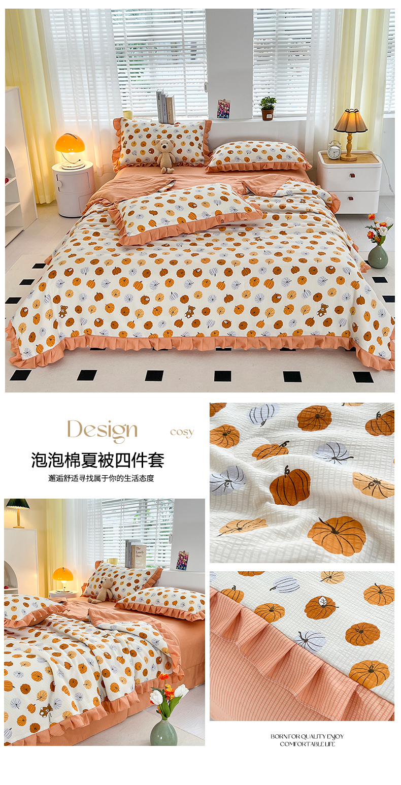 商品名称:富之航 2024新款时尚舒适泡泡棉夏被四件套南瓜