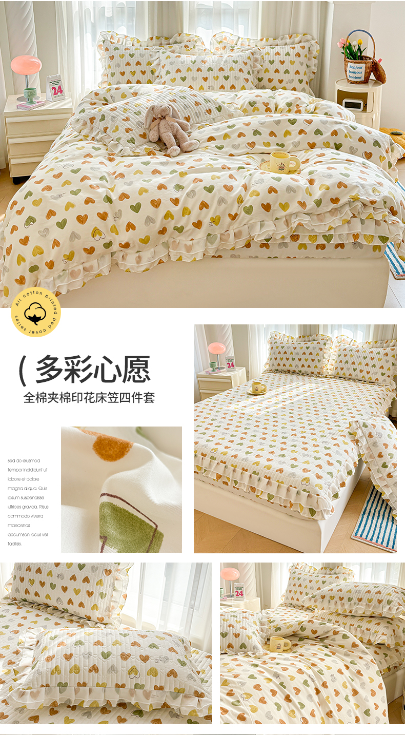 • 91家纺网 家纺一手货源 找家纺 宜凡 2024新款全棉床笠双层花边四件套 多彩心愿
