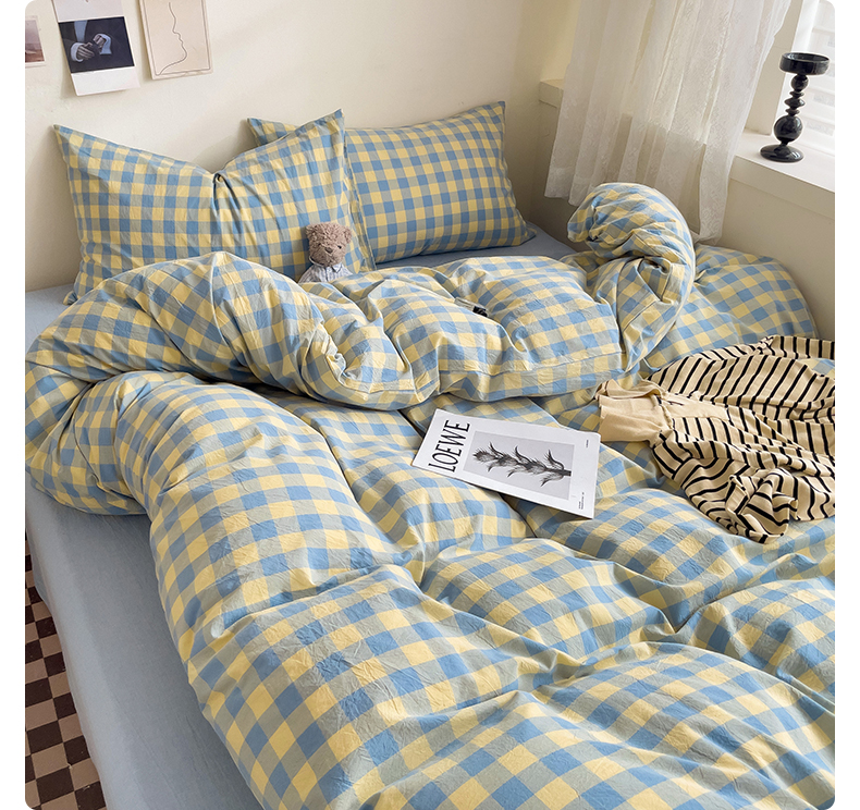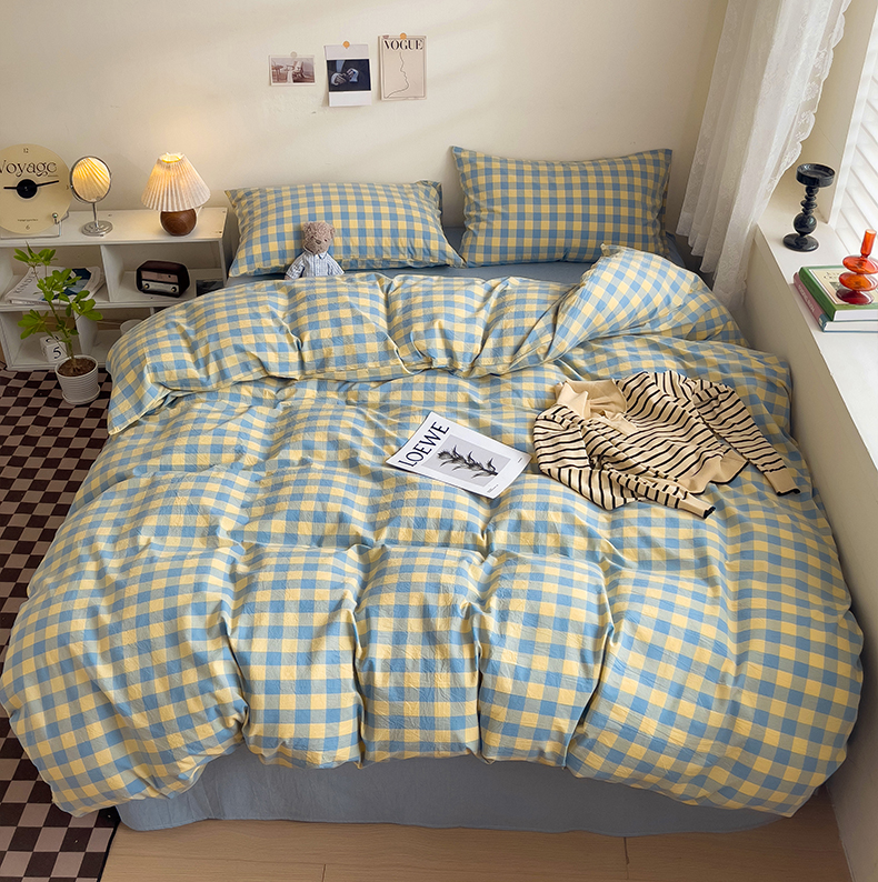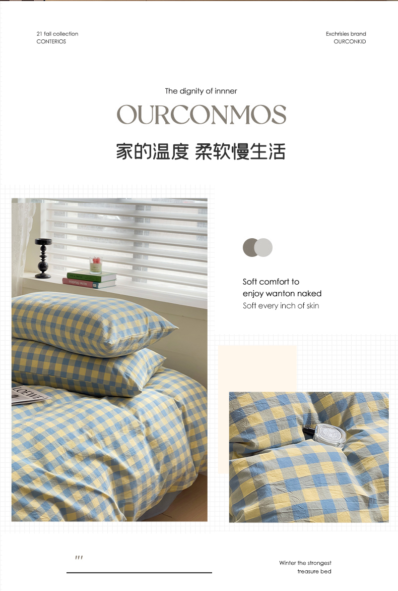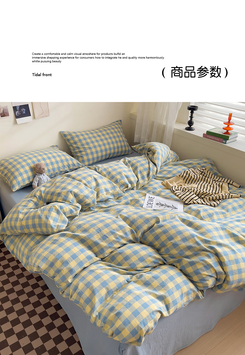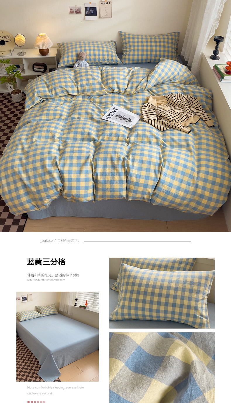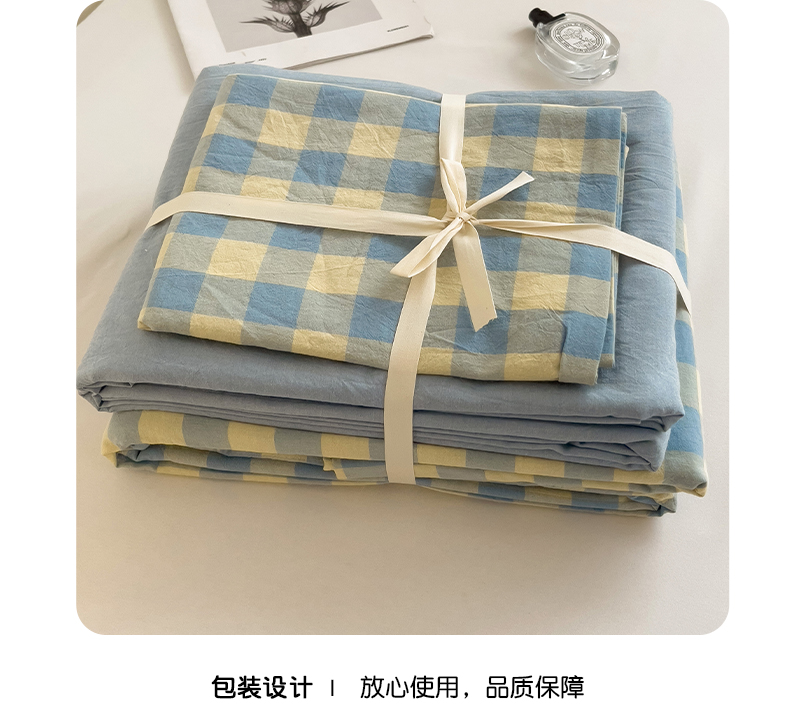 当前位置: 91家纺网 > 商品网购 > 床品套件 > 四件套 > 全棉普通四件套 > 大柏树 2025新款A类色织全棉水洗棉单品系列-四件套 蓝黄三分格