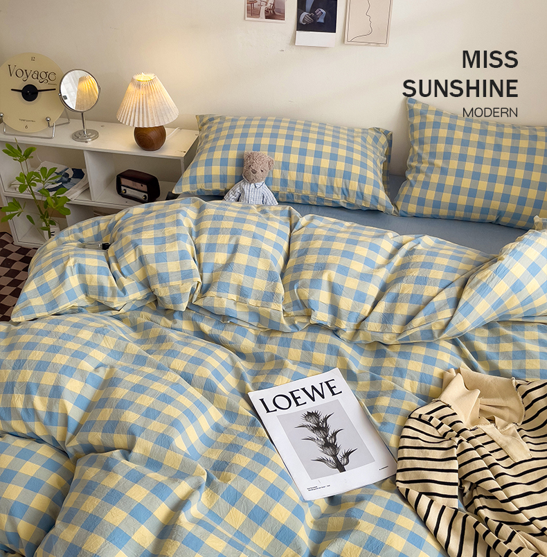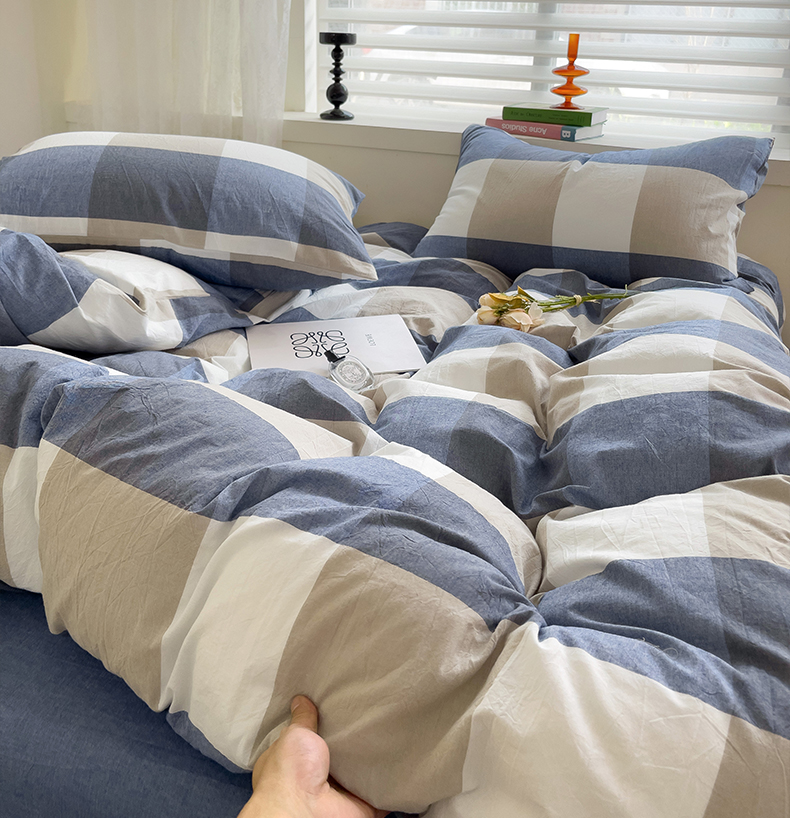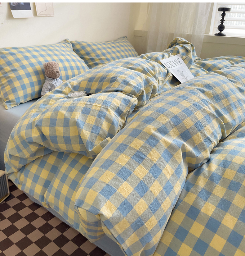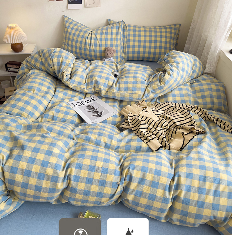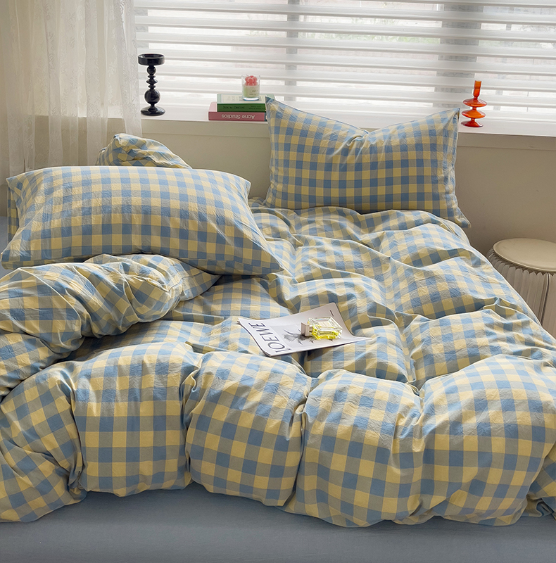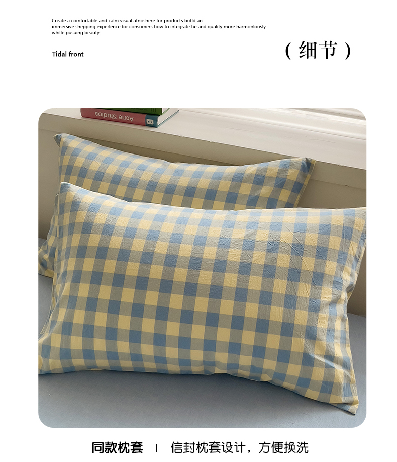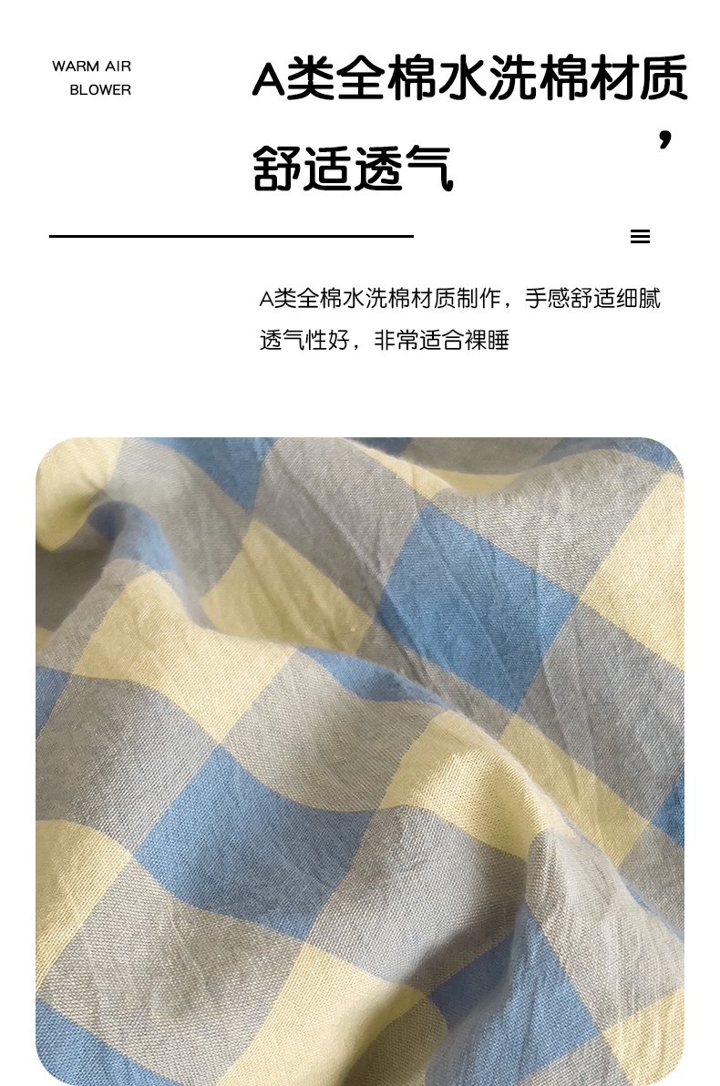 当前位置: 91家纺网 > 商品网购 > 床品套件 > 四件套 > 全棉普通四件套 > 大柏树 2025新款A类色织全棉水洗棉单品系列-四件套 蓝黄三分格