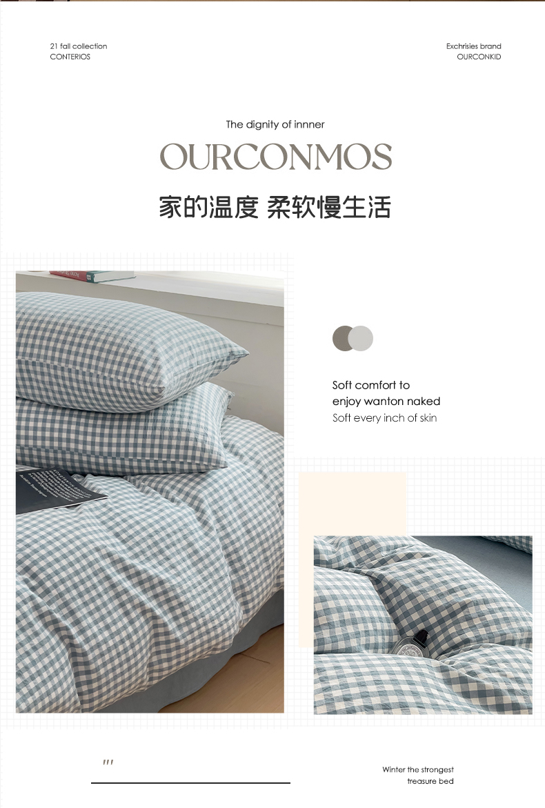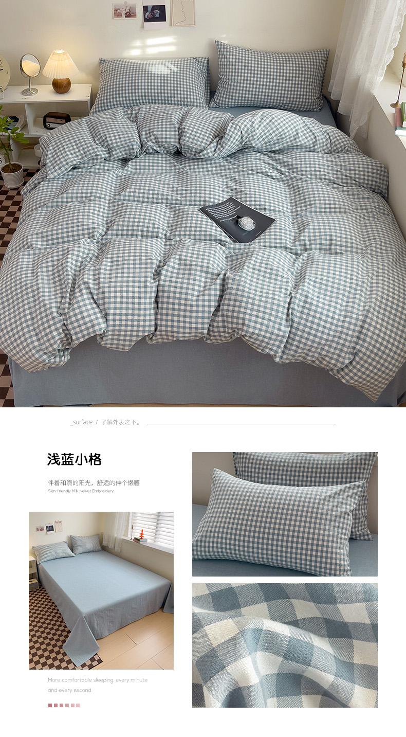 当前位置: 91家纺网 > 商品网购 > 床品套件 > 四件套 > 全棉普通四件套 > 大柏树 2025新款A类色织全棉水洗棉单品系列-四件套 浅蓝小格