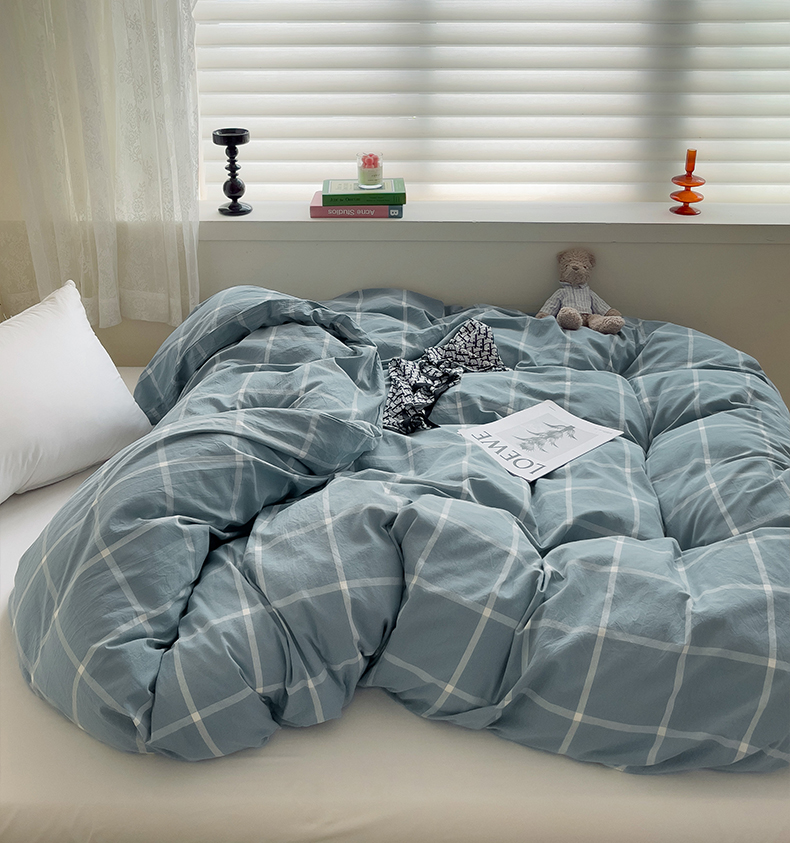 商品名称:大柏树 2025新款A类色织全棉水洗棉单品系列-单被套 蓝灰中格